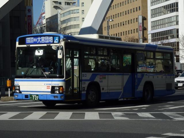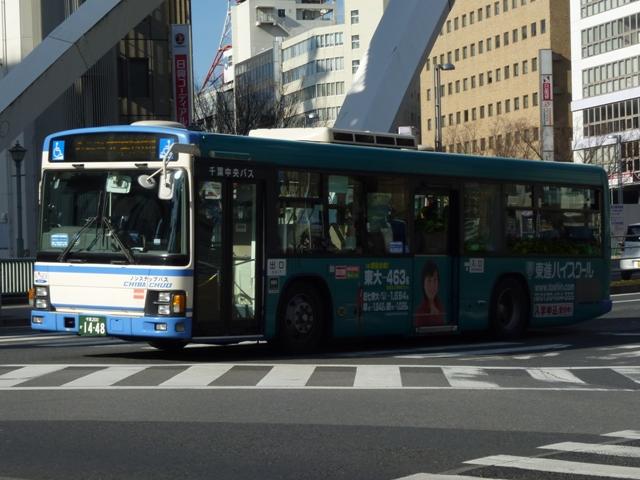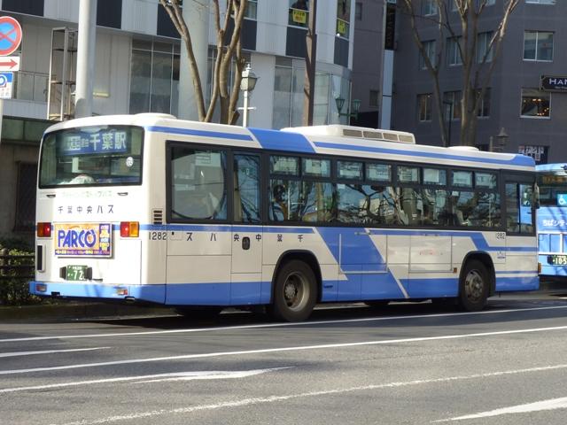 2010年に記録した画像の店晒し的シリーズの「千葉で見たバス2010」。今回は記録 出来た千葉中央バスの車両画像よせ集めです。型式・年式の参考資料も無いことから 今回は一気に並べていきます。 千葉中央バスは戦前に誉田・茂原を中心に路線を展開した「千葉郊外自動車」を祖とす る京成グループのバス事業者です。社名は戦後「東洋交通」に改称、京成グループ入り は1969年と比較的遅く、同じ京成グループのブルーバスという貸切事業者との合併を 機に現社名となっています。社番の頭数字はかつて本社・誉田・茂原にあった営業所を それぞれ表し、続く3桁は車種ごとの連番?となる固有数字となっているようです。詳細 について、ご教示いただければ幸いです。 <一般乗合車> 社番:1270. ということで、千葉中央バスの車両を、まずは一般乗合車から並べていきます。千葉中 央バスの一般乗合車の特徴として、大部分がいすゞ車ということと、富士重工ボディも愛 用していたということ、そして側面の行先表示位置が首都圏の事業者では少ない中扉の 後にあるということ。現在の塗装は1990年代初頭に変更されたもので、クリーム地に淡 い水色帯となかなかファンシーな色合いとなってます。 自動車NOx・PM法の対策地域ということで、車両代替はここ数年活発に行われており、 大型ツーステップ車は残りわずかといった感。画像は富士7EボディのLVツーステップ 車。記録出来たツーステップ車はこれだけでした。 社番:1275. 狭隘路線や閑散路線用に中型車も結構な台数在籍しています。方向幕仕様のエルガ ミオは初期導入の車両。経路がいくつかある路線の多い千葉中央バスでは、カラー方 向幕を有効に活用しています。 社番:1277. 社番:1276. 社番が前後して失礼。後部の方向幕が前部同様大型サイズというのも千葉中央バスの 特徴。富士新7EボディとなったLVワンステップ車。 社番:1281. 社番:1282. 初期のエルガもご覧の通り、後部に大型サイズの方向幕を装備しています。 首都圏のバス事業者で大増殖しているエルガ・ブルーリボンⅡですが、側面の行先表示 位置が中扉後位置にあるエルガは珍しい存在です。あくまでも首都圏の事業者と限定す ることが必要なんですが。 社番:1293. 富士重工のバスボディ製造最終期に導入されたワンステップ車。富士重工ボディへお名 残発注するところが長年愛用してきた事業者ならではということでしょうか。 社番:1295. 登録番号より推定すると、2003年後半から行先表示をLEDに変更した模様。エルガミオ のワンステップ車。 社番:1105. ノンステップ車は2004年より導入開始。まずはエルガミオのノンステップ車。 社番:1107. こちらはKL規制車のエルガノンステップ車。国交省標準仕様ノンステップ車です。 社番:2114. 社番の頭数字「2」はかつての誉田営業所配属車両だったエルガノンステップ車。 2009年に旧本社営業所・誉田営業所を統合し、現在の千葉営業所が開設されました。 統合後も、特に改番は行っていないようです。 社番:2116. 都内・および近県でよく見かける「東進ハイスクール」のラッピング車。千葉中央バスにも 見ることが出来たという報告。 社番:2121. サーモキングクーラー機器が変更されたPJ規制のノンステップ車。千葉中央バスでは、 あわせて屋根上換気扇機器の位置を中央から後部に変更し、帯色に合わせて塗られる ことになりました。 社番:2113. ワンステップ車とノンステップ車を並行導入。まずはエルガミオのワンステップ車。 社番:1134. こちらはノンステップ車。 社番:1135. エルガのワンステップ車は久々の導入でしょうか。 社番:1153. 最近の導入車両は登録番号を社番にあわせた希望番号で導入しています。エルガミオ のノンステップ車。 社番:1156. 同じく社番と登録番号をあわせたエルガのノンステップ車。 <高速車> 社番:7306. 千葉中央バスは千葉駅から安房鴨川へ房総半島を縦断する「カピーナ号」を日東交通・ 鴨川日東交通と共同運行しています。画像は「カピーナ号」で運用中のKaNaCカラーの エアロバス。千葉中央バスの貸切・高速車は三菱ふそう車を導入しており、かつては富 士ボディのエアロバスなど多数在籍していました。。 <パルコバス> 社番:5336. 千葉駅からやや離れたところにある千葉パルコ店への無料送迎バス「パルコバス」。 千葉中央バスが運行を担当しており、パルコ公式HPによれば赤・白・青の3色が運行 している模様。まずは青色のローザ。 社番:5137. 赤色はシビリアンではなく、いすゞのジャーニー。白色は見られず。 PR