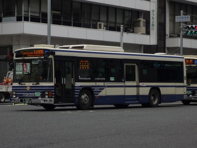 2010年12月に名古屋周辺で記録したバス画像よせ集め「名古屋で見たバス2010」。 今回は名古屋市交通局の日野車を並べていきます。 なお、型式・年式は『BJハンドブックシリーズR53 名古屋市交通局』(2004),BJエディ ターズ を参照しました。 <一般路線車> 局番:H-812.KC-HU2MMCA(99年車)。 まずは一般路線車から。3扉から前中扉仕様に変更された99年車も、いよいよ大部分 が代替される模様。ツーステップですがエアサス車ということで、北海道を中心に移籍 事例がありそうです。記録時点では3扉車も残っていましたが、残念ながら記録出来ず。 局番:NH-25.KL-HU2PPEE(01年車)。 名古屋市交通局ではKL規制の大型乗合車はフルフラットノンステップ車を採用。という ことで、もれなくATとなります。画像はブルーリボンシティ(BRC)ノンステップ。 局番:NH-92. 営業所ごとにメーカーを指定していたのも今は昔。名古屋市交通局でも他公営交通事 業者同様、一括入札で大量導入する方式となっています。いすゞエルガと見分け方が 困難のPJ規制車のKVも在籍しています。 局番:NH-239. 三菱ふそうのワンステップ車ベースのノンステップ車を除けば、ここ3年はジェイバス陣営 が健闘。1つ目KVかLVのどちらかを導入しており、気付けば名古屋市交通局もエルガ顔 だらけという状況です。 <基幹バス> 局番:KH-60.KC-HU2MMCA(99年車)。 基幹2系統で活躍するツーステップの日野車。正面にあった「ミッキー」愛称板が塗りつ ぶされています。三菱ふそう車同様、こちらも大部分が今年度で代替される模様。 局番:NKH-18. 局番:NKH-6. 1つ目KVは基幹バスにも在籍。フルフラット時代の名残でAT車というのがなんとも。10 数年後移籍車で活躍しそうもない感。 <中型車> 局番:MH-32.KC-RR1JJAA(99年車)。 ツーステップの中型車。こちらも大部分が代替対象となっていることから、前年同様各 地で移籍事例が見られそうです。 局番:MH-34.KK-RR1JJGA(00年車)。 ツーステップのKK規制車は2両のみ在籍。リヤ側しか記録出来ませんでした。 <メーグル> 局番:M-04. なごや観光ルートバス「メーグル」専用車。HRをベースに、天井にも窓を設置するだけに とどまらず、ヘッドライトはBRCのものにするなど派手に改造しています。 リヤ側は2009年に記録したものを参照いただければ幸い。 名古屋200か2736. 「メーグル」増車でBRCハイブリッドが登場。リヤ側しか記録できないのはいつものこと。 それにしてもHRをBRCっぽく改造した甲斐がありました。画像の状態が悪く、局番を読 み取れないことから登録番号で失礼します。 PR
