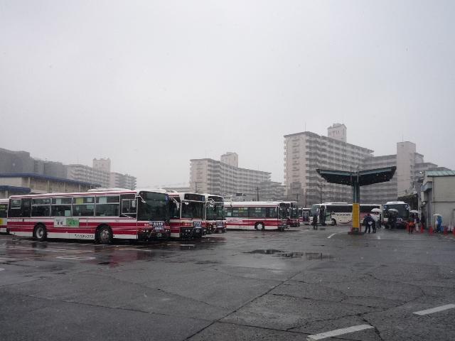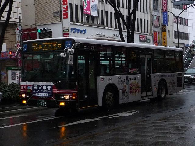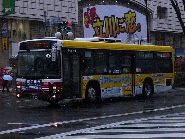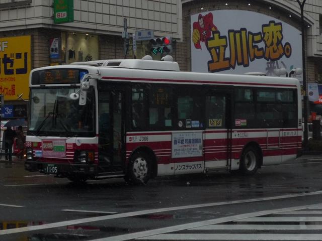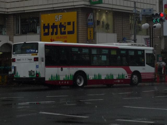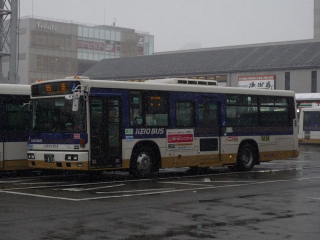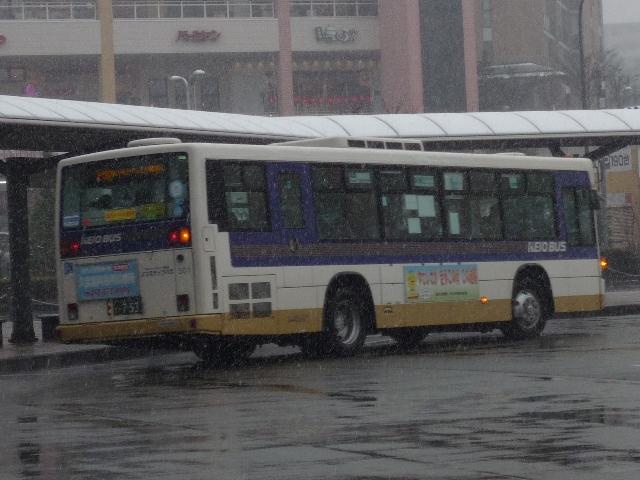 都内で積雪が見られた2月11日。 気になったので、第2回立川バスファン感謝イベントを見に行きました。 小生は寒かったのでチラッと見ただけで早々に退散しましたが、なかなかアツいファンの 方々で盛り上がっていました。 そういえば、わざわざ雪の日に出かけてバスを記録したのはこの時以来でしょうか。 今回は雪模様のバス画像を少々並べていきます。 社番:J366. 北町線などで活躍するエルガミオノンステップ車。 社番:J731. そしてエルガノンステップ車。立川で見たバス「立川バスいすゞ車編」は後日更新予定。 社番:J914. 続いて三菱ふそう車。先日更新したばかりですから、並べ損なったものを少々。まずは 結局採用されなかった立川バスノンステップ車カラー、リヤ側のみ記録できました。 社番:J921. こちらは中扉グライドスライド仕様のK尺MPノンステップ車。 立川バスの多くは時節柄「確定申告」をPRする涎掛けを装着していました。 社番:J934. こちらのMPノンステップ車は同仕様を並べていますが、ラッピング違いと言うことで。 社番:A2-832. 西武バスも並べておきます。フルフラットノンステップ車。 社番:A7-182. こちらは尿素車。西武バスも確定申告涎掛けを装着していました。 寒いので立川での記録もそこそこに、帰宅のため京王バス南エリアへ移動。 雪が降っていたとはいえ、積もりそうに無かった立川から一変。 社番:M40501. これは早く帰らなきゃと思わせる風景、さすが山を越えただけはあると実感します。 社番:M40512. 天気が悪いことを目的に写真を撮っているはずが、型式写真っぽい構図になってしまう 小生。 社番:M49828. こういう悪天候のときに限って、久々にRMワンステップ車を見ました。京王電鉄バスグ ループに在籍する98年車も残りわずかです。 PR