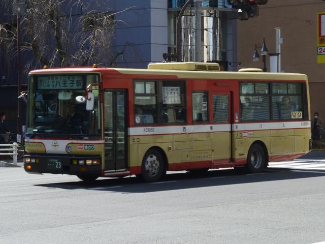 忘れた頃に更新する近所で見たバスシリーズ。昨年7月に「西東京バスで社番5桁変更 間近」ということを書きました。うっかりしているうちに社番5桁化が完了してしまい、フォロ ー記事も無いまま放置状態となっていました。今回は社番5桁となった西東京バスの車 両をいくつか並べていきます。 なお、型式・年式は『BJハンドブックシリーズ R62 京王電鉄バス・西東京バス』(2007) BJエディターズを参照しています。 社番:A10327.KL-LV280L1(03年車)。 まずはいすゞ車、PASMOラッピング車のエルガ。旧社番はA1001。 社番:A20414.KL-KV280L1(04年車)。 続いて日野車ですが、かなり初期のOEM車両となるKL規制車のKV。当時は前中扉間 ノンステップ車のtype-Aのみ日野へOEM車として供給されていました。 旧社番はA1207で、日野車ながら1000代の社番という微妙な存在でした。頭数字2から 始まる5桁社番で、もういすゞと間違えることは無さそうです。 社番:A50106.KL-UA452KAN(01年車)。 そしてUD、まずは富士ボディの大型ノンステップ車。旧社番はA5730。 社番:A50316.KL-UA452KAN(03年車)。 西工ボディの大型ノンステップ車。旧社番はA5735。 社番:A59960.KK-RM252GAN(99年車)。 西東京バスで初導入となった中型ノンステップ車。いよいよこのあたりの車両も代替される 年式となりました。さすがに氷川送りとなると思いますが。旧社番はA6902。 社番:D10408.KL-LV280L1(04年車)。 続いて恩方営業所。多摩バス在籍車両は5桁社番でしたが、西東京バス籍は4桁社番 と、しばらく2種類の社番が存在していました。旧社番はD1201だったエルガ。 社番:D10619.PJ-LV234L1(06年車)。 多摩バスカラーのエルガノンステップ車。比較的涎掛け装着率の高い西東京バスですが、 記録した日はほとんどの車両が外していました。 社番:D10713.PJ-LV234L1(07年車)。 せっかくなのでもう1台。多摩バスカラーの涎掛け無しの姿を見たのはかなり久々かも。 社番:D20511.PK-HR7JPAE(05年車)。 多摩バスカラーのHR10.5mサイズ。 社番:D50007.KL-JP252NAN(00年車)。 多摩バスカラーのJPノンステップ車。親会社と異なり、JPノンステップ車は00年のみの 導入で終了。 せっかくですので、五日市営業所の車両も並べていきます。 社番:C21020. 五日市営業所配属では久々の大型新車となった1つ目KVノンステップ車。これまでHR の配属が続いていましたが、販売終了ということで大型ノンステ車に変わったということ なんでしょうか。 PR
