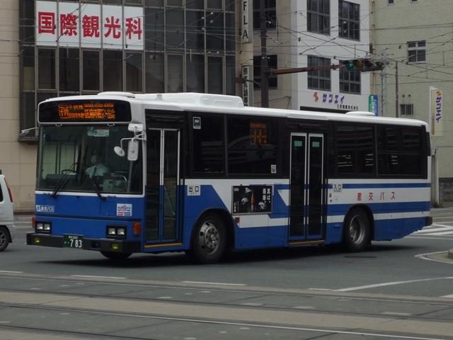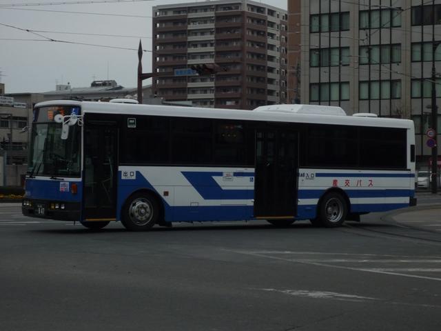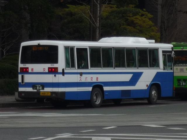 4月に北九州へ出かけた際に、あわせて2009年以来の熊本にも足を延ばしました。 「熊本で見たバス」ネタとして長々更新していくつもりでしたが、残念ながら天候がパッと せず、ブレ画像多数で思うようにならず。 ということで、今回は九州産交バスに近年登場した車両と小生的に気になった車両のバ ス画像よせ集めです。 <高速車> 熊本200か599. 気付けばそこそこの台数が在籍する新型セレガ。まずは初期導入の車両。 熊本200か731. 増備車は側面広告対策で「Kyu San Ko」ロゴを後部に変更。 熊本200か789. こちらは側面固定ガラス・スイング扉仕様。おそらく3列シート車と推測。 熊本200か805. エアロエースの高速車。産交では久々となる三菱ふそうの新車です。 <路線車> 熊本200か783. 一般乗合車は相変わらず積極的な移籍車導入を続けています。まずは横浜市交通局 からのHUリフト移籍車。特徴的なリヤ部の記録はまたの機会に持ち越しです。 熊本200か833. 局地的に増殖中の高槻市交通局ワンステップ移籍車。車椅子マークが無いことから、 スロープ等の後付改造は行われていない様子。 熊本200か841. 日野の中型車。3連テールに全引違側面窓といえば、こちらも各地で移籍事例多数の 名古屋市交通局からの移籍車。産交にも来ていたんですね。 熊本200か847. JPも地味に増えています。水間の特定車や横浜市営に続き、西東京バスからの移籍車。 はたして次はどこから来るのか・・・。 ******** ここから気になった車両編。 熊本22か2418. 相次ぐ移籍車導入でP規制車と見て分かる車両も少なくなりました。というわけで見て分 かるP規制車のキュービック。 熊本22か3265. 日本では超少数派のネオプランノンステップ車。現在はオーシャンアローシャトルバス専 用車として活躍しています。固定運用で記録が容易になりました。 熊本22か2696. まだ活躍していたのか!感もする青十字こと「ひのくに」カラーのセレガ。画像の車両は 大分への「やまびこ号」の運用となっていました。 PR