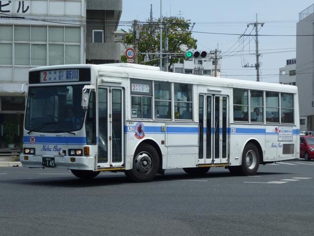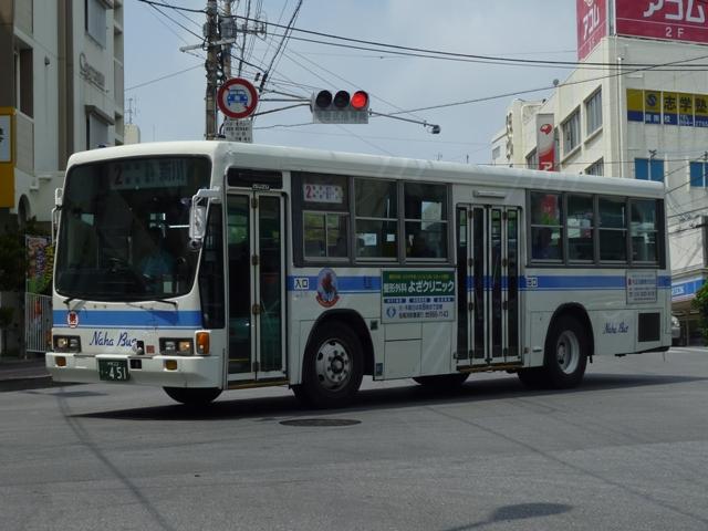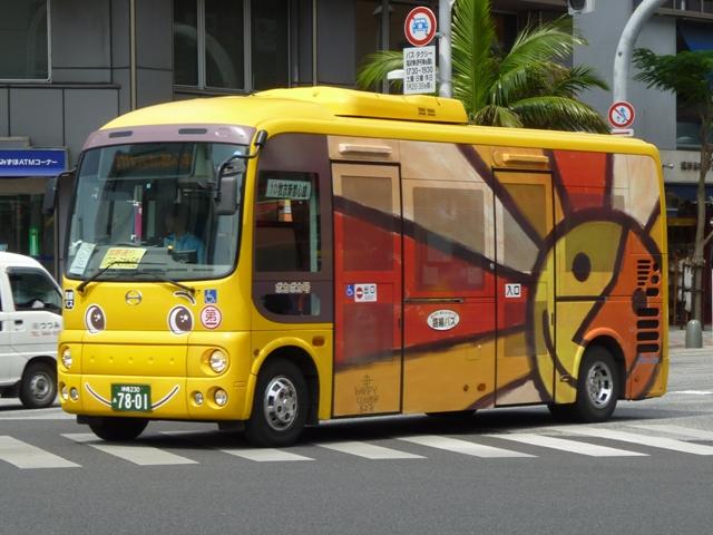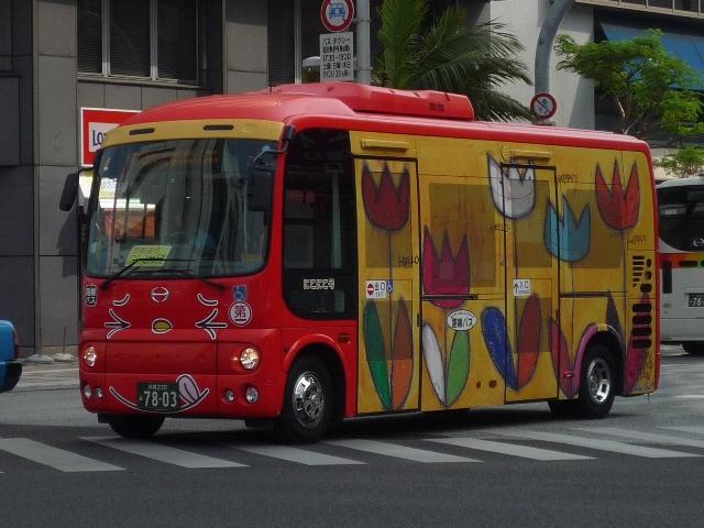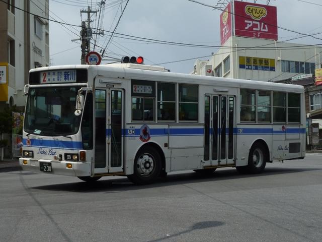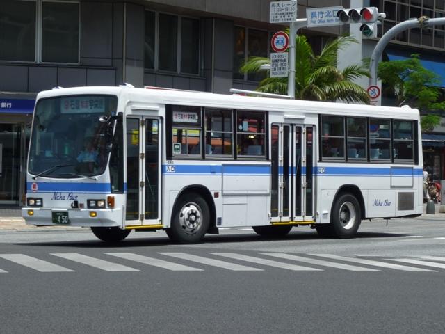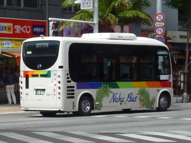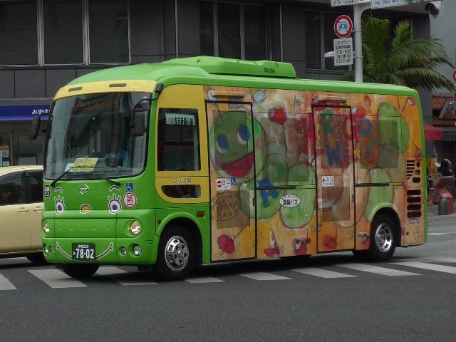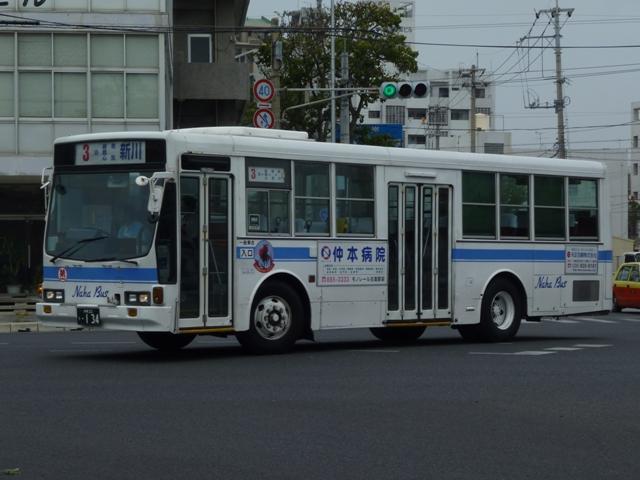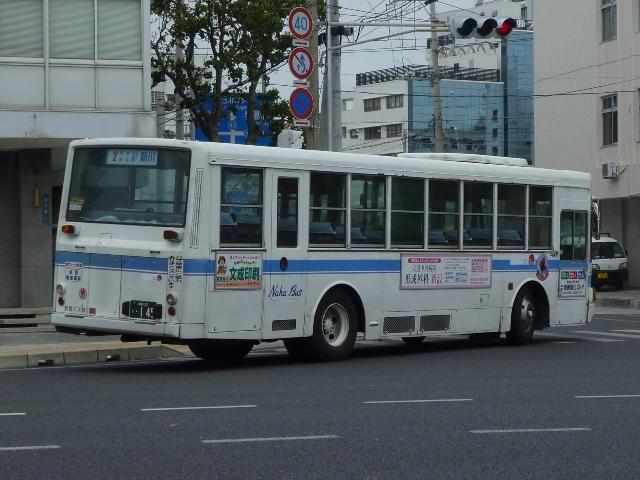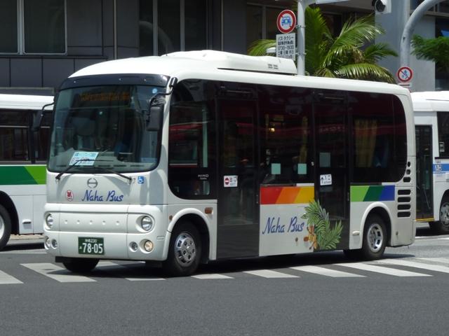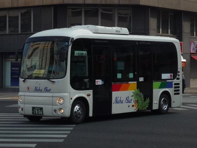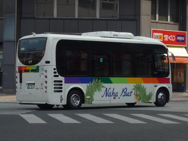 4月に沖縄本島で記録したバス画像のよせ集めシリーズ、「沖縄で見たバス2011」。 今回は記録出来た那覇バス市内線の自社発注車、つまりキュービックとポンチョだけを 並べていきます。 なお、型式・年式は「那覇バス車両一覧」『バスラマインターナショナル86号』(2004), ぽると出版を参照しました。 沖縄22き134.P-LV314L改(89年車)。 那覇バス市内線の自社発注車といえば、中扉4枚折戸仕様のキュービック。積極的に 行われている移籍車導入により、このあたりの自社発注車も代替が進んでいる模様。 沖縄22き145.P-LV314L改(89年車)。 リヤ側も記録出来た車両も並べておきます。 沖縄22き238.P-LV314L改(90年車)。 90年導入車も仕様的に変わらず。シートはだいぶくたびれていますが、東武バス移籍 車のパイプ椅子に比べれば我慢可能。 沖縄22き450.U-LV324L(93年車)。 那覇バスのキュービックといえばこちらのほうが有名でしょうか。乗合車では珍しい大型 前面ガラスの観光顔仕様です。このあたりの車両もボディ更新が行われているようです。 沖縄22き451.U-LV324L(93年車)。 勿論、那覇交通ロゴやストライプの上に白色のラッピング素材を貼っただけの車体未更新 車も在籍。那覇バスの運行開始まで慌しく進められたという変更作業を伝える車両も少な くなりました。 沖縄230あ7801. 旧7番新都心循環線運行開始にあわせて導入した現行ポンチョ。ナンバーも希望番号 (ナハ?)を取得しています。初期導入の3台は目立つ特別カラーとなっています。 既に何度か並べていますが、お付き合いを。まずは黄色の「ポカポカ号」、側面はお日 様のラッピング。 沖縄230あ7802. 黄緑色の「レッツ号」、奇面組にそんな名前のキャラクターがいたなと思い出すのはR30。 側面はいも虫のラッピング。 沖縄230あ7803. 赤色の「にこにこ号」、側面はお花のラッピング。 沖縄230あ7805. 増備車は末尾4を飛ばして登録。カラーはレインボー帯の落ち着いたものになりました。 沖縄230あ7806. 10番牧志新都心線はこれらポンチョ5台で運行しています。wikipediaによれば、13番 石嶺おもろまち線で運行している京急移籍車のリエッセが10番の予備車も兼ねている とのこと。 PR