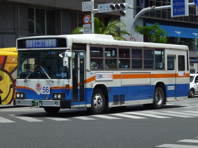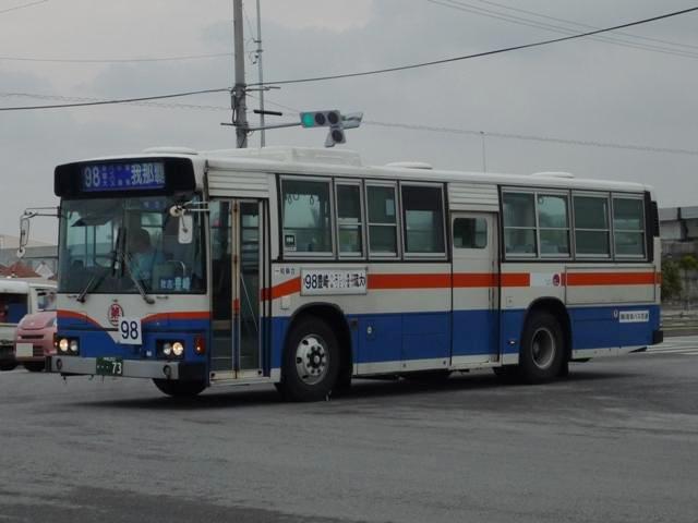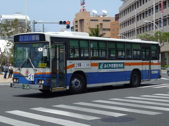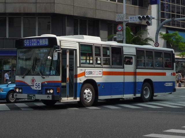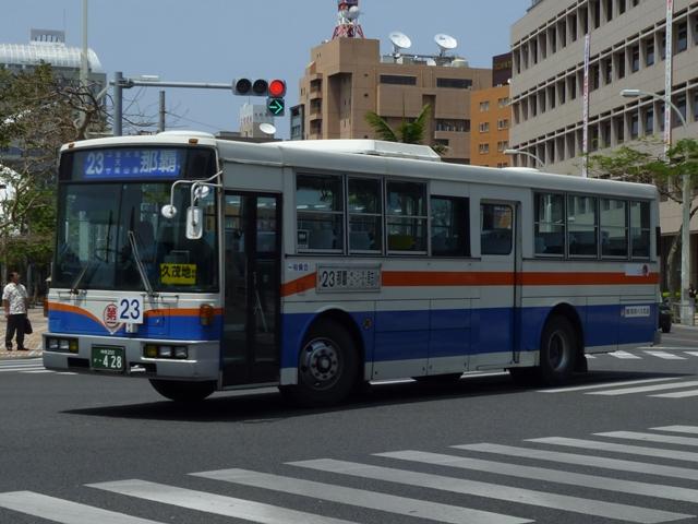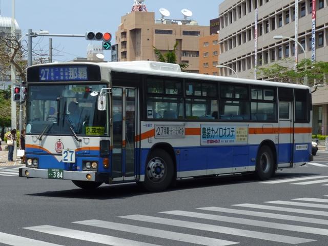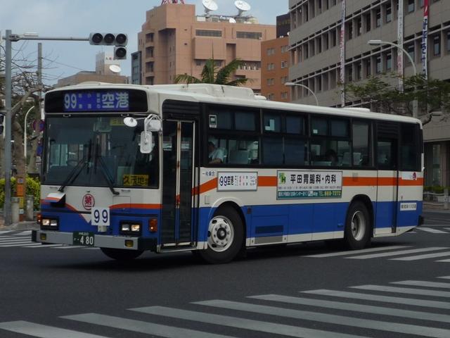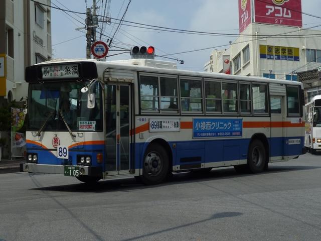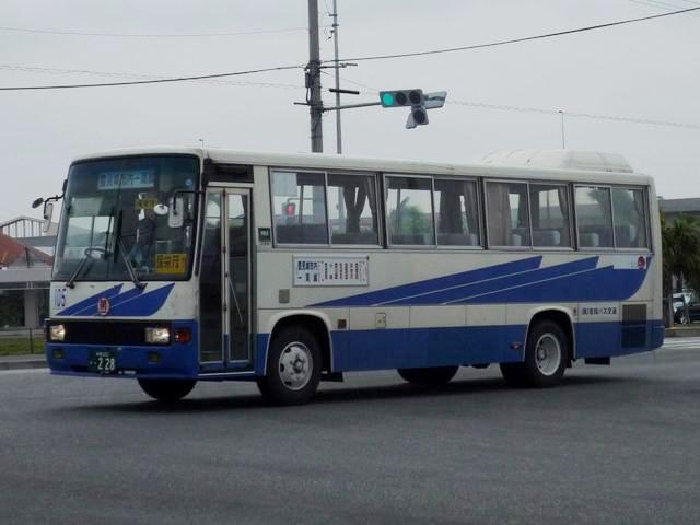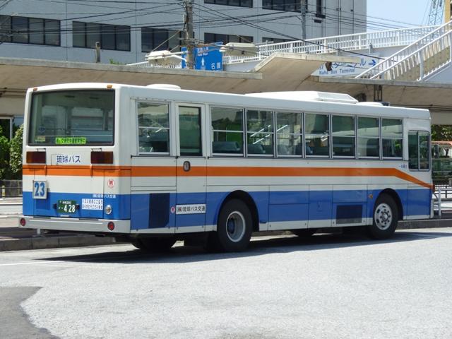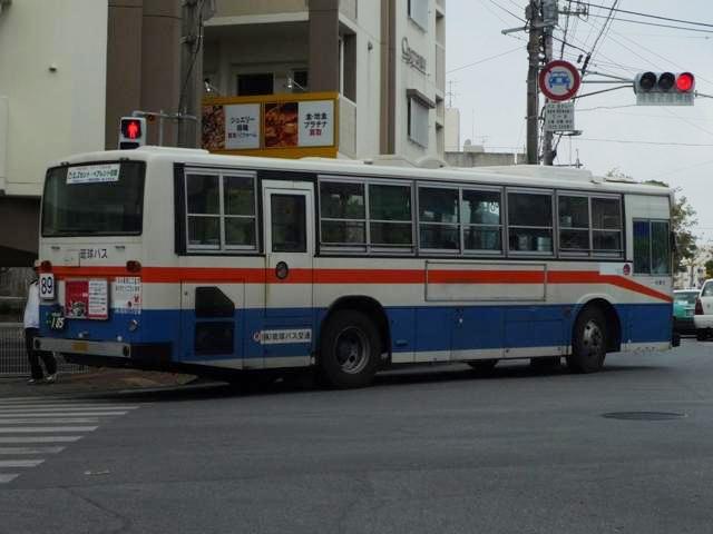 4月に沖縄本島で記録したバス画像のよせ集めシリーズ、「沖縄で見たバス2011」。 今回は琉球バス交通で「琉球バス」時代に導入した移籍車を並べていきます。2010年 編と被りますが、2011年に走っていた車両の記録ということでお付き合いください。 なお、型式・年式は「琉球バス車両一覧」『バスマガジン2号』(2003),三推社/講談社 を参照しました。 沖縄200か63.P-HT233BA(88年車)。 沖縄200か73.P-HT233BA(88年車)。 初期移籍車の代替が進む琉球バス交通。初期移籍車で特に台数の多かった横浜市交 通局からの車両も、見かけた&記録できたのは画像の日野HT2台のみで富士5Eボデ ィのU32Kは見られず。タイミングが合わなかったこともあるでしょうが、小生が沖縄を初 めて訪問した2008年に比べると激減しました。もっとも、内外装とも十分活躍した感は ありますが。 沖縄200か105.P-HT233BA(87年車)。 神戸市交通局からの初期移籍車も見ることが出来ました。画像の車両はフロントバンパ ーを米軍スクールバスの部品に交換したものと推測。 沖縄200か126.P-HT233BA(87年車)。 昨年の訪問で見ることが出来なかった西工ボディの神戸市交通局移籍車。てっきり代替 されているものばかりと思っていただけに驚きました。 沖縄200か228.U-RJ3HJAA(92年車)。 105番豊見城市内一周線で活躍するカタログカラーのRJ。105番の運行開始にあわせ て導入した中・小型車のうちの1台です。画像の車両がカタログカラーのままなのは、この 頃の琉球バスは前事業者の塗装を最小限の変更にとどめた移籍車導入を行っていた為。 対向車で走る姿をチラッと見ただけなので見間違えたかもしれませんが、同時期に導入し たRHは琉球バス交通カラーに塗り替えられている模様。そろそろこちらも塗り替えられる のでしょうか。 沖縄200か259.U-HU2MLAA(92年車)。 2011年4月現在も見たままカラーで活躍している神戸市交通局からの移籍車。 神戸市交通局から移籍車導入が続いているだけに、こちらはいい加減塗り替えた方が 良いのでは・・・。ちなみに2010年編と全く同じ車両、同じ場所で記録したものを並べて おきます。 沖縄200か312. 琉球バスカラーの帯などを追加し地色を極力生かして導入していた頃の車両。 リヤ側からの画像だけですが、裾部に名残が残る都営バスからの7EボディUA移籍車。 沖縄200か384. 色々ありましたが、最後はきちんと塗り直すようになりました。京阪バスからのHT移籍車。 沖縄200か414. 東武バスからのHT移籍車。 沖縄200か428. 元は特定用途で使われていたらしい富士7EボディのUA。リヤ側は2010年に記録した ものを参照願います。 沖縄200か480. 神戸市交通局からの移籍車。こうして並べていくと、神戸市交通局の仕様変遷が分かり ます。 沖縄200か486. 琉球バス末期に導入した南海バスからの中型移籍車。西武バス移籍車とともに名護の 北部ローカル線で活躍中。 PR