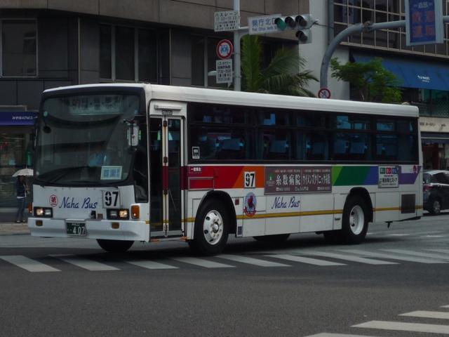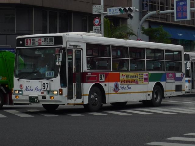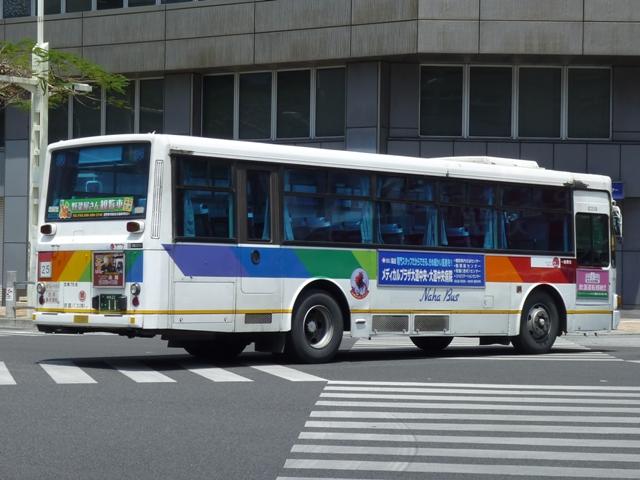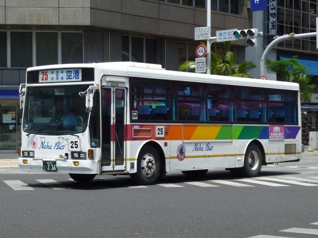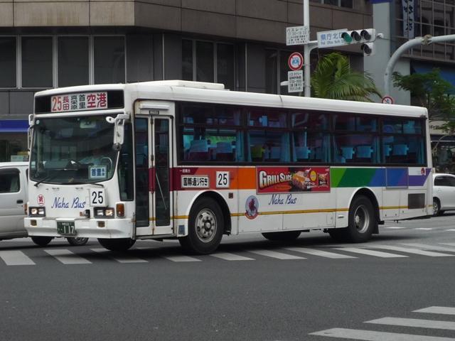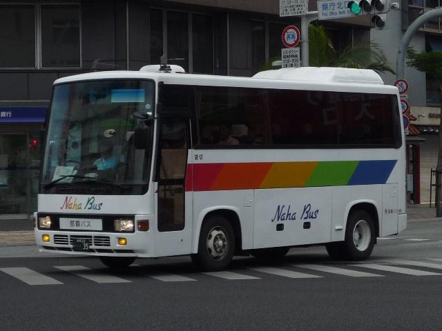 4月に沖縄本島で記録したバス画像のよせ集めシリーズ、「沖縄で見たバス2011」。 今回は那覇バス市外線の自社発注車を並べていきますが、これだけではキュービック オンリーとなるので、2枚だけですが貸切車の画像もあわせてまとめていきます。 なお、型式・年式は「那覇バス車両一覧」『バスラマインターナショナル86号』(2004), ぽると出版を参照しました。 沖縄22き45.P-LV314L(88年車)。 今回見た那覇バス市外線で最古参車だった88年車。ヘッドライトベゼルの色がおかしい この1台、まだまだ活躍中でした。 沖縄22き115.P-LV314L改(89年車)。 89年導入車から側面窓構造が変化、サッシが目立たなくなりました。 沖縄22き236.P-LV314L改(90年車)。 90年車もほぼ同様。 市外線の自社発注車には観光顔の日野HTも在籍していましたが、今年は見られず。 タイミングが合わなかったのか、移籍車導入で代替されたのか気になるところ。 沖縄22き407.U-LV324L(92年車)。 U規制車となってからは、乗合車で採用事例が少ない大型前面ガラス仕様を導入。 沖縄22き408.U-LV324L(92年車)。 ボディ再生時の工場の違いや時期から、細かい塗装のバリエーションが存在。こちらは 裾部の黄色帯が省略された車両。正面の(第一)マークの位置も車両毎に違っていたり。 沖縄22き443.U-LV324L(93年車)。 裾部黄色帯&沖縄の花「デイゴ」ステッカー無しの車両。 沖縄22き445.U-LV324L(93年車)。 ヘッドライトベゼルまで白く塗っている車両。 沖縄200か150.U-LV324L(93年車)。 こちらは登録番号を付け替えた車両。 <貸切車> 沖縄230あ717. 那覇バス貸切車の顔ともいえる現行ガーラ。 沖縄22い35.U-CH3HFAA(91年車)。 小型貸切車。側面固定窓仕様のCH。 PR
