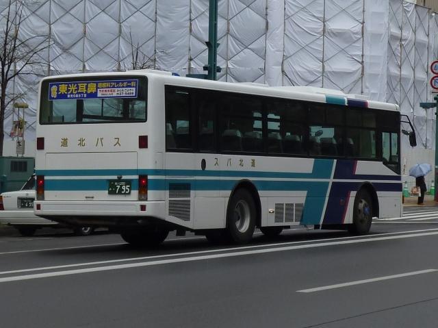 5月に北海道へ出かけた際に見たバス画像よせ集め。沖縄ネタと旭川ネタを並行更新し ていきます。さて、今回の北海道訪問では懲りもせず今年も旭川に足を延ばしました。 旭川といえば、移籍車マニアとしては避けて通れない場所になりますが、再訪するには 少々早すぎたという結果←何に? ということで、今回は2010~11年にかけて、道北バスにまとまった台数登場した神奈 川中央交通移籍車と高速車の画像を並べていきます。 旭川200か741. 神奈川中央交通では1997年に、貸切用途も対応可能なワンロマ車をまとまった台数 導入しました。車内は2人掛けのリクライニングシートがずらりと並び、テレビ・ビデオに ボトルクーラーなどを装備していました。貸切用途にも対応できる反面、詰め込みが出 来ない仕様ゆえ乗降の多い路線などでは困りものな存在でもありました。 そんなワンロマ車も多くは自動車NOx・PM法の関係で代替されましたが、エアサスや 仕様が評価されて各地で移籍車として導入事例を目にするようになりました。 道北バスは立派なシートなどを生かして名寄線などの長距離路線用途で活躍。さすが にテレビなどは撤去されている模様。 旭川200か743. 神奈川中央交通で初期に導入したワンロマ車2台を揃って移籍車導入。この2台がよほど 気に入ったのか、神奈川中央交通からの移籍車導入が続くことになりました。 旭川200か795. 旭川200か810. リヤ側からの画像が続き失礼。続いて登場したのが、神奈川中央交通でスヌーピーバス だった車両。スヌーピーバスも内装は基本的にワンロマ仕様で、リクライニングシートが 並ぶスタイル。こちらはスヌーピーバスでも逆T字側面窓仕様で登場したグループの車両。 旭川200か813. 旭川200か816. 全引違側面窓仕様のスヌーピーバスだった車両も勿論在籍。神奈川中央交通からの元 スヌーピーバス移籍車は北海道中央バスなど道内各事業者で導入しています。 旭川200か822. 逆T字側面窓仕様のスヌーピーバス。これらの神奈川中央交通ワンロマ&スヌーピー移 籍車が現在道北バスの長距離路線で主力として活躍しています。ちなみに、これまで長 距離路線で活躍していた遠州鉄道移籍車などは市内線に転用されたようです。 <高速車> 旭川200か647. 続いて記録出来た高速車を2台ほど。まずはこの日旭川空港路線運用だった直結冷房 のMS。特徴的なトランク仕様から分かるように東京空港交通からの移籍車です。 旭川200か737. 札幌駅前で記録した富士7SボディのRA高速車。元は西武バスか観光か高原か?とに かく西武バスグループからの移籍車です。道北バスは高速バスも移籍車メインで、数年 で代替している感。融雪剤の影響が大きいので合理的といえば合理的ですが、たまには 自社発注新車も見たいところです。 PR