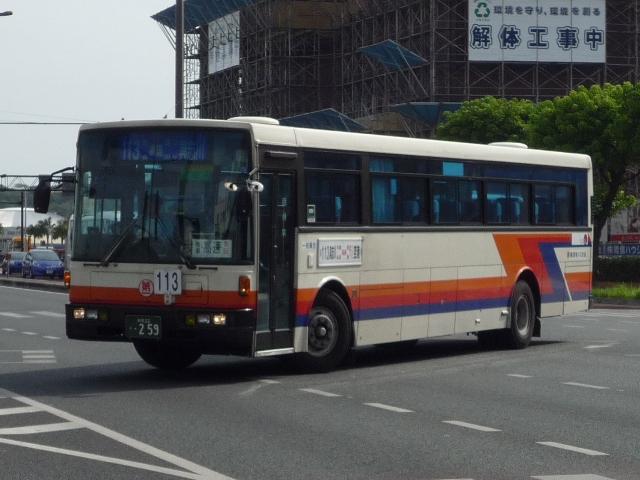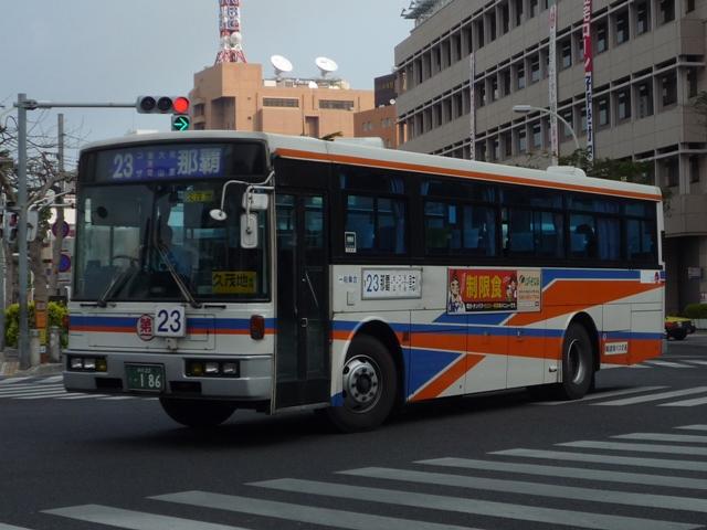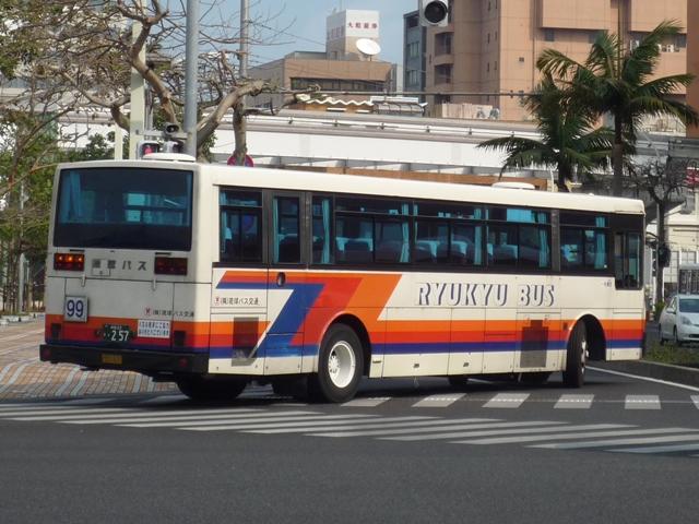4月に沖縄本島で記録したバス画像のよせ集めシリーズ、「沖縄で見たバス2011」。 沖縄22き165.P-U33L(89年車)。 沖縄22き186.P-HT235BA(90年車)。 富士7Eボディの「新塗装」車。UDシャーシと日野シャーシそれぞれ在籍しています。 沖縄22き253.U-UA510TAN(90年車)。 沖縄22き257.U-UA510TAN(90年車)。 定期観光バスから路線転用された富士7Bボディ。特急バスなど高速道路経由路線を中 心に活躍しています。側面にRYUKYU BUSのロゴが残る車両。 沖縄22き259.U-UA510TAN(90年車)。 こちらはロゴ無しの車両。 沖縄200か31.KC-RA531MBN(98年車)。 短尺仕様の貸切車から111番高速バスに転用された富士7HDボディ。111番高速バス で活躍する4社車両の中では「今のところ」年式的に最も新しい車両です。 PR