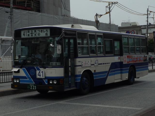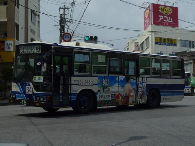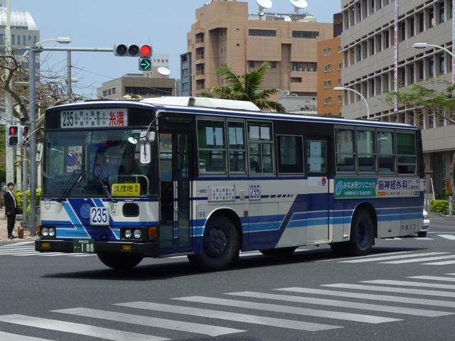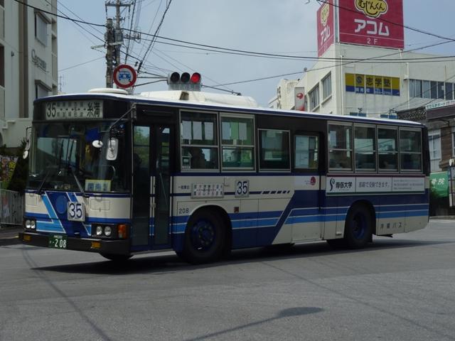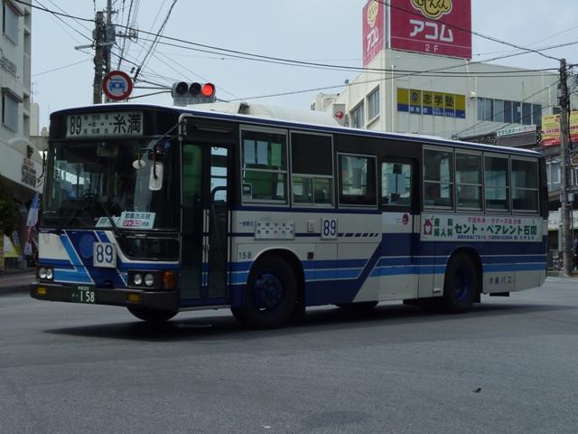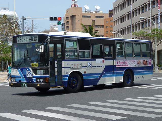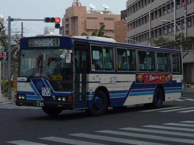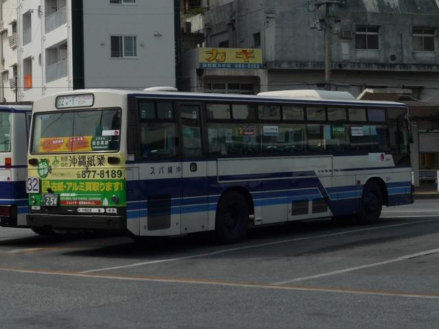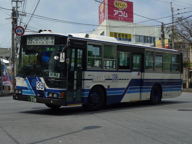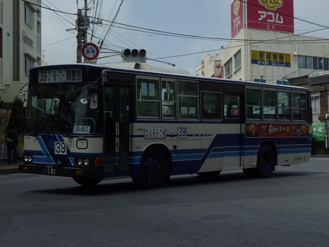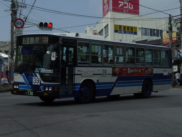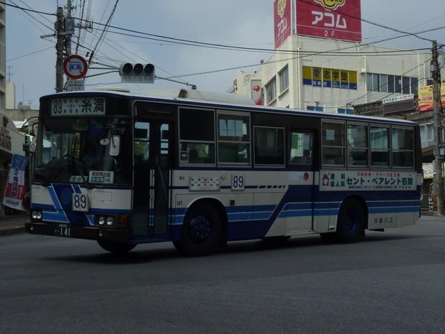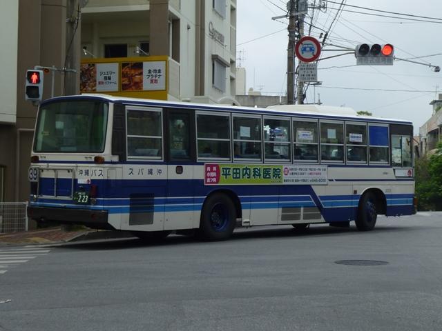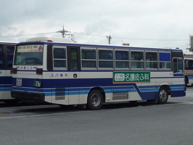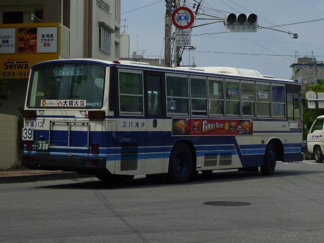 4月に沖縄本島で記録したバス画像のよせ集めシリーズ、「沖縄で見たバス2011」。 今回は沖縄バスで活躍する、沖縄200か300代までの移籍車を並べていきます。 なお、型式・年式は、「沖縄バス在籍車両一覧」『バスラマインターナショナル106号』 (2008),ぽると出版を参照しました。 沖縄200か33.P-MP218K(88年車)。 自社発注車と異なり、シルバーサッシの上部引違側面窓が目立つエアロスターK。 今回のよせ集めも2010年までに並べたものとほぼ同じです。あくまでも2011年4月に 走っていたという記録です。 沖縄200か130.P-MP218K(89年車)。 移籍車もエアロスターKばかりの沖縄バス。川崎市交通局からの移籍車。 沖縄200か141.P-MP218K(88年車)。 視野確認窓無し仕様のこちらは横浜市交通局からの移籍車。横浜市交通局移籍車はこ の頃、沖縄バス・琉球バス・東陽バスと本島3社で導入されていました。 沖縄200か158.P-MP218K(89年車)。 とりあえず記録出来た車両を並べます。川崎市交通局移籍車。 沖縄200か181.P-MP218M(88年車)。 沖縄200か188.P-MP218M(88年車)。 運賃窓の跡が残る神奈川中央交通からの移籍車。初期導入車は既に代替されており、記 録できたのは南部配属車両のみ。 沖縄200か190.P-MP218M(89年車)。 トップドアのエアロスターK移籍車。どこから来たのやら。 沖縄200か208.P-MP218K(89年車)。 引き続き横浜市交通局からの移籍車。K尺車。 沖縄200か223.P-MP218M(89年車)。 本牧配置のM尺も導入。 沖縄200か254.P-MP218M(90年車)。 32番コンベンションセンター線メインで活躍する京阪バス移籍車。運行本数が多いことも あり、県庁北口交差点では結構見かける存在。 沖縄200か289.U-MP618M(93年車)。 中型車がメインとなった120番那覇西空港線ですが、もちろんダイヤによっては大型車 も運用に入っています。画像はようやく記録出来た、元神奈川中央交通の特定車といわ れているトップドアのMP。 沖縄200か292.P-MK117J(89年車)。 リヤ画像のみですが、北部支線で活躍するMK。こちらも元神奈川中央交通からの移籍 車です。 沖縄200か299.U-MP218K(91年車)。 角ライトのエアロスターKは川崎市交通局からの移籍車。南部方面への路線で活躍して いる車両が多い感。 沖縄200か308.U-MP218K(91年車)。 せっかくなのでもう1台。 PR