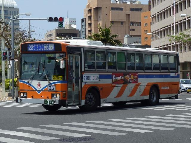 4月に沖縄本島で記録したバス画像のよせ集めシリーズ、「沖縄で見たバス2011」。 今回は琉球バス交通で活躍する元スクールバスの乗合転用車を並べていきます。 はっきり今回の内容は涎掛けが無いというだけで、2010年編の方が充実していること をあらかじめおことわりしておきます。 なお、型式・年式は「琉球バス車両一覧」『バスマガジン2号』(2003),三推社/講談社 を参照しました。 沖22か1955.P-HT236BA(86年車)。 今回記録出来た最古参のスクールバス乗合転用車は画像の86年導入長尺車。 リヤ側のみで失礼。 沖22か2087.P-HT236BA(87年車)。 87年導入車は前年同様の長尺。似たような車両ばかりなので分かりませんが、このあ たりのスクールバス転用車も代替が進んでいるのでしょうか? 沖縄22き157.P-HT233BA(89年車)。 89年は短尺車を導入。 沖縄22き302.U-HT2MLAA(91年車)。 U規制車となった91年導入車。このあたりはまだまだ活躍するものと推測。ところどころ に残る英語表記の注意書きに、元々の用途を感じさせます。 沖縄22き437.U-HT2MPAA(93年車)。 93年はP尺の長尺車を導入。 沖縄22き479.U-HT2MPAA(94年車)。 94年も長尺車。もはや自己満足だけで並べています。 沖縄22き487.U-UA440NSN改(95年車)。 スクールバス乗合転用車では少数派のUD。95年に導入した長尺車が在籍しています。 沖縄22き579.KC-HT2MMCA(97年車)。 スクールバス用途で最後の導入となった97年車。2010年にも記録した車両ですが、 側面ラッピングとなった点が異なります。 モチベーションの上がらない更新で失礼しました。 PR
