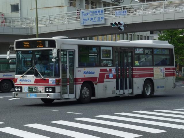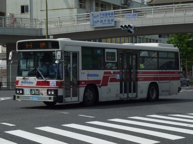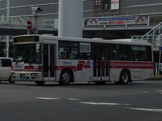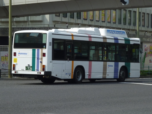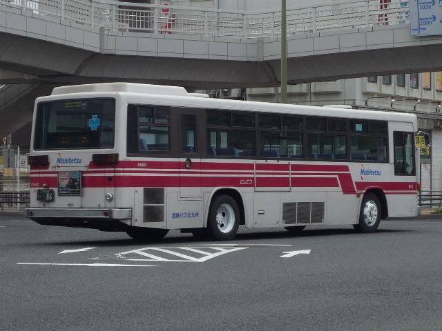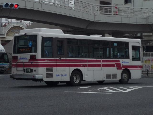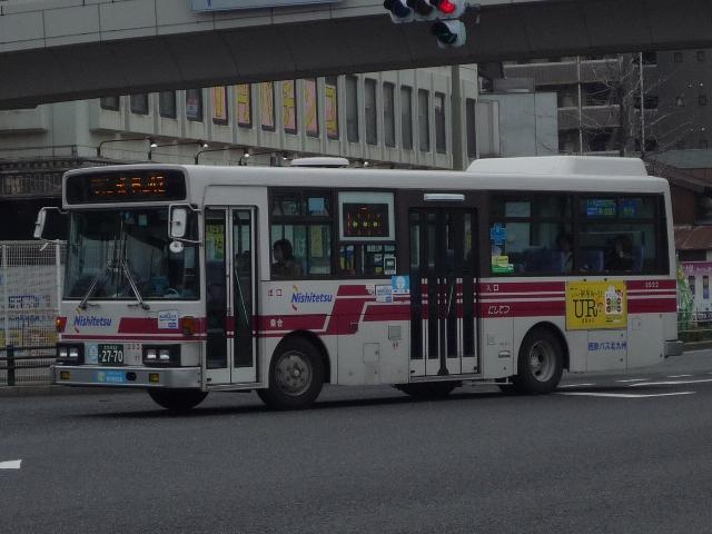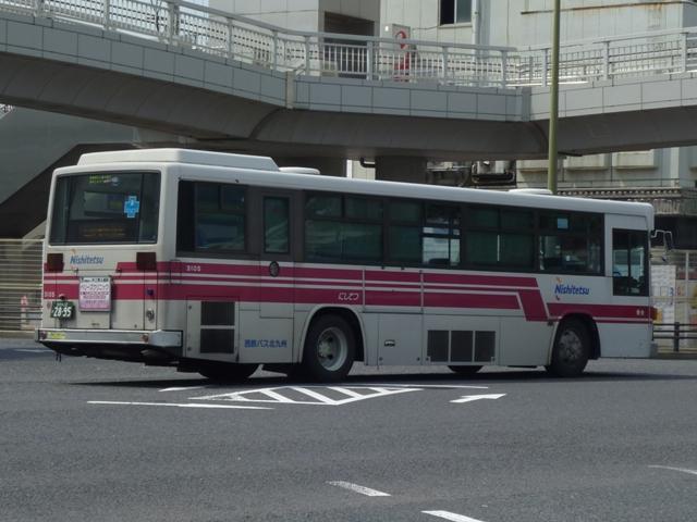 <三菱ふそう車> 社番:4590.U-MP218M(91年車)。 社番3000・4000代は三菱ふそう車。古参格はこのあたりの91年車の模様。 まだまだ西工58MCボディがわんさか走っているので、見た目に古さはさほど感じません。 社番:4943.U-MK218J(94年車)。 94年に導入した中型ワンステップ車。 社番:3106.KC-MP217M(96年車)。 社番:3105.KC-MP217M(96年車)。 社番が前後して失礼、KC規制車となったMP。このあたりまで58MCボディで導入。 社番:3212.KC-MP317M(97年車)。 96MCボディとなった97年車、画像は西鉄バス筑豊所属車両です。行先表示が方向幕 となっています。 社番:3608.KL-MP35JM(01年車)。 スロープ付きのワンステップ車。北九州在籍車両の車椅子マークは黄色ベースとなって います。参考文献によれば北九州市花の「ひまわり」をあしらったものとのこと。 PR