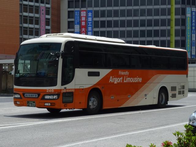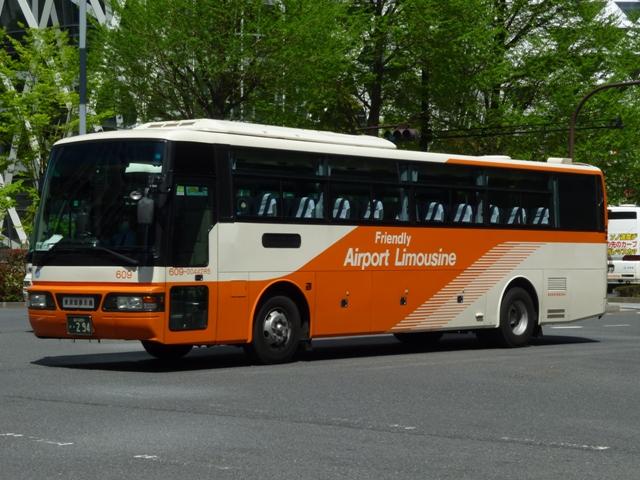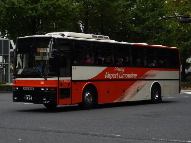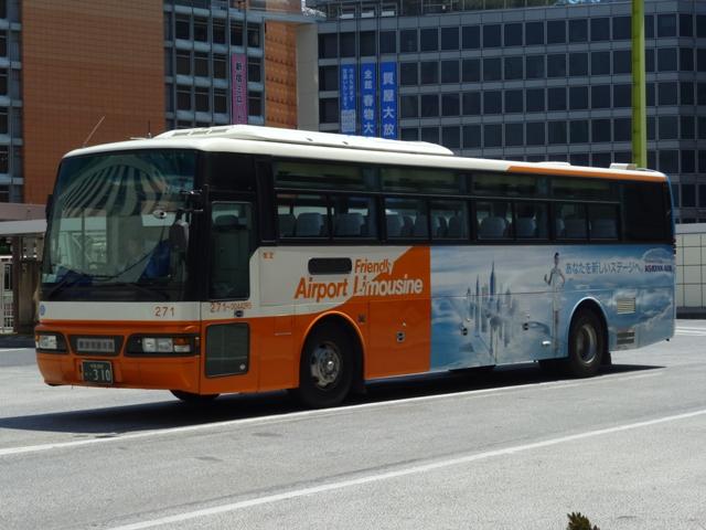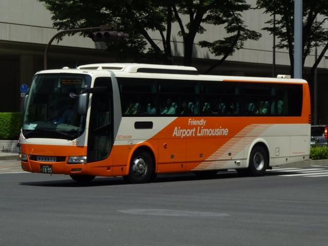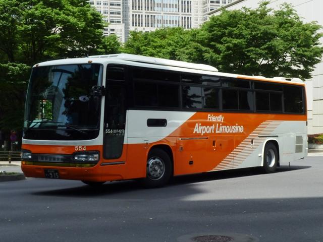 「新宿西口で見たバス2011」と題したバス画像のよせ集め。〇〇西口で見たバスが続 きます。今回は羽田空港・成田空港へのリムジンバスでおなじみ、東京空港交通の車両 を並べていきます。新宿は東京随一の繁華街ということで運行本数も多く、バリエーショ ン豊かなリムジンバスを見ることが出来ます。 なお、型式・年式は、「東京空港交通 型式別車両配置表」『バスラマインターナショナル 86号』(2004),ぽると出版を参照しました。 <日野車> 社番:554-30742FD.KL-RU4FSEA(03年車)。 まず東京空港交通で少数派の日野車から。東京空港交通では長らく横引きスライド 扉仕様のトランクを採用。他メーカー車が一般的なスイング式に変更されるなか、日野 車はセレガRにも横開き仕様で導入。 ちなみに参考資料のバスラマによれば、東京空港交通の社番は「-(ハイフン)」前の数 字部分のみとのこと。社番の頭数字はさらに所属・用途で区分されており、頭数字3・5 ・6は羽田・平和島所属の路線車をあらわします。暗号のような「-」以降は導入年月・ 定員・型式略称となり、この車両を判別すると羽田・平和島の所属で2003年7月導入、 定員42人のセレガRのFD仕様ということになります。 社番:952-00925FCV. 2010年12月より経済産業省の肝いりで運行を開始した「燃料電池バス」。車両は元々 愛知万博で会場シャトルバスとして運行していたノンステップ車を大改造したもの。その ため一部のシートはかなり窮屈な部分もあります。今のところ午前に新宿1往復、午後 に箱崎1往復のみの限定運用となっています。ちなみに社番900代は身障者用ランプ バスなど特殊車両の区分です。 <三菱ふそう車> 社番:550-30542M86. 続いて三菱ふそう車でエアロバス。直結冷房・3本トランク、これぞリムジンバスといった 感じ。 社番:507-80642M96. 着々と勢力拡大を続けるエアロエース。 社番:466-00555M96. 社番の頭数字3・4は箱崎所属の路線車。新宿方面の路線も間合いで担当している模様。 トイレ無し55人乗りのエアロエース。 <UD車> 社番:647-00255R5.KC-RA531RBM(00年車)。 東京空港交通に少数在籍する富士7HDボディのUD車。画像の車両は側面全引違窓 仕様となっており、リムジンバスらしからぬチープさを感じさせます。 社番:609-00442R5.KC-RA531RBM(00年車)。 社番:606-00442R5.KC-RA531RBM(00年車)。 前後で社番が異なり失礼。トイレ付き42人乗りの車両は側面T字窓仕様となっています。 社番:271-00442R5.KC-RA531RBM(00年車)。 社番頭数字2は成田所属の路線車。画像は側面中央部以降のラッピング車となっている 車両。ラッピング車のスポンサーは航空会社など空港に関連したところが多い感。 社番:629-00942JA.JA530RAN(00年車)。 東京空港交通といえば、忘れてならないユーロツアー。フィリピンで製造したボディを架 装することで低価格を実現・・・しましたが、諸事情もあり数年で撤退。画像の車両は最 終導入となった2000年車。ウッディで雨漏りしそうな内装はボディ更新の際徹底的に 改造されたましたが、真っ黒な床は国産車には無い独特なムードを醸し出しています。 東京空港交通では最盛期100数台在籍し一時代を築いたユーロツアーですが、代替 も進んでおり見かける機会も随分少なくなりました。画像はたまたま教習車として運用 中だったところを記録したもの。 ※参考※ 社番:29-90955JA.JA530RAN(98年車)。 2桁の社番は平和島所属の貸切車。画像は2010年に記録したものですが、ユーロツア ーの貸切車も在籍したという参考で並べておきます。貸切車も時折路線運用に入ってい ます。 社番:585-10252R5.KL-RA552RBN(01年車)。 富士1MボディのRA。富士重工のバスボディ製造撤退まで短い期間の導入でしたか、 まとまった台数が活躍しています。 社番:556-30550R5. 順当に導入された西工ボディのRA。 社番:246-60450R2. 尿素+ATのみとなったRAも早々に導入されました。尿素タンクの関係でトイレが運転席 側に変更されました。 PR
