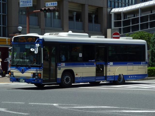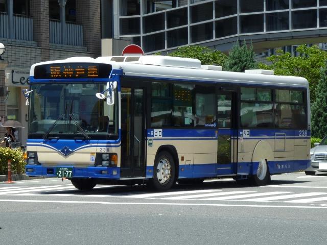 阪神バスは阪神電気鉄道直営のバス事業を分社した事業者です。大手民鉄他社が直 <日野車> 社番:426.KL-HT2PMEA(00年車)。 続いて社番300・400代の日野車。 KL規制車からモデルチェンジしたブルーリボンシティ。バリアフリー法施行ぎりぎり前の 00年12月導入車両で、ブルーリボンシティの路線バスではツーステップ・前後扉・板バ ネと少数仕様をそろえた珍車。ちなみに阪神電気鉄道で最後の前後扉車です。 社番:431.KL-HU2PMEA(01年車)。 リヤ側画像のみで失礼。ブルーリボンシティのワンステップ車。 社番:462.PKG-RU1ESAA(06年車)。 「サラダエクスプレスカラー」のセレガ空港路線車。伊丹と関空で異なる塗装だった空港 路線車も、このカラーに統一されていくようです。ちなみに阪神バスの社番はメーカー毎 の区分のみで、観光車・貸切車・路線車の種類関係なく導入順に連番となっています。 社番:469. 順当に登場している1つ目KV。日野車はデンソー、いすゞ車はサーモキングと律儀に分 けて導入しています。画像は神戸三宮で記録したもので、HAT神戸線など一部路線で は前面に丸サボを取り付けて運行しています。 <いすゞ車> 社番:219.KL-LV280L1改(04年車)。 社番100・200代はいすゞ車。CNGエルガノンステップ。 社番:221.KL-LV280N1(04年車)。 西工ボディのLVワンステップ車。 社番:238.PJ-LV234L1(06年車)。 06年以降はジェイバスボディのみで導入。エルガワンステップ車。 社番:246. 07年5月導入のエルガワンステップ。タクシーと被ったりなんだりで、右斜め後からきちん と記録出来た車両はこれだけ。 社番:249. せっかくなのでもう1台並べておきます。 社番:252. 08年6月導入のPKGorPDG規制車。阪神バスはAT車も導入しており、どちらか分か らず。 社番:277. 10穴ホイールのLKG規制車。画像の車両は2011年3月導入です。 *** *** さて西宮まで来たら、阪神西宮駅前にある廃車バス利用の店舗を見ておかなければ。 ということで、駅前へ移動。 台数は増減あって、西工・日野車体・キュービックの3台が現在再利用中。 車内は店舗に合わせてだいぶ改造されていますが、きちんと管理されているようで一 安心。バス再利用店舗にありがちな見るも無残という状況ではありませんが、駅前整 備等で今後どうなるのか少々気になります。 PR