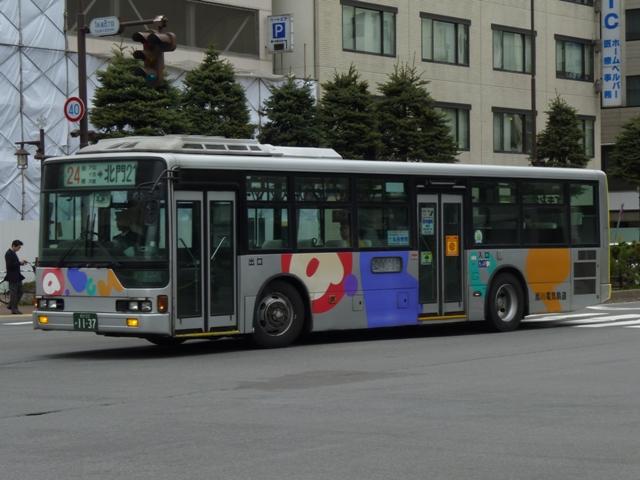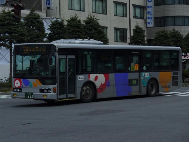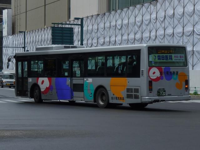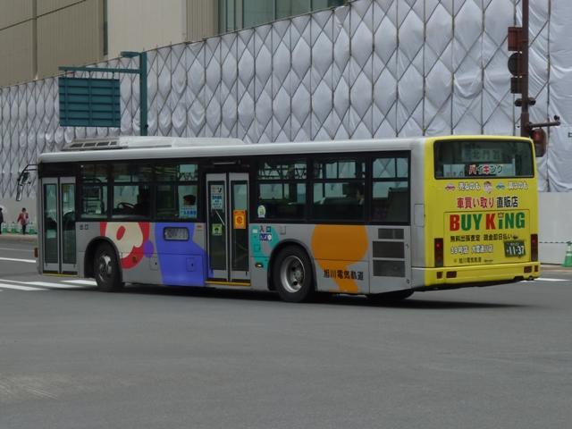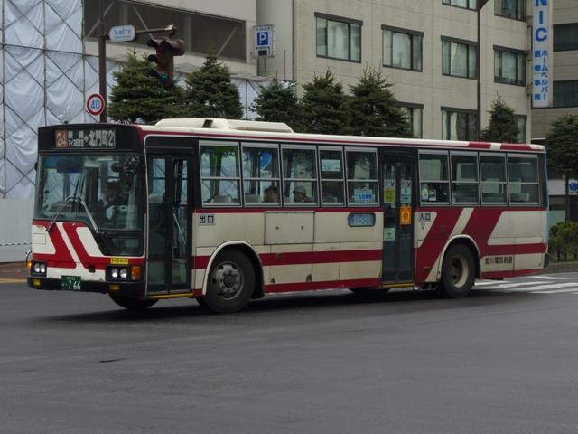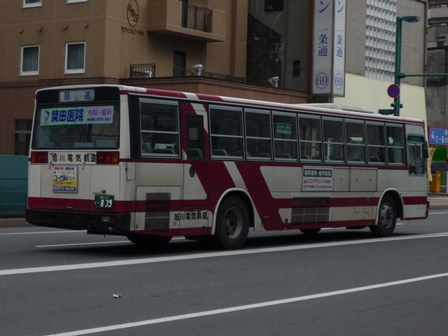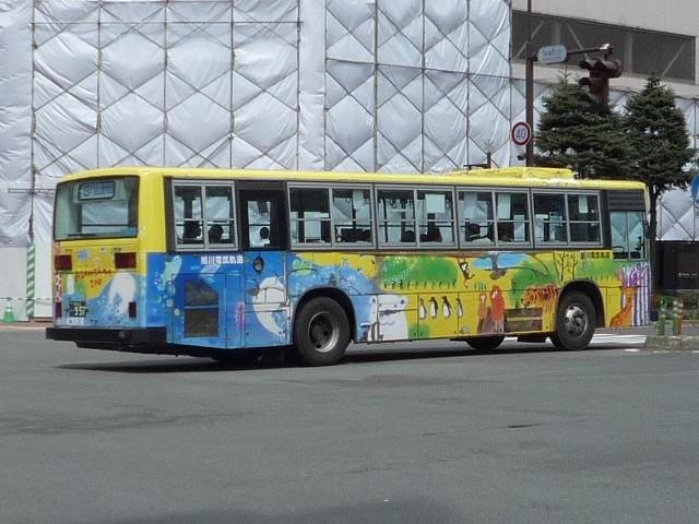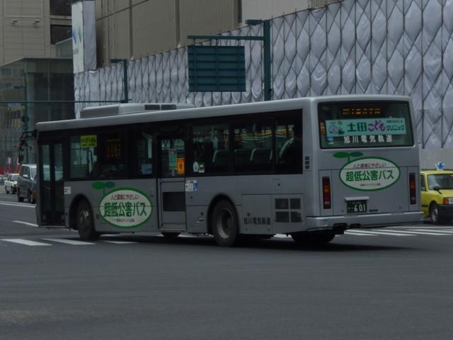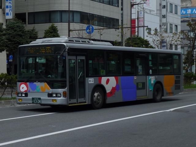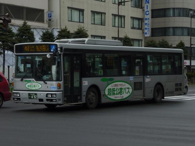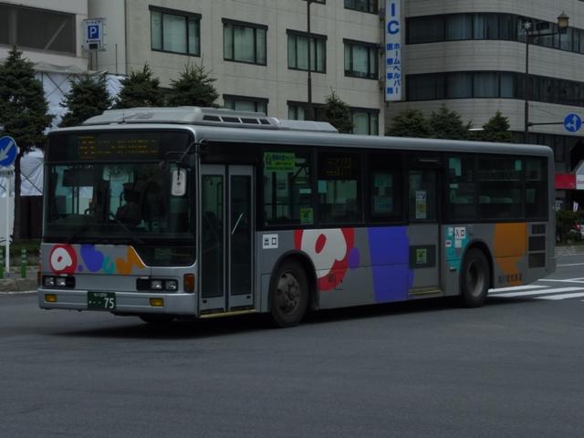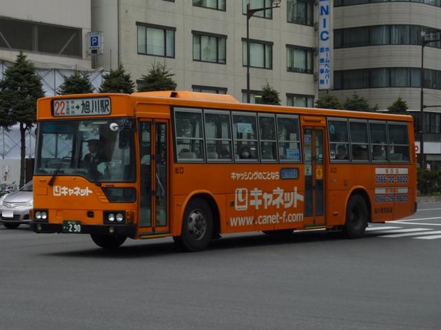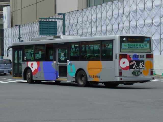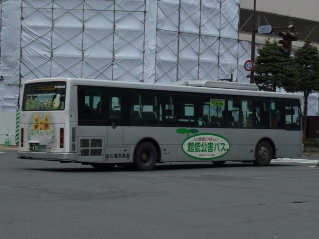 ようやく最終回となる、5月に旭川へ出かけた際に見たバス画像よせ集め。 今回は旭川電気軌道の車両を並べていきます。しかし、記録出来た車両は2010年に 並べたものとほぼ同じことをあらかじめおことわりしておきます。 なお、型式・年式は「ノンステップバスは「いつものバス」旭川電気軌道のノンステップバ ス、導入8年目の現状」『バスラマインターナショナル88号』(2005),ぽると出版、及び バスラマ各号掲載の「ノンステップバス採用状況」を参照しました。 <ツーステップ車> 旭川22か281. 旭川電気軌道は道内随一のノンステップバス保有事業者として知られていますが、まだ まだツーステップのP規制車も活躍しています。中扉折戸で側面の行先表示が窓下にあ るのが当時の旭川電気軌道の標準仕様。画像の日野車はイオン旭川西ショッピングセン ターへの無料送迎バスで運行中でした。 旭川22か290. こちらはエアロスターM。2010年と同じ車両を並べています。 旭川22か766. 正面の方向幕が黒地に白抜き文字のタイプもあるんですね。 旭川22か839. 左斜め前側と右斜め後ろ側の両方を記録できたツーステップ車両はこれだけ。 UDのツーステップ車とはタイミング合わず。 旭川22か957. リヤ側のみで失礼。旭山動物園のPRラッピング車でしょうか。 <ノンステップ車> 旭川22か1137.KC-MP747M(97年車)。 97年3月に10台とまとまった台数が登場した三菱ふそうのノーステップバス。第1次導入 車は側面窓が開くなど、後の増備車と異なる仕様。 旭川22か1224.KC-MP747M(98年車)。 98年もMPノーステップバスを10台導入。冬季対策で98年車から側面窓が固定化。 共栄営業所の車両は側面行先表示位置を側面窓内に変更し、窓下部の表示窓は埋め られています。 旭川22か1324.KC-MP747M(99年車)。 この頃は毎年仕様を変更、99年車から中扉が引戸仕様となります。 旭川200か75.KC-MP747M(00年車)。 00年車はMPのみ10台導入。KC規制車はここまで。 旭川200か162.KL-HR1JNEE(01年車)。 01年は日野のノンステップバスを導入。バスラマによれば狭隘道路への乗り入れを企図 して導入したというHR10.5mサイズ。3台在籍。 旭川200か223.KL-MP37JM(02年車)。 02年は三菱ふそうとUDを導入。まずは三菱ふそうのMP、これまでと同じM尺車です。 旭川200か232.KL-UA452PAN改(02年車)。 旭川200か233.KL-UA452PAN改(02年車)。 前後で車両が異なり失礼。UDはP尺と長尺ノンステップ車を導入。道内はやはりこうで ないと。 旭川200か391.KL-UA452PAN改(04年車)。 04年はUDのみ導入。西工ボディが旭川電気軌道に初登場しました。 旭川200か492.ADG-RA273PAN(06年車)。 06年に2台登場した尿素RA、デンソーエアコンを装備。 塗装はアーバスではなく、「超低公害バス」と尿素車をアピールしています。 旭川200か601.PKG-RA274PAN(07年車)。 07年は排ガス記号が変わった関係で型式が若干変化しましたが、引き続き尿素RAを4 台導入。エアコンがサーモキングに変更されました。 08年はポンチョを導入しているようですが、今年も見ることは出来ず 旭川200か723.PKG-RA274PAN(09年車)。 旭川200か722.PKG-RA274PAN(09年車)。 09年登場のRAはアーバス塗装で登場。やはり前後で車両が異なり失礼。 <空港線車両> 旭川22か1099. 旭川市内と旭川空港を結ぶ路線は道北バスと共同運行。といっても、ほとんどの便を旭川 電気軌道が担当しています。まずは三菱ふそうの初代エアロバス。再登録車なのか移籍車 なのか分からず。 旭川200か764. 登録番号から2010年導入と思われる西工E型ボディのRA。短距離なのでこの程度で 仕様的に十分です。 PR