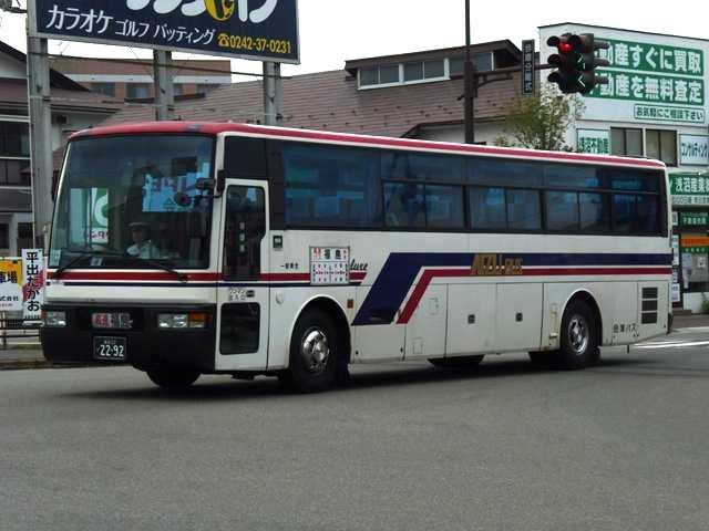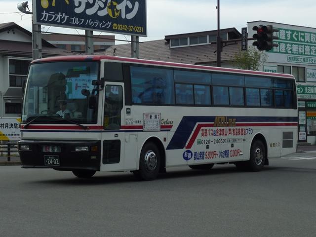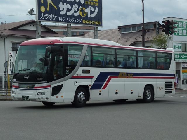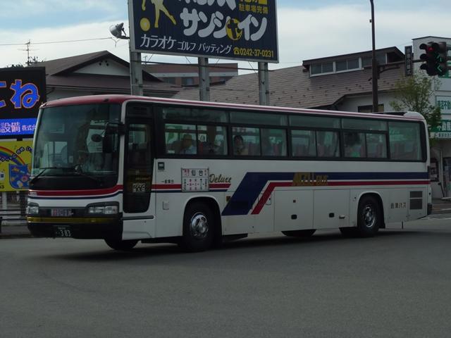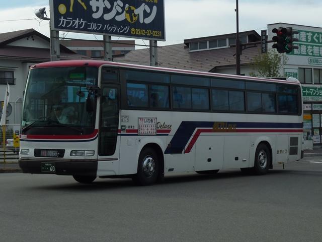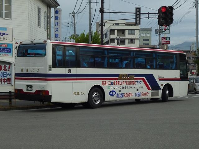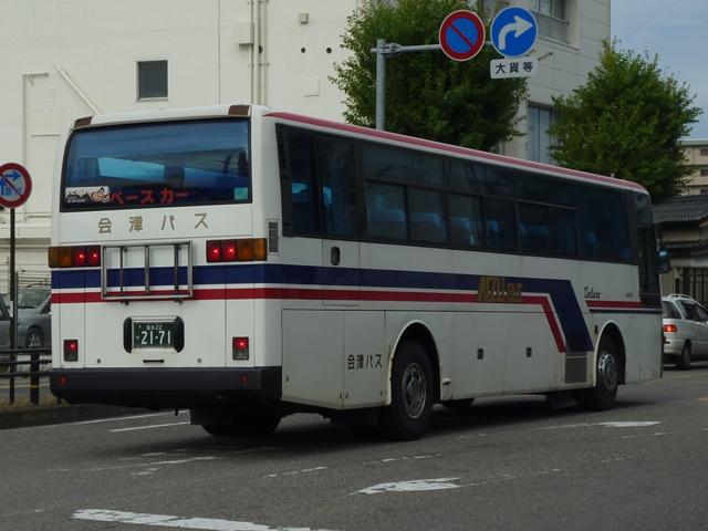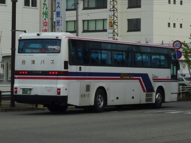 9月の福島バスまつりにあわせて会津若松へ出かけた際に記録したバス画像のよせ集め 「会津若松で見たバス2011」。今回の「その1」では、記録出来た会津乗合自動車の高速 車を並べていきます。正直なところ昨年並べたものとほぼ同じ内容となっていることを、あ らかじめお断りしておきます。 福島22か2171. 会津乗合自動車で活躍する県内高速車両のほとんどは貸切からの転用車。正面行灯部の 方向幕は手動式となっています。まずはヘッドライト角目4灯のいすゞLV、昨年同様野沢線 の運用に入っていました。後部にあった花春の広告看板が契約切れとなったのかありません。 福島22か2292. 当時の会津乗合自動車では、貸切車に富士重工ボディを架装していました。ということで、貸 切転用車が多い高速車は画像のように富士7HDボディばかりという状況。こちらは福島線の 運用に入っていた日野セレガシャーシの富士ボディ。 福島22か2402. ヘッドライトや後面形状が変更された富士7HDボディ後期タイプ。側面に会津宿泊プラン 広告の入ったいすゞ車。この日は新潟線の運用に入っていました。 福島22か2566. トイレ付の日野車、この日は仙台線の運用でした。 福島22か2568. いわき線の運用に入っていたいすゞ車。県内高速と新潟線・仙台線は車両を共通運用して いるようです。 福島200か60. 福島200か61. 日野車の富士ボディ架装中止にともない、遅まきながら純正ボディのセレガが登場。 福島200か383.9月に記録。 セレガRの貸切転用車。この日はいわき線の運用でした。 会津230あ617. 現行ボディのセレガ高速車。トイレ無しの車両は初めて見ました。登録番号は福島ナンバー から会津ナンバーに付け替えた模様。 会津230か35. こちらは主に「夢街道会津号」で活躍するトイレ付ガーラ。今回はリヤ側しか記録できません でしたが、行先表示の関係で1枚ガラスとなっているのが特徴なのでこれでよし。 側面は会津をPRしたラッピング車となっています。 会津200か145. いよいよ高速車にも移籍車が登場。セレガの短尺車という微妙な仕様から、元は学校か役所 関係の車両と推測。正面行灯部分は行先表示機を注文中?なのか、何も無い状態でした。 この日は福島線の運用に入っていたことから、県内高速共通運用車の模様。県内高速車は 並べたように、そろそろ代替時期となる車両も多く在籍しています。これまでのように貸切から 転用するにも、既に減車しているため代わりとなるような車両は無し。移籍車導入は妥当なと ころなのかもしれません。 PR