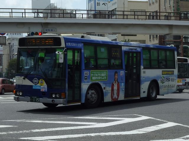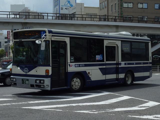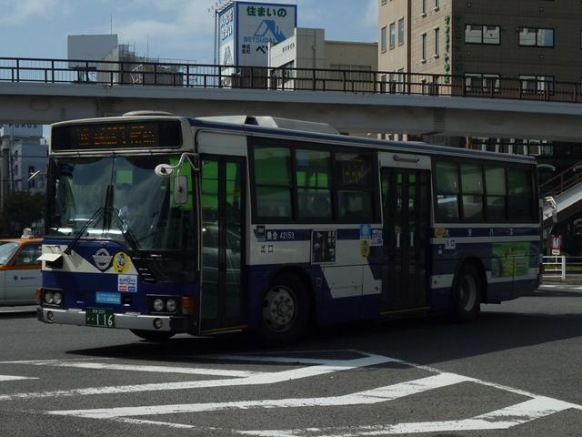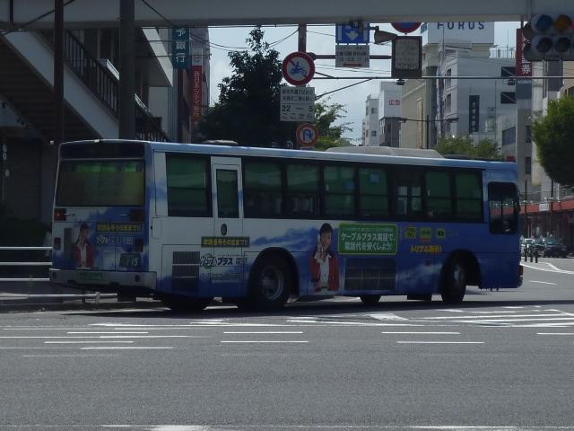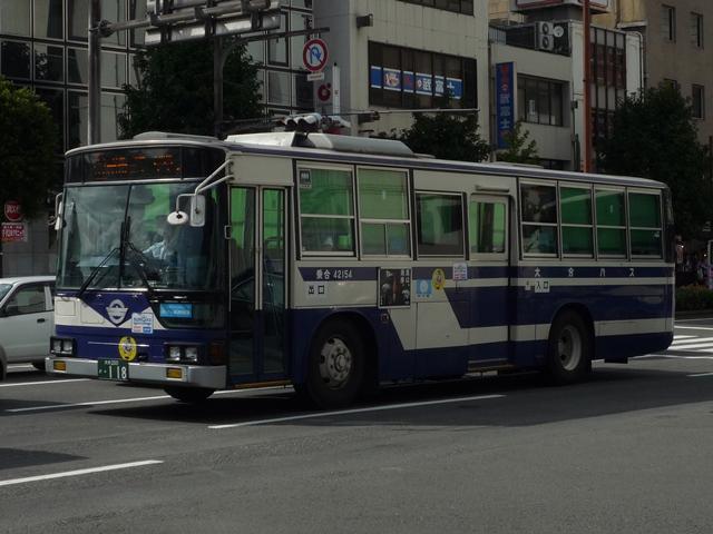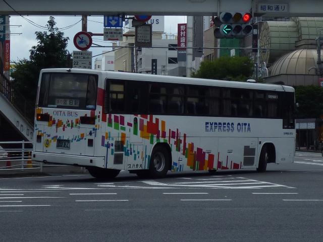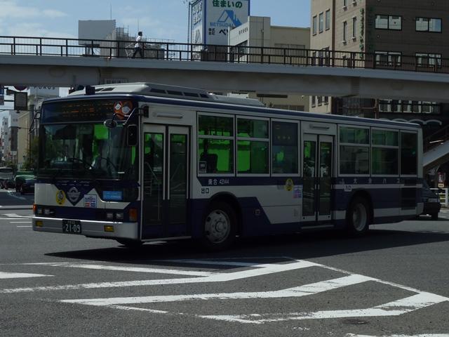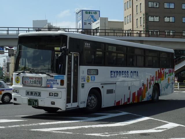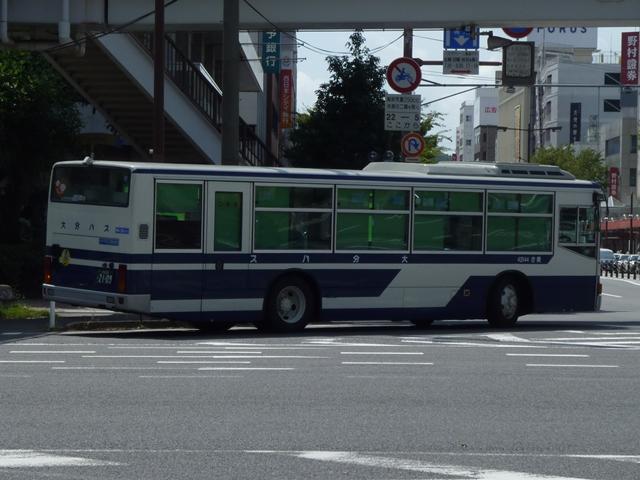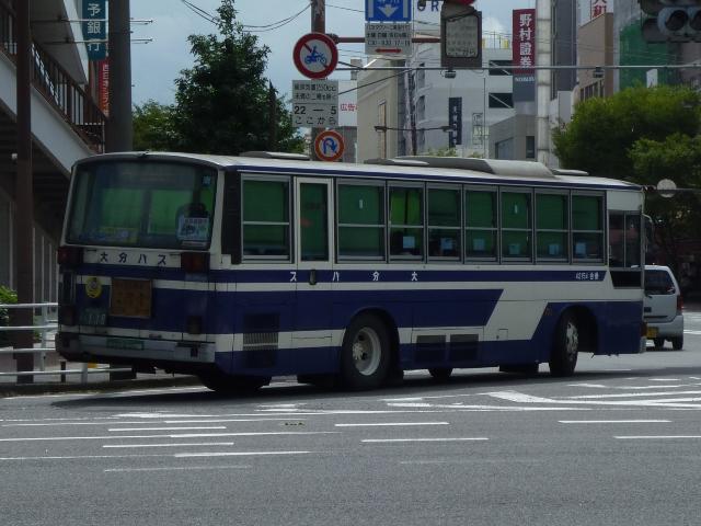 9月に大分へ出かけた際に記録したバス画像よせ集め「大分で見たバス2011」。 今回は大分バスの三菱ふそう車を並べていきます。 なお、年式・型式は「大分バスグループ在籍車両一覧」『バスラマインターナショナル121 号』(2010),ぽると出版 を参照しました。 社番:42144.KC-MP747K(97年車)。 5桁社番の頭数字「4」は三菱ふそう車をあらわします。大分バスでは、UD車同様三菱 ふそう車も少数派です。まずは97年と、早い段階に2台登場したMPノーステップバス。 九州地区初となるノンステップバスで、翌年も同型車2台導入。 社番:42152.P-MP218M(89年車)。 02~03年にかけて登場した首都圏事業者からの移籍車。三菱ふそう車は2事業者から 移籍車導入。まずはまとまった台数活躍している小田急バス移籍車。P規制車の中4枚 折戸エアロスターM。ご覧のようにラッピングバスとなっている車両も在籍。 社番:42153.P-MP218M(89年車)。 標準塗装車も記録できました。中扉が4枚折戸仕様となっていることから、東京都交通局 移籍車同様、自社発注車との相違は少ない感。 社番:42154.U-MP218K(90年車)。 川崎市交通局からエアロスターKの移籍車も2台在籍。中扉は引戸ですが、角目ヘッドラ イトが大分バスにマッチしています。 社番:42156.U-MS726S(92年車)。 移籍車といえば、九州急行バスからこんな車両も。特徴的な正面の豚鼻行先表示をその まま活用しているMS。バスラマによれば、佐伯からの大分空港リムジンバスで使われて いる車両とのことですが、この日は「急行さざんか号」の運用に入っていました。 社番;42173.PDG-AR820GAN(08年車)。 ここ数年車両代替が活発となっている大分バス。MPノンステップ以来、久々に登場した三 菱ふそうの自社発注一般乗合車はなんと西工ボディARワンステップ車。中型新車はKR ばかりなので目立つ存在。残念ながらARはこの時導入した2台のみで打ち止め。 社番:42175. バスラマ事業者訪問掲載後に導入されたMPのワンステップ車。8穴ホイールからPKG 規制車です。KR・KVたまに三菱ふそう車を導入という感じ。リヤ側画像のみで失礼。 PR