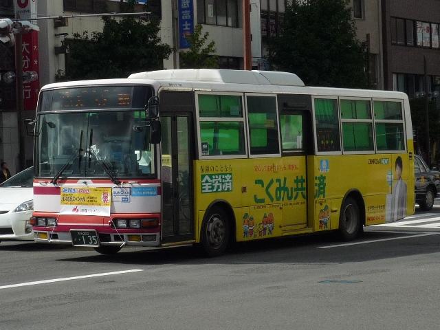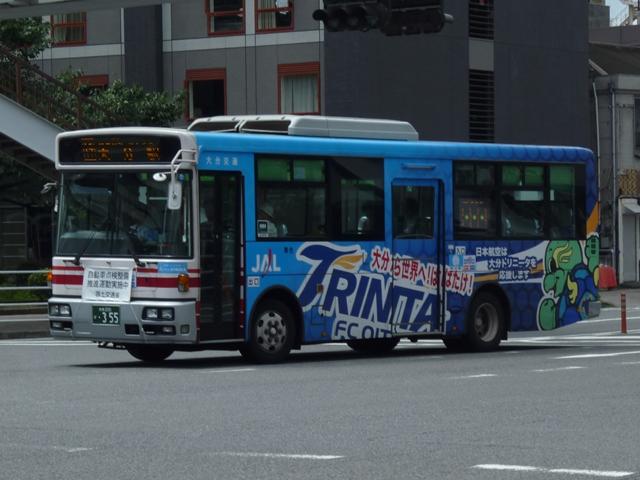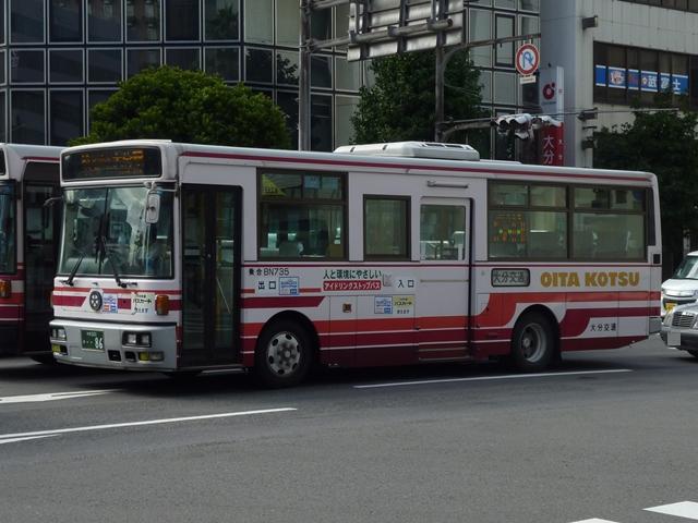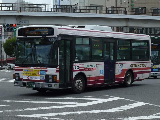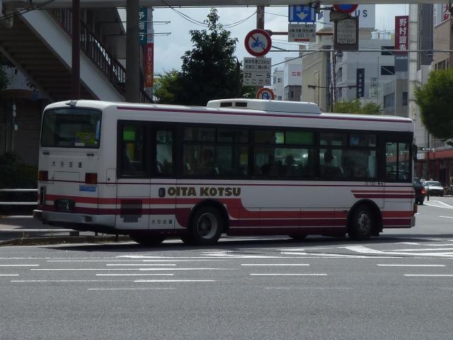 9月に大分へ出かけた際に記録したバス画像よせ集め「大分で見たバス2011」。既に 飽きている方もおるかと思いますが、もう少し続きます。 今回は国東半島など大分県北部をメインとする大分交通で活躍する「大分200か」ナン バーの記録出来た車両を並べていきます。 なお、型式・年式は「大分交通グループ 在籍車両一覧」『バスラマインターナショナル94号』 (2006),ぽると出版 を参照しました。 <エアライナー> 大分200か324. 大分200か325. まずは大分市内と大分空港を結ぶ「エアライナー」で活躍する車両から。「エアライナー」 には貸切転用車やスタンダードデッカーのエアロバスが活躍していましたが、01年より西 工E型ボディの車両を導入開始。性能・仕様等に問題が無かったようで増備が続き、画像 は直結冷房となってトランク部が拡大されたシビリアンテールの尿素RAです。 大分200か437. 大分200か481. このまま路線シャーシ継続かと思いきや、廉価仕様のガーラを導入。画像の車両は増 備車です。 <一般乗合車> 大分200か60.KK-LR233J1改(00年車)。 中扉折戸仕様のエルガミオワンステップ車。この頃の大分交通では珍しいエアサス一般 乗合車。ちなみに前扉後ろに「OI722」と社番表記がありますが、参考資料としたバスラ マ刊行時点で既に使用しておらず、近年導入の車両には表記すらありません。というこ とで2009年に並べた際と同じく、ここではナンバーのみの記載とさせていただきます。 大分200か84.KK-LR333J1(01年車)。 01年車はリーフサス仕様で導入。中扉が折戸から引戸に変更となったのもこの頃から です。 大分200か86.KK-RM252GSN(01年車)。 西工ボディのRM。こちらもリーフサスで導入。 大分200か135.KK-MK23HH(03年車)。 MKのワンステップ車。大分交通は導入台数の割に車種が豊富で、1車種1~2台という ものもザラ。KK規制車のMKワンステップ車も99年車と画像の03年車の計2台のみ。 大分200か136.KK-LR233J1改(03年車)。 メーカーの仕様整理でエアサスのみとなったエルガミオ。 大分200か354. 大分200か355. テールライト配置からLRと思しき西工ボディの中型車。こういう時に車番が無くなった不 便さを感じたり。日本航空による大分トリニータPRのラッピング車で、微妙にデザインが 異なる2台が在籍している模様。JALロゴが旧タイプのままとなっており、今もトリニータ を応援しているのかは疑問。 大分200か434. 大分交通に久々に登場した大型一般乗合車となるエルガワンステップ車。画像の車両は 標準尺のN尺となっていますが、APU線向けの車両はQ尺で導入とのこと。 大分200か506. APU線で活躍するMP、神奈川中央交通からの移籍車です。時折移籍車を導入していた 大分交通ですが、まさか神奈中古がやってくるとは想像出来ず。しかも元スヌーピー等では なく、なんでもないツーステップ車というのだから驚き。見た感じシートは神奈中時代のまま のようなので、貸切・エアライナー転用車がメインのAPU線では確実にハズレの車両ではな いかと推測。 PR