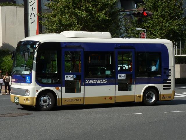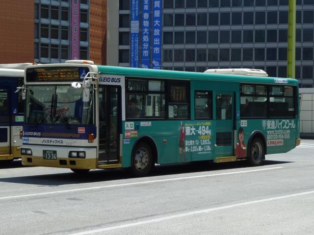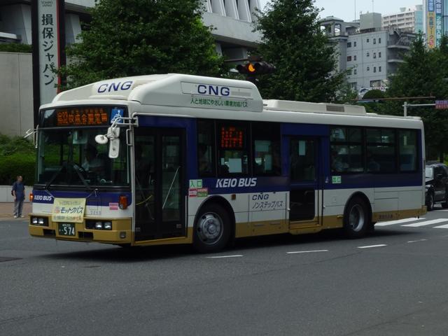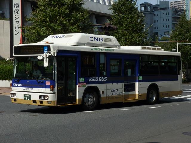 代替で登場しました。大型車でも満員になることがある路線ゆえ、さすがに大型車の代替に 大型車となりました。前扉後の「KEIO BUS」ロゴを若干後方に移動させ、バス得PR付き PASMO利用可能ステッカーの場所を確保。 <UD車> 社番:D40253.KL-UA452KAN(02年車)。 永福町営業所にCNGタンクを設置することもあり、大型CNG車が登場。 02年に3台導入したのが京王電鉄バスグループ富士ボディ最終導入となったCNGのUA ノンステップ車。富士ボディの車両は主に都庁循環で運行している印象ですが、もちろん 画像のように他路線の運用にも入っています。 社番:D40301.KL-UA452KAN(03年車)。 03年導入車は西工ボディ。永福町のCNG大型車はこれで打ち止め。導入時にCNGをP Rしていたことからすると、思いのほか増えなかった感。 社番:D40572.KL-JP252NAN(05年車)。 MK10.5mが配置されているわけですから、もちろんJPも在籍。それでも他営業所に比 べると少数派。画像の車両は東京周辺で割と見かける代名詞ともいえる「東進ハイスクー ル」のラッピング車。それにしても東大合格者数が右肩上がりです。 <ヒルトン東京送迎車> 社番:K60404.KK-RR1JJEA(04年車)。 新宿新都心エリアにある「ヒルトン東京」の送迎バス。永福町営業所が担当しており、画 像のメルファ9が専用車として活躍。検査等の際は中型路線車で代走。かつてはMKも 専用車として活躍していましたが、こちらは南大沢に転籍済。 <新宿パークタワーシャトルバス> 社番:K79953.KC-RN210CSN(99年車)。 同じく新宿新都心エリアの新宿パークタワーシャトルバスも永福町営業所が担当。 パークタワービル内のショールーム「リビングデザインセンターOZONE」カラーの専用 車も在籍しています。まずは初の専用車として3台登場した西工ボディのRN。京王電鉄 バスグループでRN最終導入車です。 社番:D79951.KC-RN210CSN(99年車)。 後述するMJ導入で3台中2台が乗合転用となり、LED行先表示を取り付けるなど改造さ れました。ただし、永福町営業所に残った画像の車両はパークタワーシャトルバスとして 活躍している姿を結構見かけた印象。 社番:K50351.KK-MJ27HF(03年車)。 03年に2台登場したCNGのMJノンステップ車。 社番:D21038. 最近運用に入っている姿を見かける、リフト付きのRX10年車。 社番:K61101.PDG-HX6JLAE(11年車)。