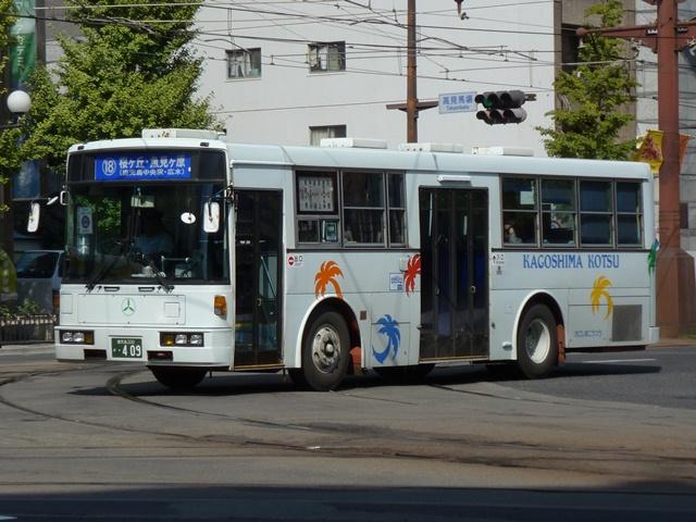 10月に見たバス画像のよせ集め「鹿児島で見たバス2011」。 今回は良くも悪くも話題に事欠かないこと、いわさきグループの筆頭バス事業者である 鹿児島交通の移籍車画像を並べていきます。 型式・年式は「いわさきグループ・バス事業 所有車両全データ」『バスマガジン53号』 (2012),講談社ビーシー/講談社 を参照しました(※2012.12.3追記)。 近年は鹿児島市営バスに対して敵意むき出しというか、正直「どうかしている」感のある いわさきグループ。鹿児島交通の一部の車両にはご覧のように、「官より民です」 とアピールしています。 側面は頑張ることを決意表明。わざわざフォントサイズを小さくしてアピールしている 「赤字補填はありません」のフレーズが「どうかしている」感をアップ。バス事業は頑張 ってほしいと思いますが、鹿児島市内の一部で繰り広げられている不毛な競合を見る と正直複雑な気分になります。こんな時代もあったねとなれば良いのですが、はたして どうなることやら。 さて、鹿児島交通の移籍車はここ数年で台数が激増しています。今回のその1では、 鹿児島200か805までの車両を並べていきます。 鹿児島200か409.U-LV324K(91年車)。