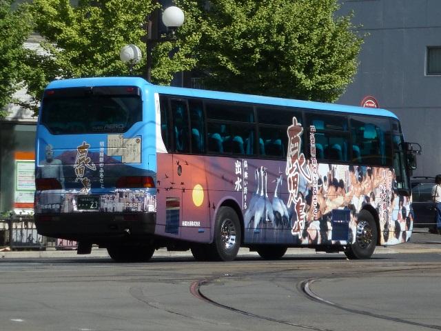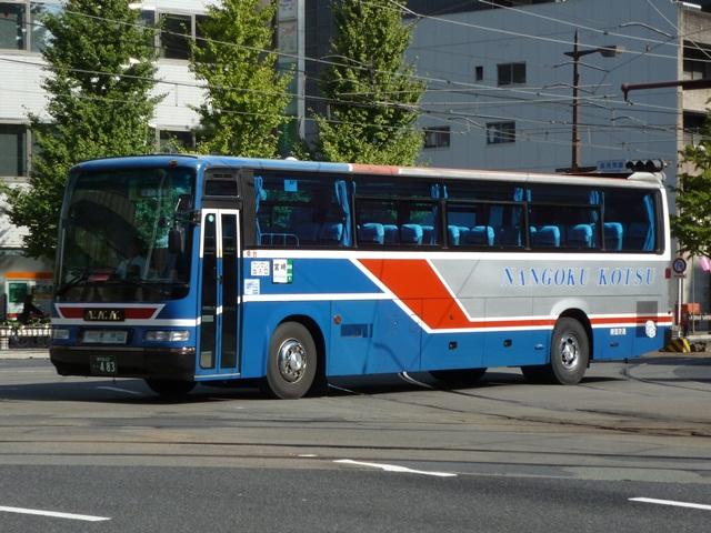 内・阿久根・大口へも運行中。これらの路線には中型専用車を使用しているとの事。いず れは記録したいものです。 <高速車> 鹿児島22き483.U-RU2FTAB(91年車)。 南国交通は福岡・宮崎・長崎・熊本といった九州内路線のほか、大阪への県外高速路 線を運行しています。塗装は鹿児島空港連絡バスと共通で、「NANGOKU KOTSU」 の表記が相違点。 まずは宮崎への「はまゆう号」で運用している古参のセレガFD仕様。4列シートの高速 車は鹿児島空港連絡バスからの転用車が中心となっています。 鹿児島22き668.U-LV771R(93年車)。 こちらも「はまゆう号」で運用していた後期顔のスーパークルーザー。もちろん鹿児島空 港連絡バスからの転用車です。「はまゆう号」は宮崎交通と共同運行。 鹿児島22き916.KC-MS829P(97年車)。 三菱ふそうの高速車はリヤ側しか記録出来ませんでした。 鹿児島200か500.KL-RU1FSEA(05年車)。 3列シートのスーパーハイデッカー、セレガRのGD仕様。型式を参照したバスラマによれ ば、登場時は鹿児島と大阪を結ぶ「さつま号」を中心に活躍していたとのこと。この日は長 崎への「ランタン号」の運用に入っていました。「ランタン号」は長崎県営バスと共同運行で 九州内発着の高速バスですが、「SUNQパス」が使用出来ない数少ない路線の1つ。 鹿児島200か1086. 鹿児島と熊本を結ぶ「きりしま号」で運用中のセレガFS。スイング扉など南国交通らしか らぬ仕様は移籍車だから。正面の「N.K.K」プレートが無いこともいまいち感を倍増。 いつも以上に微妙な画像で失礼します。 「きりしま号」は九州新幹線の部分開通により廃止されましたが、2008年に九州産交バ スによる単独試行運行期間を経て復活。2009年の本格運行再開から南国交通といわさ きバスネットワークが加わり、3社による共同運行路線となっています。 PR