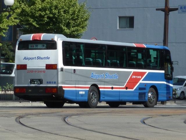 「鹿児島で見たバス2011」と題したバス画像のよせ集め。 今回はいわさきグループとは対称的に、鹿児島市営バスと協調路線をとる南国交通の 鹿児島空港連絡バス専用車と高速車の画像を並べていきます。 なお、型式・年式は「南国交通 在籍車両一覧」『バスラマインターナショナル94号』 (2006),ぽると出版 を参照しました。 <空港連絡バス専用車> 鹿児島200か23.KC-MS829P(99年車)。 鹿児島市中心部から鹿児島空港への空港連絡バスは南国交通といわさきバスネットワー クの2社によって運行しています。まずは鹿児島をPRしたラッピング車となっている三菱ふ そうMS。リヤ側の画像のみで失礼。 鹿児島200か60.KC-LV781R1(00年車)。 エアポートシャトルの標準塗装がこちら。南国交通の空港連絡バス専用車は折戸で、側面 第1・第5窓が固定窓という仕様を採用しています。まずは西工C-ⅠボディのLV。 鹿児島200か160.KL-LV781R2(01年車)。 同じく西工C-ⅠボディのLVですが、こちらはKL規制車。 鹿児島200か197.KL-RU4FSEA(02年車)。 空港連絡バスは3メーカー在籍しています。セレガRのFD、02年導入車から側面行先 表示をサボから方向幕に変更。 鹿児島200か476.KL-LV774R2(05年車)。 純正ボディのガーラ。鹿児島空港連絡バス専用車は台数の割りに車種・車体のバリエ ーション豊富です。 鹿児島200か581. 鹿児島空港連絡バスにはコンスタントに新車を導入しており、新型セレガも早々に登場。 直結冷房がデフォとなったことから、窓上にも「AIRPORT SHUTTLE N.K.K」表記を 追加。なかなか良いアクセントとなっています。 鹿児島200か1139. LKG規制車の現行セレガも在籍。行先表示がとうとうLEDとなりました。
