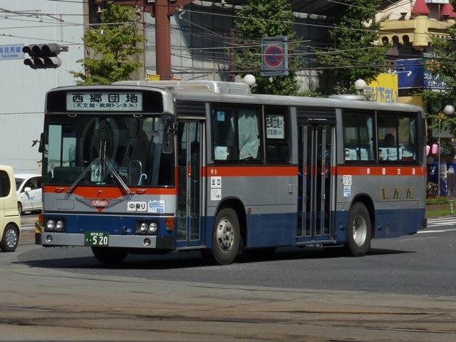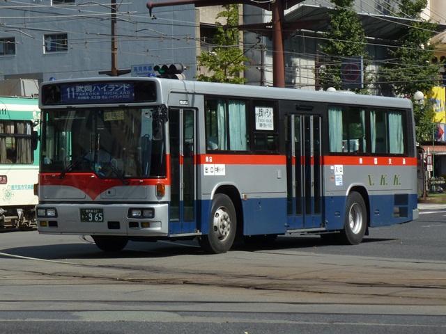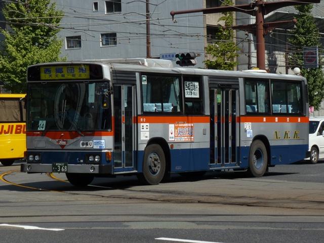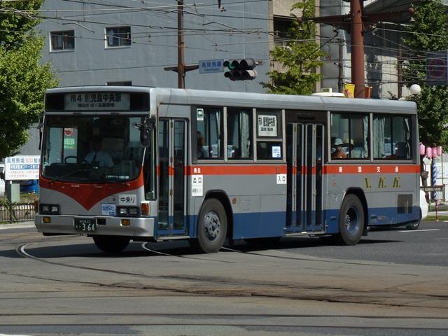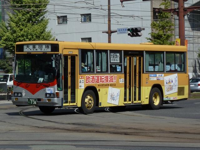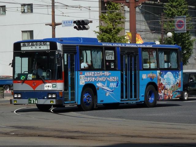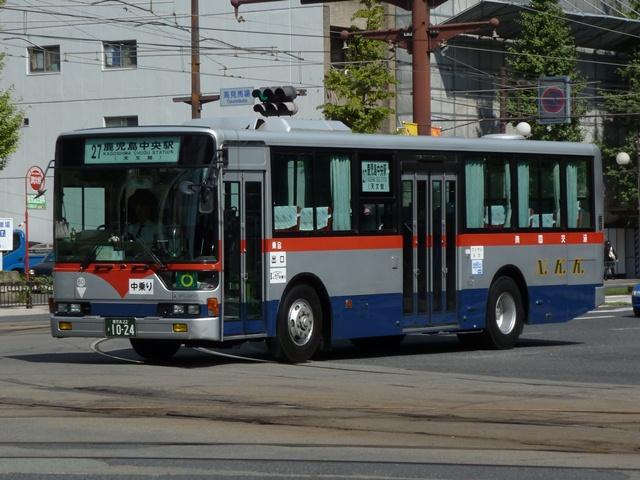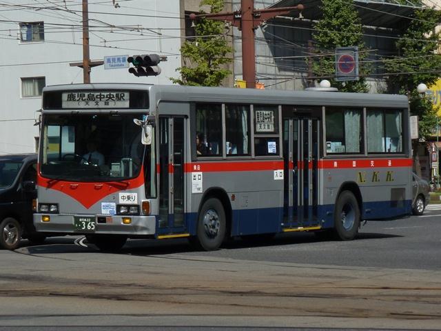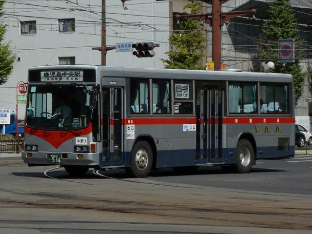 られませんでした。新車&移籍車導入で代替が進んでいるのでしょう。 鹿児島22き368.U-HU2MMAA(90年車)。 90年に導入した日野車はP規制時代と変わらず、標準エンジンを搭載しています。 鹿児島22き516.U-LV218M改(92年車)。 92年導入のキュービック。90年導入車と変わらず高出力車となっています。 鹿児島22き520.U-HU3KMAA改(92年車)。 日野車も92年から高出力エンジンを導入しています。 鹿児島22き736.U-LV218M改(94年車)。 ラッピング広告車も在籍。この車両は正面行先表示周りまでラッピングしています。 鹿児島22き740.U-HU3KMAA改(94年車)。 日野の94年車。 鹿児島22き791.U-LV218M改(95年車)。 一部の行先は正面のみカラー方向幕となっています。 鹿児島22き874.KC-HU3KMCA(96年車)。 96年導入車からKC規制車となり、ヘッドライトが角目となりました。屋根上機器もしっか りラッピングしているだけに、正面行先表示周りが目立ちます。96年はキュービックも導 入していますが見られませんでした。 鹿児島22き919.KC-HU3KMCA(97年車)。 車両導入に変化が見られた97年。まずはこれまで同様の日野車。 鹿児島22き964.KC-MP717M(97年車)。 97年サプライズその1、南国交通では久々の導入となった三菱ふそう一般乗合車。 仕様は当然ながら他メーカー車と同様。 鹿児島22き965.KC-LV280N(97年車)。 97年サプライズその2、いすゞ車は西工96MCボディで導入。南国交通のバンパー塗 装は銀一色が標準、それを踏まえるとこうなりました。しかしながら銀色フロントバンパー はどうやらこの車両だけのようです。 鹿児島22き967.KC-LV280N(97年車)。 こちらはフロントバンパーを青色に塗った車両。かつては銀+青の2色塗りもあったよう ですが、結局西工ボディはこの塗り方で導入することになった模様。 鹿児島22き1024.KC-MP717M(99年車)。 99年導入の三菱ふそうMP。南国交通はごく最近から行先表示に系統番号表示を開始。 LED車の表示はもちろん、一部の方向幕車もご覧のように幕の交換を行っています。 鹿児島22き1025.KC-HU3KMCA(99年車)。 見たところ新しめの車両が系統番号付方向幕を取り付けている模様。どのあたりの車 両まで交換していくのか気になるところです。 鹿児島22き1027.KC-LV280N(99年車)。 引き続き導入された西工ボディのLV。西工ボディは移籍車で増えていくことになると予想 出来ませんでした。 PR
