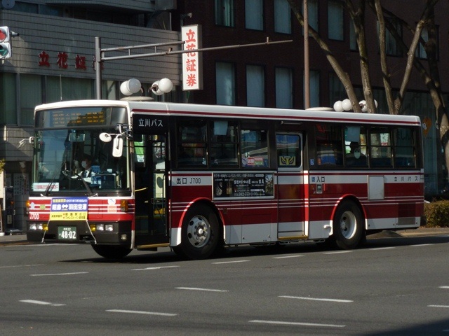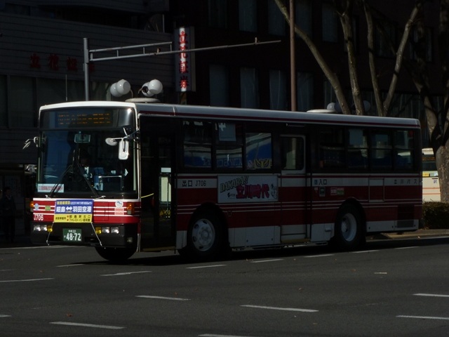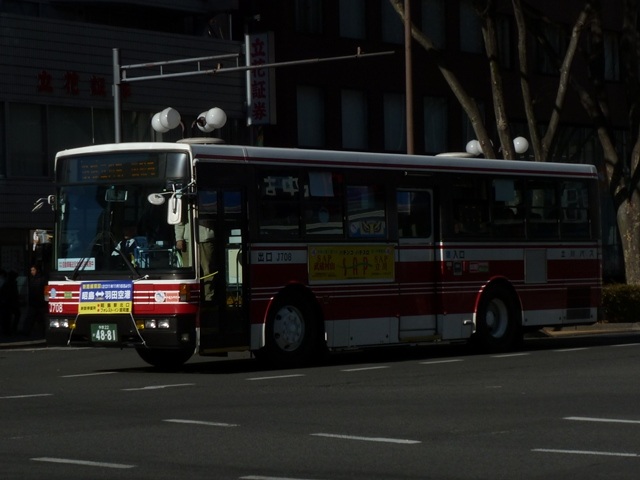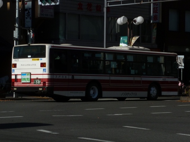 立川競輪場は開催日(場外販売含)に立川駅と玉川上水駅から無料送迎バスを運行 しています。立川バスが運行を担当しており、開催日は上水・瑞穂・拝島(シティバス立 川)各営業所から主に古参格の車両が集結します。 2012年の実質最初の更新は、立川競輪場無料バス(立川駅発着運用のみ)の車両を 記録する小生的定点観察シリーズ。定点といいながら毎回記録地点が異なっているのが 小生的と名付ける所以。当初は何気なく記録していましたが、2009年からブログ更新の ためルーチンワーク的に毎年12月に出かけるという本末転倒な企画です。今回は2011 年編と題し、2011年12月下旬に記録出来た運用車両を並べていきます。 12月に記録した画像を年明けに更新するサイクルも恒例となりました。 なお、型式・年式は『BJハンドブックシリーズR65 小田急バス・立川バス』(2008),BJ エディターズ を参照しました。 <三菱ふそう車> 社番:M925.KL-MP37JK(02年車)。 社番:M926.KL-MP37JK(02年車)。 まずは三菱ふそう車から並べていきます。社番頭アルファベット「M」は三菱ふそう車が 多く在籍する瑞穂営業所。瑞穂営業所含め、三菱ふそうのツーステップ大型乗合車は 2011年に代替完了。2010年の運用にも入っていたKL規制のノンステップ車が本格 的に運用の中心となったようです。ちなみに立川バスのKL規制初期ノンステップ車は 中扉グライドスライド仕様で導入していますが、競輪送迎バスには中扉引戸仕様車が 選ばれている様です。 社番:C979. 社番頭「C」は拝島営業所を担当する分離子会社シティバス立川籍の車両。在籍車両の 関係から、2010年同様AAノンステップ車が運用に入っています。 競輪送迎バスの三菱ふそう車といえば、忘れてならない貸切登録のMPワンステップ車。 この日は玉川上水駅発着の運用に入っていたようで記録できませんでした。 <いすゞ車> 社番:J700.KC-LV380L(96年車)。 続いていすゞ車。社番頭「J」は上水営業所。上水営業所はノンステップ車の運行が難し い国立駅北口発着路線を担当することから、一部のLVツーステップ車にNOx・PM低 減装置を取り付けています。競輪場送迎バスでも多客時に詰め込みが利くツーステッ プ車の特長をいかんなく発揮しています。 社番:J706.KC-LV280L(96年車)。 立川バスはKC規制車時にエアサスの乗合車を少数導入。こちらも低減装置を取り付け て、板バネ車と特に区別することなく運用に入っています。 社番:J708.KC-LV380L(97年車)。 97年車も低減装置を装着しています。 低減装置を取り付けて車検を継続取得しているツーステップ車ですが、2011年にワンス テップ車導入で引退している車両も出てきている状況。いつまで見ることが出来るのか微 妙になってきました。 2010年編に比べると、記録出来た車種が少なく物足りない結果となりました。まさに小生 の2011年を象徴するパッとしなさです。 PR