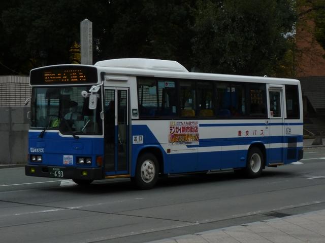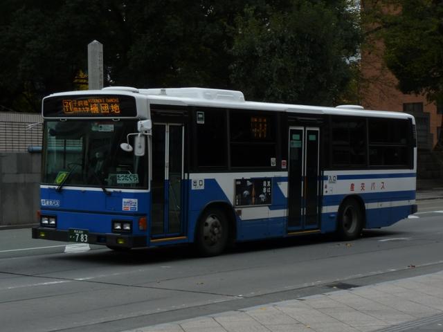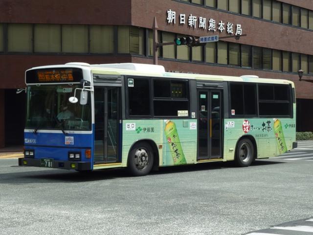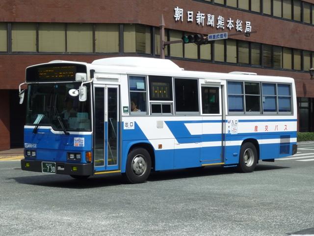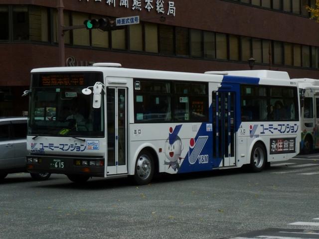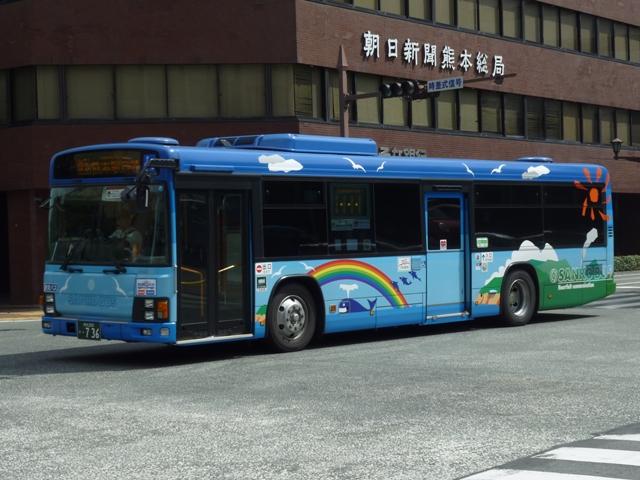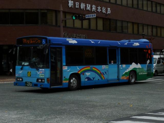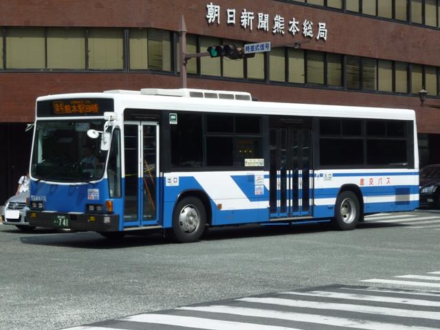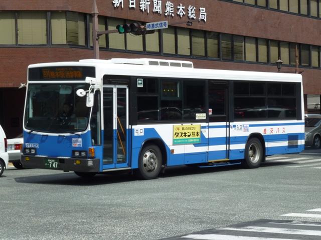 2011年数回訪れた熊本で記録したバス画像のよせ集め「熊本で見たバス2011」。 今回は2011年4月に微妙な更新でお茶を濁した九州産交グループの車両をもう一度 並べなおしていきます。その1では記録出来た熊本200か600~700番台の一般乗 合車をまとめていきます。 なお、九州産交バス所属車と地域子会社を統合した産交バス所属車が混在しているこ とをあらかじめ御理解・御了承のほど宜しくお願いします。 熊本200か608.9月に記録。 バブル期以降の経営危機から、路線車の新車導入が抑えられた末期の九州産業交通。 産業再生機構による支援を経てHIS傘下となった現在、移籍車導入など急ピッチで車両 代替を進めています。まずは京浜急行バスグループからの日野ワンステップ移籍車。 全国から引く手あまたの大人気移籍車種ということもあり、県内他社にも在籍しています。 熊本200か615.12月に記録。 水間鉄道で養護学校向け特定車だったというJP移籍車。熊本でもおなじみユーミーマ ンションのラッピング広告車となっています。 熊本200か650.12月に記録。 少数ながら一般乗合車にも新車導入しています。まずはいすゞエルガノンステップ車。 熊本200か653.12月に記録。 日野車はHR10.5mサイズを導入。ノンステップ車はご覧のようにイラストを多用した カラーとなっています。 熊本200か660.12月に記録。 京浜急行バスグループから中型移籍車が登場。いすゞLRのツーステップ車。 側面のLED行先表示取り付けに苦労の跡。 熊本200か693.12月に記録。 こちらは南海バス?それとも水間鉄道?な、日野中型移籍車。 熊本200か712.9月に記録。 京浜急行バスグループからのワンステップ移籍車。富士ボディのいすゞLV。 熊本200か718.9月に記録。 京浜急行バスグループと並び、近年大人気の横浜市交通局スロープ付きワンステップ 移籍車も導入。第一陣として登場した西工ボディのJP。 熊本200か730.9月に記録。 こちらは横浜のお隣、川崎市交通局からの日野RJツーステップ移籍車。 熊本200か736.9月に記録。 自社発注の新車、いすゞエルガノンステップ車。 熊本200か741.9月に記録。 新車に混じって移籍車も。京浜急行バスグループから中扉4枚折戸仕様のいすゞLVキュ ービックワンステップ車。 熊本200か746.12月に記録。 日野車はおなじみな感じのHR10.5m。 熊本200か747.9月に記録。 京浜急行バスグループからの移籍車。こちらは中扉引戸仕様。 熊本200か781.9月に記録 横浜市交通局からの日野移籍車ですが、リフト付きの異端車を2台まとめて導入。 後部ナンバープレートの取り付け位置も特徴のひとつ。 熊本200か783.12月に記録。 せっかくなのでもう1台。ラッピング車となっていないこの1台だけを並べれば済むのです が、ピンボケだしリヤ画像は記録出来ず。 PR