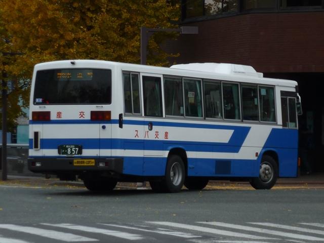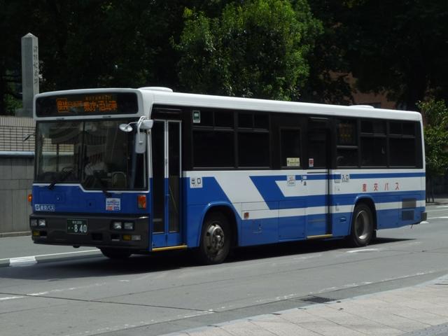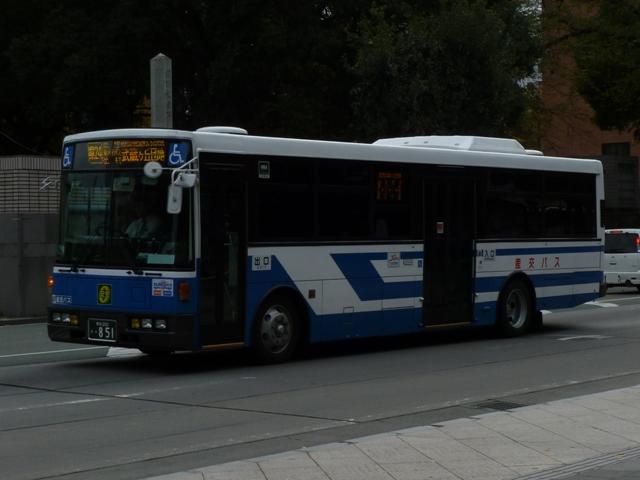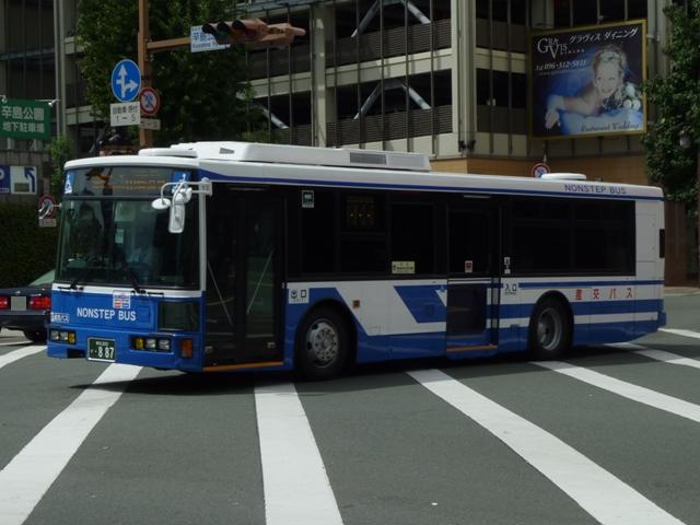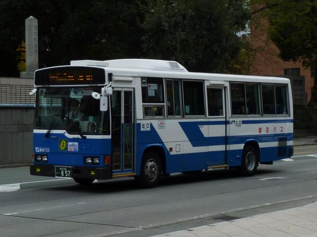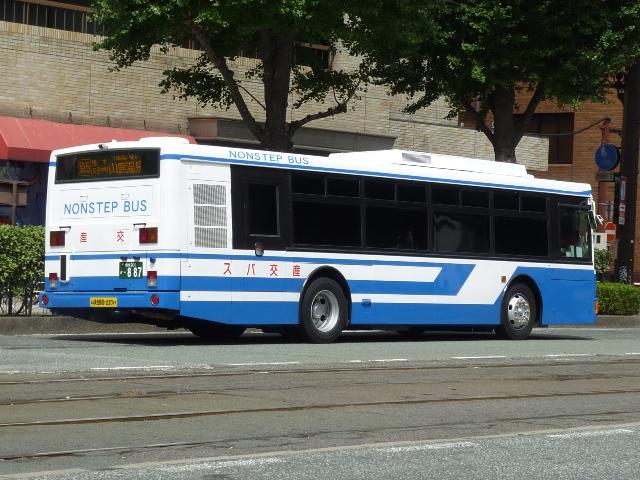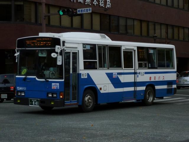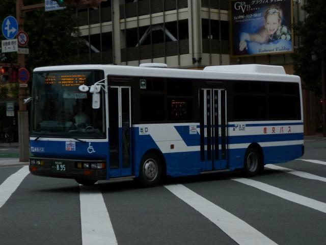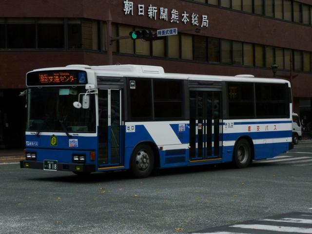 2011年に数回訪れた熊本で記録したバス画像のよせ集め「熊本で見たバス2011」。 前回に引き続き、記録出来た熊本200か800番台の九州産交グループの一般乗合車 両を並べていきます。 なお、九州産交バス所属車と地域子会社を統合した産交バス所属車が混在しているこ とをあらかじめ御理解・御了承のほど宜しくお願いします。 熊本200か818.12月に記録。 JP・リフト付きHUに続き登場した横浜市交通局からの移籍車。北海道を中心に人気の 日野HUスロープ付きワンステップ車。 熊本200か831.9月に記録。 そしてキュービックボディのいすゞLVスロープ付きワンステップ車。この車両は右側面 のみラッピングとなっていました。産交グループのHPによれば、右側面の広告料は扉 側に比べるとリーズナブルな設定となっているようです。 熊本200か840.9月に記録。 関西地方ではかなり早い段階で前中扉ワンステップ仕様を全面採用した高槻市営バス。 前後扉仕様時代の国内移籍事例は限られまくしたが、前中扉ワンステップ車が廃車にな ると一躍引く手あまたの大人気移籍車供給事業者に変貌。人気に敏感な熊本県内事業 者が放っておくはずもなく、画像の九州産交バスグループのほか熊本電鉄も導入してい ます。 熊本200か841.12月に記録。 急に人気が上がった移籍車供給事業者といえば、名古屋市交通局も外せない存在。 九州産交グループでは日野中型車をまとまった台数導入。改造業者の違いか側面行先 表示取り付け方法にバリエーションが見られます。この車両は行先表示器下の開閉ガラ スも移すなど手間のかかった改造をしています。 熊本200か851.12月に記録。 西東京バスからJP移籍車。西東京バスのJPも地味に全国各地へ移籍しました。 熊本200か854.9月に記録。 名古屋市交通局からの日野中型移籍車。こちらの側面行先表示は単に取り付けただけ のお手軽タイプ。 熊本200か857.12月に記録。 リヤ側を記録出来た車両も並べておきます。 熊本200か887.9月に記録。 さらにはこんな移籍車も導入。フルフラット&AT仕様のUAノンステップバスで、西武バス からの移籍車。さらに、これまでノンステップバスは水色をベースにしたカラフルでファンシ ーなデザインから一変し、一般塗装で登場しています。移籍車だからなのか、今後統一さ れていくのか気になるところ。 熊本200か895.12月に記録。 西工スペースランナー顔のRMワンステップ移籍車。こちらは水間鉄道からの移籍車で しょうか。 PR