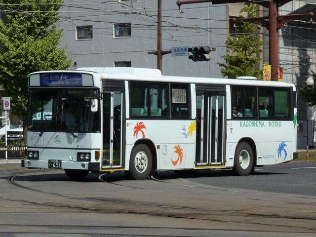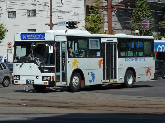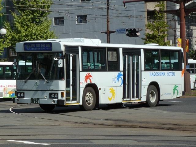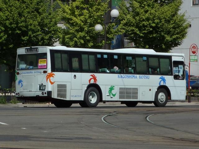 そろそろシリーズを完結させたい2011年10月に記録したバス画像のよせ集め、「鹿児 島で見たバス2011」。 今回はいわさきグループの筆頭バス事業者である鹿児島交通の自社発注一般乗合車 で記録出来たP・U規制車を並べていきます。 なお、型式・年式は「鹿児島交通 在籍車両一覧」『バスラマインターナショナル65号』 (2001),ぽると出版 を参照しました。 鹿児島22き258.P-HU235BA(90年車)。 中扉4枚折戸に側面全引違窓にエアサスというのが鹿児島交通の標準仕様。 ここ数年の移籍車導入で数を減らしているP規制車。まずは日野のP規制車。 鹿児島22き260.P-MP618M改(90年車)。 丸型フォグランプのエアロスターM。 鹿児島22き262.P-LV214M改(90年車)。