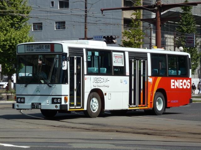 鹿児島22き447.U-MP618M改(91年車)。 ここからU規制車、と言っても外観から大きな仕様差は見られず。 鹿児島22き564.U-UA510LAN(92年車)。 長距離路線を中心に活躍するV8エンジン搭載の富士ボディトップドア車。 側面に大きなヤシの木を配置した塗装は、現行1つ前のデザイン。カラーは画像の緑色の 他に黄色などいくつかの種類があるようです。 鹿児島22き1002.U-RR3HJAA(92年車)。 トップドア車といえばこんな車両も鹿児島市内まで顔を出す模様。JR九州のバス路線を 譲渡した際に引き継いだ車両とのこと。 鹿児島22き638.U-MP618M(93年車)。 93年導入のエアロスターM。型式を参照したバスラマによると、93年車には型式に「改」 がつかないようです。 鹿児島22き651.U-HU2MMAA(93年車)。 ちなみに日野車は元々「改」がついていません。 鹿児島22き655.U-UA440LAN(93年車)。 前中扉仕様の富士7Eボディも登場しています。 鹿児島22き711.U-MP618M改(94年車)。 94年導入車の型式には「改」。どこをいじくっているんでしょうか。 鹿児島22き717.U-HU2MMAA(94年車)。 こうして並べてみると、鹿児島市内では三菱車と日野車が多い感。逆にローカル部はい すゞの中型車がメインとなっており、ディーラーとの付き合いに配慮した導入を行ってい たようです。 鹿児島22き718.U-HU2MMAA(94年車)。 いわさきグループのラッピングバスといえばグループ企業ばかりの印象ですが、なかに は見慣れた大手企業のロゴを背負った車両も。と言っても、ENEOSはいわさきグルー プで経営しているガソリンスタンドの主要ブランドだったり・・・。結局グループ関係のラッピ ングです。 鹿児島22き794.U-UA440LAN(95年車)。 西工ボディのUA。ラッピングの「文化邑」はいわさきグループのギフトショップ、このほか 「いわさきポイントカード」の広告もあり、掲示板の感覚。 PR