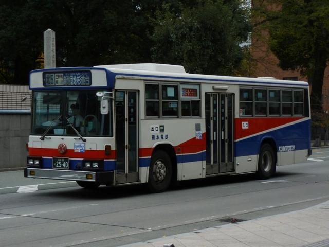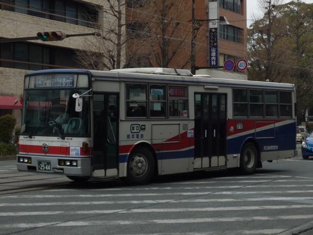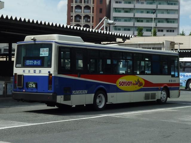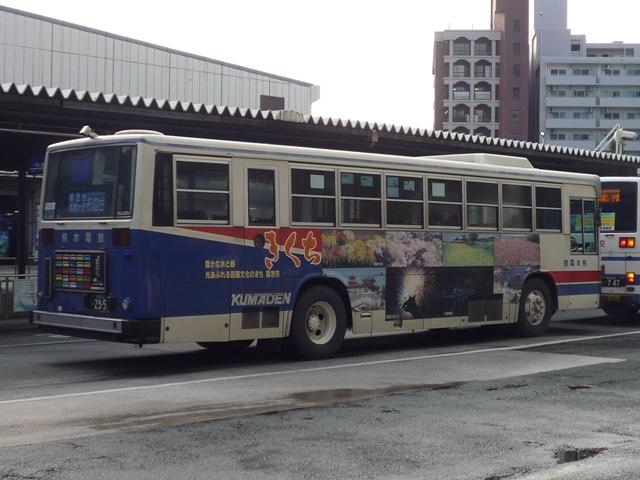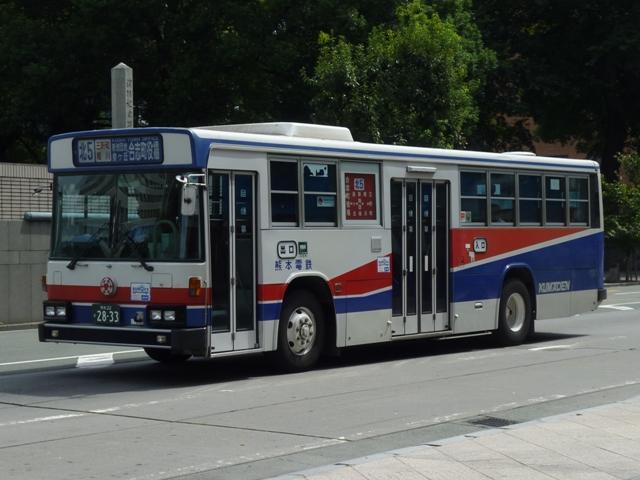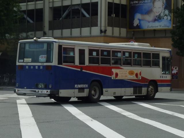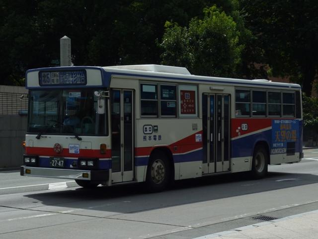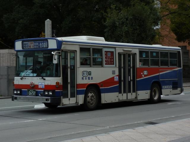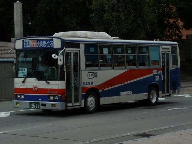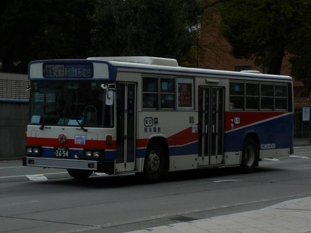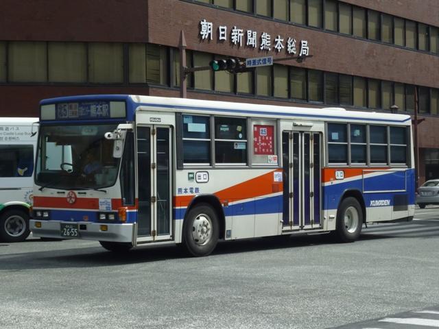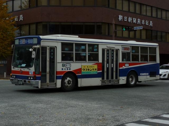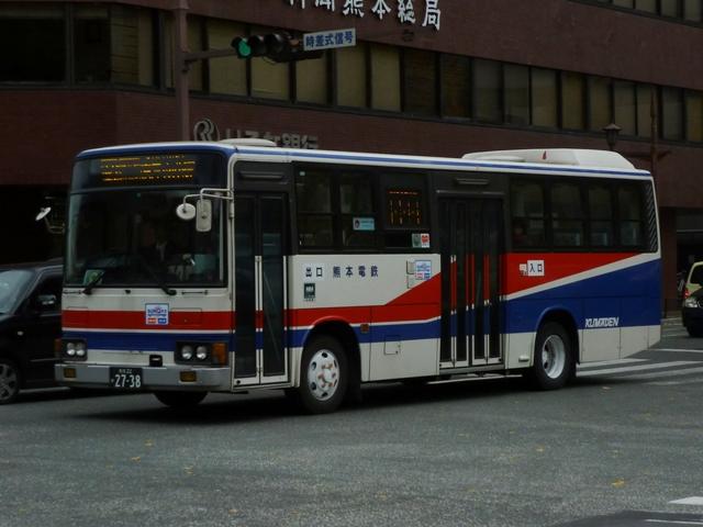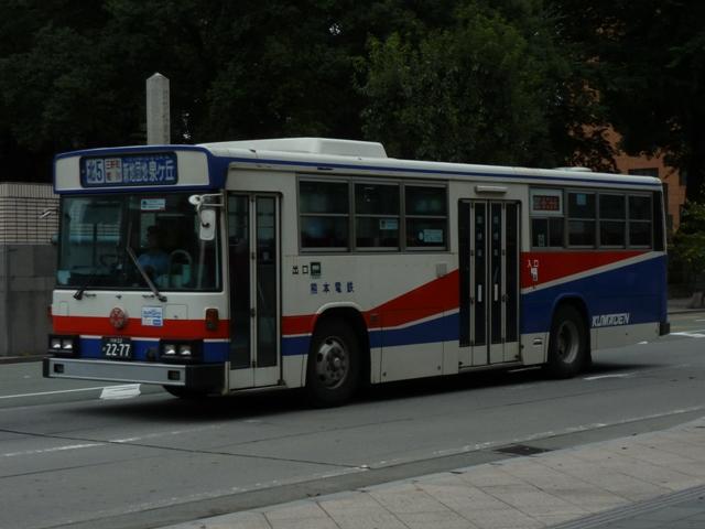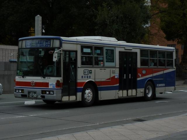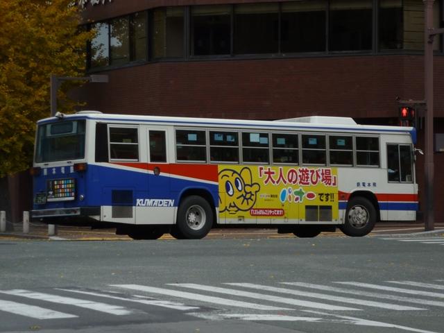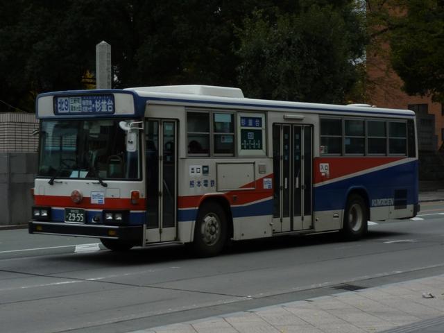 2011年数回訪れた熊本で記録したバス画像のよせ集め「熊本で見たバス2011」。 今回は2009年以来のよせ集めとなる熊本電気鉄道編です。その1では記録出来た 熊本22か2000番台の一般乗合車を並べていきます。 熊本22か2155.12月に記録。 ブレブレ画像で申し訳ないのですが、記録出来た最古参ナンバーがこの車両なもので。 さて、熊本電気鉄道は九州産交バスグループと同様移籍車導入を行い、車両代替が進 んでいます。P規制車もまだまだ在籍していますが、中扉後に側面行先表示がある車両 は確実に代替されている感。まずはキュービックボディのいすゞLV。 熊本22か2277.12月に記録。 台数にばらつきはあるものの、4メーカー導入している熊本電気鉄道。自社発注車は西工 ボディのみ導入していた車種もあることから多数在籍しています。リヤ側を記録できないと、 同じ車両ばかりに見えてしまいます。 熊本22か2404.6月に記録。 P規制車末期頃の導入車から側面行先表示位置が中扉前に移動しました。 西工ボディが多数派ながら、富士ボディのUD車も在籍しています。 熊本22か2540.12月に記録。 リヤの出っ張りから三菱ふそう車と分かる西工ボディのMP。なお、この頃導入した三菱 ふそうの一般乗合車は西工ボディのみ。 熊本22か2544.4月に記録。 富士ボディのUA。 熊本22か2654.10月に記録。 西工ボディの日野車。このあたりの導入の車両から側面行先表示サイズが拡大。行先 表示に関しては、この後も様々な試行錯誤が行われることになります。 熊本22か2655.9月に記録。 いすゞ車は西工ボディとキュービックボディの両方を導入。キュービックは少数派です。 熊本22か2657.9月に記録。 こちらは西工ボディのいすゞLV。クーラーの仕様などボディで差異が見られます。 熊本22か2738.12月に記録。 三菱ふそうのMK。中型車は菊地周辺などのローカル部を中心に運用していますが、 熊本市営バスから一部狭隘区間のある高平団地線を移譲したことで熊本交通センター 近辺でも見かける機会が多くなりました。熊本電気鉄道らしからぬ仕様ですが、JR九州 が撤退する路線を引き継いだ際にあわせて転籍した車両のため。 熊本22か2747.9月に記録。 西工ボディのいすゞLV。リヤガラスに「ISUZU]ロゴシールが貼られていますが、車種 判別に苦しむ小生的には他メーカーの車両に貼っておいてほしいものです。 熊本22か2750.12月に記録。 富士ボディのUD車。運転席側側面は缶コーヒーでおなじみジョージアのラッピングと なっていますが、結構前のロゴデザインのまま。 熊本22か2753.4月に記録。 同時期導入の三菱ふそうMP。 熊本22か2831.10月に記録。 自社発注の中型車は前後扉仕様となっています。ブレ画像で失礼。 熊本22か2833. 西工ボディの三菱ふそう車。フロントバンパーを黒く塗った西工58MCはこの時期に 採用した特徴的な仕様。 熊本22か2946.9月に記録。 リヤ画像だけですがJPワンステップ車。 熊本22か2955.上:12月、下:6月に記録。 95年導入車から行先表示を大きく仕様変更。正面はこれまでと同様ですが、側面は経 由地だけでなく行先を別表示、後面は特大サイズの系統幕と行先表示幕を設置しました。 西工ボディの後面は3分割ガラス仕様のため、無理矢理な配置が特徴となっています。 ただ、見たところ後面の系統幕に関しては、壊れているのか使用していない車両が多く 残念なところ。 PR