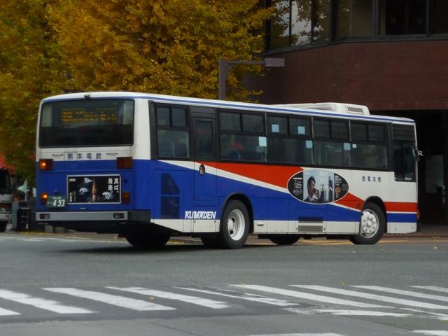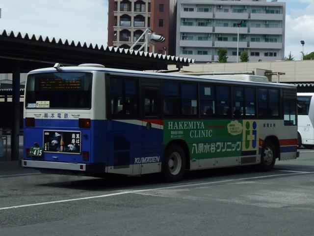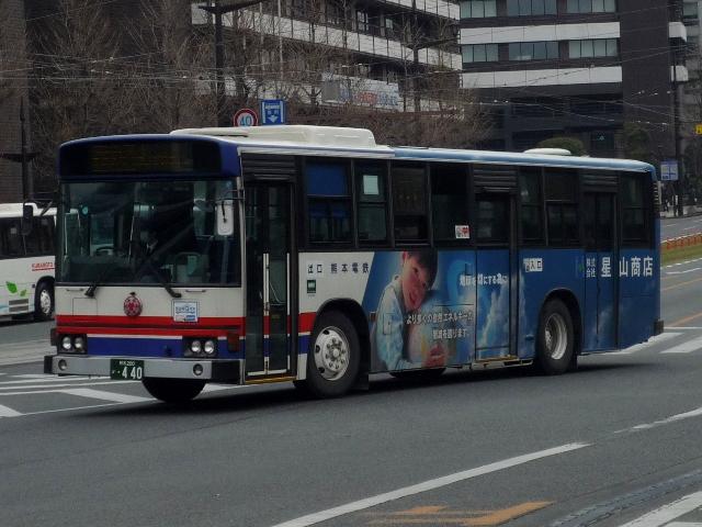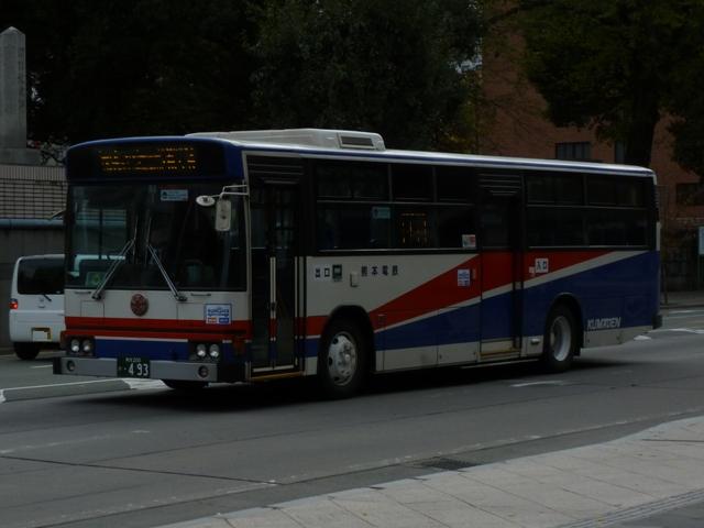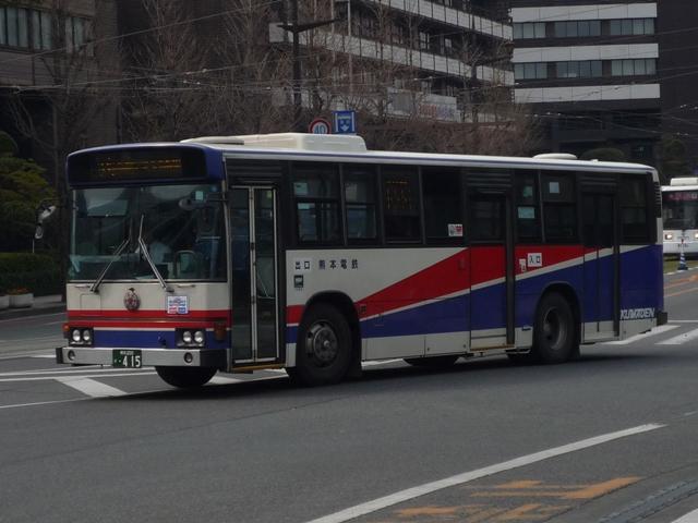 2011年数回訪れた熊本で記録したバス画像のよせ集め「熊本で見たバス2011」。 熊本電気鉄道編最終回となるその4では、記録出来た熊本200か400番台以降の一 般乗合車を並べていきます。 熊本200か415.2011年4月に記録。 近年移籍車導入を積極的に行っている熊本電気鉄道ですが、時たま変わった車両が やってくることも。東武バスから3扉のHT、名古屋市交通局MP移籍車以来の3扉車 です。 熊本200か440.2011年4月に記録。