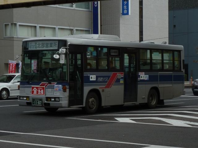 更新するネタがないと書き続けている拙ブログですが、実は新ネタをストックしていたり。 2月半ば過ぎに、長崎県佐世保へ出かけてきました。更新しなかったのは、時間の無さ とモチベーションが上がらないこともあるのですが。 訪問日はまさかの雪。福岡では数年ぶりの積雪により、都市高速が通行止めとなるなど 大混乱。まさか長崎で雪に降られるとは、さすがだな小生。 ということで、記録した画像はブレブレでいつも以上のへっぽこ画像となっていることを、 あらかじめお詫びいたします。そんな雪に見舞われた「佐世保で見たバス2012」、今回 は記録出来た西肥自動車のUD車を並べていきます。 社番:N741. 初っ端から佐世保で記録した画像ではないのですが、長崎空港への特急バスで運用され ていた富士R3ボディ。行先表示は車内に大型のLED表示機を取り付け、ヘッドライト間の 行灯は埋められています。まだまだこの手の古参車が空港特急バスで活躍しているのを 見ると、安心してしまうのは偏屈なマニアだけでしょう。小生のイメージする古参リムジンバ スといえば、伊予鉄日野ブルーリボンの松山空港、三菱ふそう初代エアロバスの福島空港、 たいがいの車両が古いけど手入れが極上な宮崎空港、そして佐世保への西肥自動車でし ょうかって、かなりどうでもよいことです。 社番:N775. 当時の西肥自動車一般乗合車は前中扉折戸仕様となっています。2009年に記録でき なかった富士6EボディのRM中型車ですが、まだまだ活躍している模様。 社番:N778. ボディがモデルチェンジし、7Eボディとなった大型乗合車。多分UA33だと思うのですが、 UA440かもしれません。 社番:N814. 富士8EボディのRM中型車。このあたりの車両になると、出入口表示が「乗口」「降口」 に変更されています。日本語的に正しそうな表示ですが、全国的に見れば少数派。 社番:N820. 銀色だったフロントバンパーは黒色標準に変更。富士ボディだけでなく、西工96MCボ ディも同様に変更されていますが、今回の訪問で他メーカーを含め西工96MCボディ を記録できず。 PR