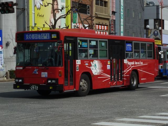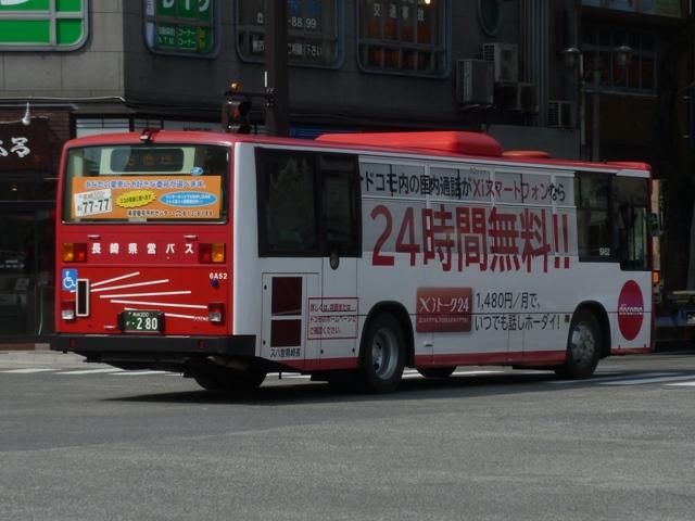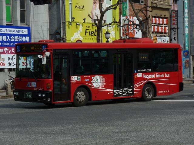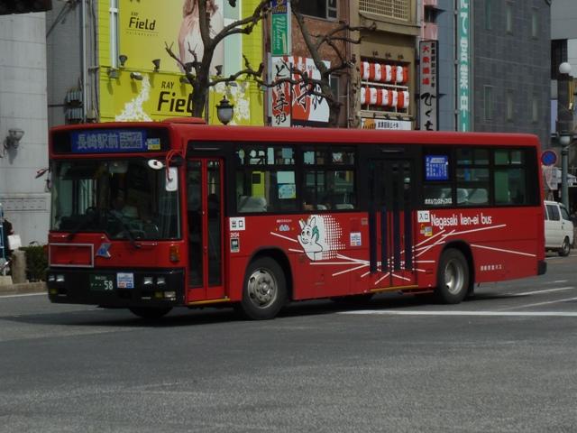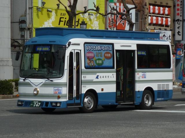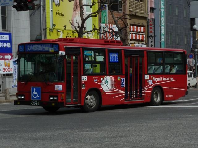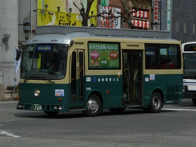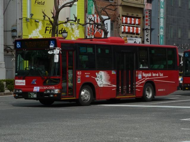 小生としては2009年以来となる長崎訪問の際に記録したバス画像のよせ集め「長崎で 見たバス2012」。今回はポポルでおなじみの長崎県営バスこと「長崎県交通局」の記録 出来たUD車・日野車を並べていきます。 なお、型式・年式は「バス会社潜入レポート 長崎県交通局 所有車両全データ」『バスマ ガジン48号』(2011),講談社ビーシー/講談社 を参照しました。 <UD車> 車号:2K53.KC-UA460LAN改(00年車)。 長崎県交通局の一般路線車はロンドンバスをモチーフにした真っ赤な塗装となっています。 長らく三菱ふそう車と日野車をメインに導入してきましたが、社会情勢の変化もあり本格的 な入札制度を車両導入にも適用。このあたりの年式からUDやいすゞといったメーカーの車 両が入り始めました。まずはUD車、2000年に5台登場した西工ボディのワンステップ車。 車号:2K54.KC-UA460LAN改(00年車)。 せっかくなのでもう1台並べておきます。前中扉間に貼られているのは「ポポル」という、 長崎県交通局のマスコットキャラクターです。長崎県営バス公式HPによれば、「ポポ ルとは「POP」「PORTER」「LUCKY」から県営バスのマスコットとしてふさわしい親し みのあるの、「幸せを運ぶ運搬人」という意味 」とのこと。 車号:0M51.PDG-RM820GAN(08年車)。 中型車はおもに諫早や大村に配置されていますが、画像のRMは長崎営業所にも配置 され市内路線で活躍中。三菱ふそうのエンジンを搭載したUD最終中型車モデル。 <日野車> 車号:8A19.KC-HU2MMCA(96年車)。 続いて日野車。純正ボディと並行して西工ボディも採用。当時は前後扉仕様を標準とし ており、前中扉仕様車は少数派でした。 車号:9A11.KC-HU2MMCA(97年車)。 97年に長崎県内初のワンステップ車として画像の日野車と三菱ふそう車を1台づつ導入。 正面の車いすマーク看板がポイントです。なお、この仰々しい車いす看板を取り付けている のはこの年導入した2台のみ。律儀に取り付けているところが良い感じです。 車号:0A18.KC-HU2MMCA(98年車)。 ワンステップ車はまだまだイレギュラー的存在で、基本はツーステップ車を導入。 車号:6A52.KL-HU2PMEA(04年車)。 ブルーリボンシティのワンステップ車。入札による車両導入となり、先ほど並べた98年車 以来の導入となった日野車です。ブルーリボンシティの導入はこの年だけで、現在のとこ ろ画像の車両を含め4台のみ。 車号:7C53. 2011年12月より運行を開始した「ながさきお買い物バス」用に登場したリエッセ改造車。 元は2011年3月まで長崎自動車で運行していた「長崎都心部循環線らんらん」専用車。 導入にあたり窓周りの装飾などは取り外されていますが、そこかしこに名残が見られます。 塗装は1980年代頃まで採用されていた長崎県交通局の旧塗装で、マニア対策もばっち りです。画像の車両はかつての長距離路線車デザイン。 車号:7C55. こちらは一般乗合車のデザイン。この渋い塗装を新たに見られるとは思いもよらず。 PR