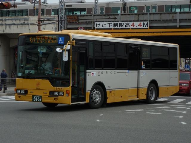 いくつかの公営バス事業者が姿を消した2012年3月。兵庫県の明石市交通部は3月 16日とひとあし早く運行を終了し、路線は神姫バスと山陽バスに移譲されました。 移譲後どうなったのか気になっていたところ、たまたま近畿地方へ出かけることになり これ幸いと明石にも足を延ばしました。 ということで、今回は路線移譲後の3月末に明石駅前周辺で記録したバス画像のよせ 集めです。 <神姫バス> 社番:5680.PKG-MP35UM(10年車)。 まずは明石~朝霧区域の一部をはじめ、明石市交通部が最後まで運行していた大部分 の路線を引き継いだ神姫バス。神姫バスが画像の明石駅ガードを直進する光景に新鮮 さを感じました。 社番:5470.PKG-AA274MAN(08年車)。 逆方向からもまた同じ。 社番:7471.PKG-KV234N2(09年車)。 1つ目KVのワンステップ車。明舞団地方面は市営バス時代と変わらず、概ね10分毎の 高頻度運行となっています。 社番:32270. 明石市営バスからの路線移譲とあわせ、新規路線の開設も行われました。新規路線の ひとつである85系統東朝霧丘循環はポンチョによる運行。リヤ側画像のみで失礼。 社番:29378.KK-HR1JKEE(03年車)。 明石市営バスからの移譲路線と全く関係ありませんが、姫路市営バスからの日野HR 引継車を記録出来たので並べておきます。 なお、型式・年式は『BJハンドブックシリーズR76 神姫バス』(2012),BJエディターズ を参照しました。 <山陽バス> 社番:2641. 山陽バスは朝霧駅発着路線を中心に、明石~朝霧区域の一部路線を移譲。明石駅前で この塗装を見ることになろうとは予想出来ず。もっとも前身の山陽電気鉄道直営時代には 明石駅前を発着する路線を運行していたので、厳密には復活ということになるのですが。 社番:2643. 明石市営バスの明舞線のうち、明舞センター北経由朝霧駅行の60系統は山陽バスに移 譲されました。 山陽電気鉄道から分社化されてからまだ間もないこともあり、社名表記は画像のように上 から貼っただけ感全開な車両を多く見かけました。 社番:5217 I. 路線移譲にあわせて、山陽バスでも新車を導入しています。画像の三菱ふそう車もその 1台です。それにしても近年の新車に追加された社番末尾のアルファベットは何を意味す るのでしょうか。 明石市営バスの路線移譲は両社とも新車導入などで対応していることが分かりました。 てっきり、社名表記のみシールか何かで対応した車両が運行していると思っていただけ に意外。では、元明石市営バスの車両はどうなったのか?気になり、和坂の旧市営バス 車庫へ移動。