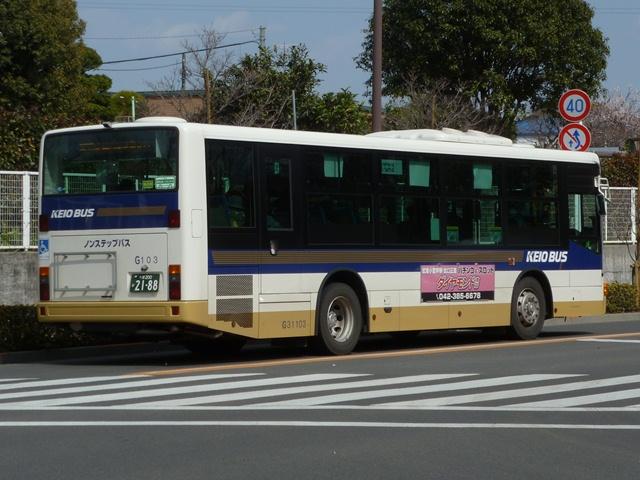 武蔵小金井駅周辺の路線を担当する京王バス小金井。 社番:G40550.KL-252NAN(05年車)。 キュービックなどのツーステップ車が代替されてから、JPノンステップ車ばかりという陣容 となっていました。2010年頃にUAノンステップ車(フルフラット含)が転籍してきたあたり から風向きが変わったらしく、久々に大型の新車が配属されたという話を耳にしました。 はたしてどんな新車なのか?花見もかねて先日武蔵小金井駅へ出かけました。今回は 2010年以来となる、記録出来た京王バス小金井のバス画像よせ集めです。 なお、型式・年式は『BJハンドブックシリーズR62 京王電鉄バス・西東京バス』(2007), BJエディターズを参照しました。 社番:G31205. ということで、京王バス小金井の新顔となる三菱ふそうMPノンステップ車。京王電鉄バス カラーのMPノンステップLKG規制車は初登場でしょうか。2011年に導入した京王バス 塗装車同様、中扉より後ろの側面窓下は黒色塗装となっています。それにしても、分離子 会社ながら京王電鉄バスカラーを採用しているところがさすが京王バス小金井、複雑な諸 事情が絡んでいると邪推してしまいます。