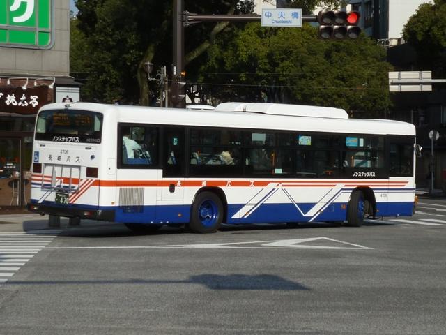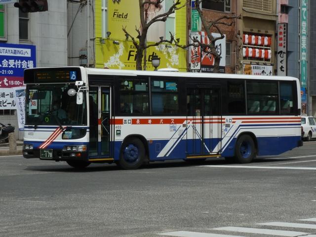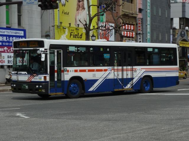 「長崎で見たバス2012」と題したバス画像のよせ集め。前回に引き続いての長崎自動 車編です。今回は記録出来た2000年以降導入の日野車を並べていきます。 なお、型式・年式等は「長崎自動車グループ 在籍車両一覧」『バスラマインターナショナル 89号』(2005),ぽると出版 と、『バスラマインターナショナル』各号掲載の「ノンステップ バス採用実績」を参照しました。 社番:4009.KC-HU3KPCA改(00年車)。
