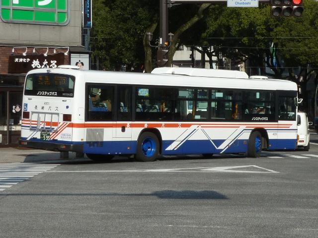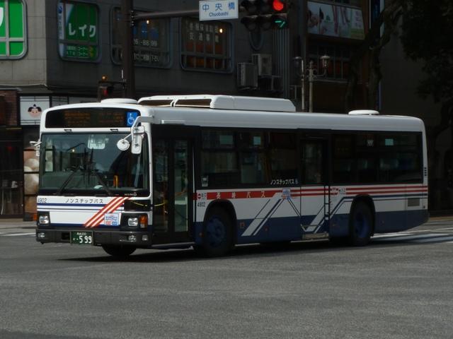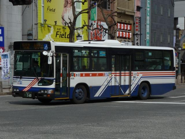 開始しました。塗装はこれまでの銀色ベースから、白色ベースに「N」をあしらった結構 複雑な細帯デザインとなっています。画像は西工ボディのP尺ワンステップ車で、中扉 4枚折戸仕様となっています。 ちなみに2000年には、当時運行していた急行バスカラーのツーステップ車も導入して います。こちらも記録したいのですが、どこで運用されているのか分からず。 社番:4103.KL-HU2PMEA(01年車)。 01年導入車からKL規制車となり、モデルチェンジしたブルーリボンシティのワンステッ プ車が登場。まずはM尺のワンステップ車。 社番:4106.KL-HU2PREA改(01年車)。 同時に長尺のR尺(モデルチェンジによりWBが変更)ワンステップ車も導入。 画像の車両はJRAの場外馬券場のラッピング広告車となっています。 社番:4208.KL-HU2PMEA(02年車)。 リヤ側を記録出来たブルーリボンシティはこの車両だけ。1日で同じ車両の両サイドを記 録出来るほど甘くないことを実感。 社番:4506. 05年導入のブルーリボンシティワンステップ車。 社番:4706.PJ-KV234N1(07年車)。 ノンステップバスは車高をアップさせるなどの独自改良を行い、2006年から本格導入を 開始しました。画像はいすゞ車と外観からの見分けが困難なPJ規制車の日野ブルーリボ ンⅡノンステップ。そこそこの台数が在籍しているはずですが、記録できたのはリヤ側画 像だけと消化不良な結果。 社番:4902.PKG-KV234N2(09年車)。 社番:4901.PKG-KV234N2(09年車)。 1つ目ヘッドライトとなったPKG規制車。前後で車両が異なり失礼。 社番:3001.PKG-KV234N2(10年車)。 2010年導入車。それにしてもこのボディばかりです。 社番:9453. 社番:9455. 続いて、社番の頭数字が「9」から始まる中型・小型車を並べていきます。といっても記録 できたのはリエッセのみですが。画像の小判ナンバーのリエッセは二本松団地と元船町・ ココウォーク茂里町を結ぶマイクロバス路線「うみかぜ」専用車です。コミュニティバスにも 見えますが、れっきとした自主運行路線です。 社番:9492. リヤ側を記録出来た車両も並べておきます。「うみかぜ」はおおむね30分毎の運行と なっています。 PR