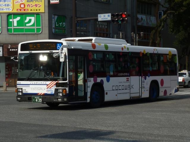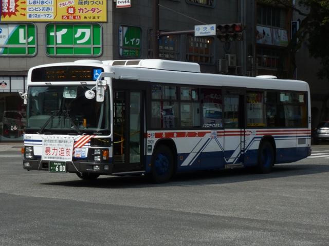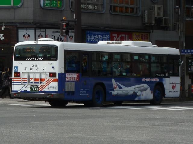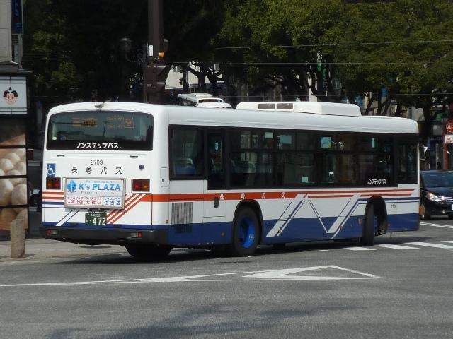 「長崎で見たバス2012」と題したバス画像のよせ集めシリーズもようやく一区切り。 今回は記録出来たKK・KL規制車以降ののいすゞ一般乗合車を並べていきます。 なお、型式・年式等は「長崎自動車グループ 在籍車両一覧」『バスラマインターナショナル 89号』(2005),ぽると出版 と、『バスラマインターナショナル』各号掲載の「ノンステップ バス採用実績」を参照しました。 社番:2102.KK-LR233J1改(01年車)。 長崎自動車では少数派の中型車。中型車は路線限定で運用しており、画像のエルガミオ ワンステップ車は立山線をメインとしています。 社番:2112.KL-LV280N1(01年車)。 つづいて大型車、モデルチェンジしたエルガが初登場。中扉4枚折戸仕様のワンステップ 車で、視野確認窓をオプション採用しています。 この車両はゼクセル(サーモキング)クーラーを搭載しています。 社番:2105.KL-LV280N1(01年車)。 リヤ側の画像のみですが、こちらはデンソークーラーを装備。 見ることは出来ませんでしたが、純正ボディだけでなく引き続き西工ボディも少数ですが 並行導入しています。 社番:2517. 03~04年にかけての新車導入はほとんどなく、まとまった台数が登場したのは05年 となってから。画像の車両はサーモキングクーラーを搭載したワンステップ車。 社番:2530. こちらはデンソーエアコンを搭載。 なお、西工ボディのいすゞ車導入は05年以降行っていないことから、エルガばかり。趣味 的な面白さは少なくなった感。 社番:2522. 2011年に長崎自動車創立75周年を記念したダンロップのラッピング広告車。側面に 歴代の長崎自動車の車両が描かれています。リヤ側の画像のみで失礼。 社番:2535. こちらも05年導入車ですが、サーモキングクーラーの屋根上機器が現行タイプのもの となっています。 社番:2605.PJ-LV234N1(06年車)。 06年から本格導入を開始したノンステップ車。引き続きデンソークーラーとサーモキン グを並行導入しています。まずはデンソークーラーを搭載した車両。 社番:2610.PJ-LV234N1(06年車)。 こちらはサーモキングクーラーを搭載したエルガノンステップ車。 社番:2709.PJ-LV234N1(07年車)。 以後ノンステップ車の増備が続きます。07年導入車。 社番:2803.PKG-LV234N2(08年車)。 PKG規制車となった08年導入車。この車両は運転席側のみラッピング広告車となって います。 社番:2909. 09年導入のノンステップ車。ツーステップ車時代はL尺・N尺を導入していましたが、ノン ステップ車は今のところN尺のみの導入となっています。 社番:1002.