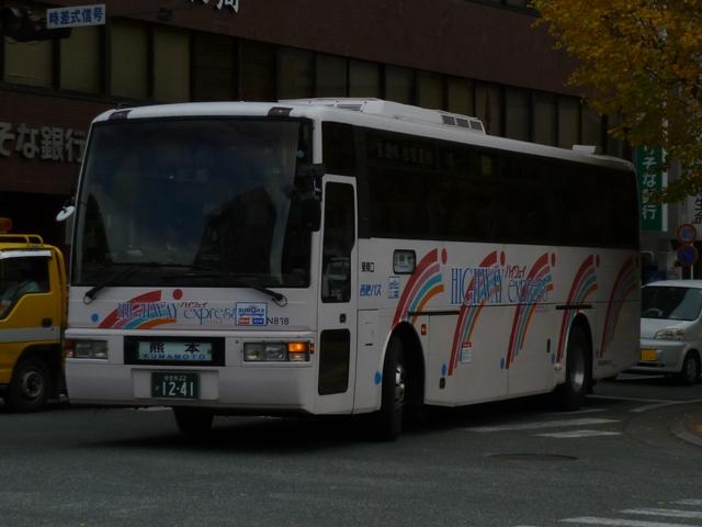「熊本で見たバス2012」と題したバス画像のよせ集めシリーズ。今回は熊本交通セン ターを発着する県外事業者の高速車を並べていきます。その1は2011年編で並べた 事業者の補遺的更新で、新たに記録出来たもの・記録し直したものを中心に並べてい くという更新回数稼ぎ内容となっています。 <いわさきバスネットワーク> 鹿児島200か878. 鹿児島200か879. 九州産交・南国交通・いわさきバスネットワークの3事業者が共同運行している熊本と鹿 児島を結ぶ「きりしま号」。新幹線開業で一度廃止された路線ですが、2008年の試行運 行開始から順調に推移し2012年4月23日から6→8往復へ増便となりました。 まずは2011年編でも並べた、いわさきバスネットワークの「きりしま号」専用車である現 代ユニバース。 <大分バス> 社番:12768.KL-RU4FSEA(02年車)※。 九州産交と大分バスが共同運行している熊本と大分を結ぶ「やまびこ号」。西工C-Ⅰ ボディのセレガ。ライト周りをモデルチェンジしたタイプも運用に入っているようですが、 タイミングが合わず記録できず。 社番:12844.PKG-RU1ESAA(09年車)※。 現行ボディで折戸仕様のセレガ。2011年編で並べた車両ばかりですが、記録し直した という自己満足ということで御容赦を。 社番:42157.KL-MS86MP(04年車)※。 続いて三菱ふそう車。スイング扉でトランクに仮眠室を装備した夜行運行対応車両。 こんな車両も「やまびこ号」の運用に入るから面白いです。 社番:42169.PJ-MS86JP(07年車)※。 こちらは折戸で、仕様もごく普通の「やまびこ号」らしいPJ規制車。 ※年式・型式は「大分バスグループ在籍車両一覧」『バスラマインターナショナル121号』 (2010),ぽると出版 を参照しました。 <西肥自動車> 社番:F483. 社番:F485. 九州産交と西肥自動車が共同運行している熊本と佐世保を結ぶ「さいかい号」。 2011年編ではN818を並べましたが、どうやら予備車の模様。メインは画像のMSで 運用しています。 <西日本鉄道> 社番:7611. 「ひのくに号」用に登場した2012年度新車のLKG代セレガ。現代ユニバースは今回の 導入は見送られた模様。まだデータ取得中ということなのでしょう。 PR