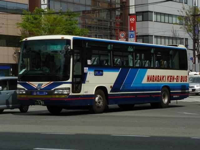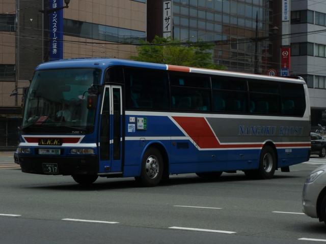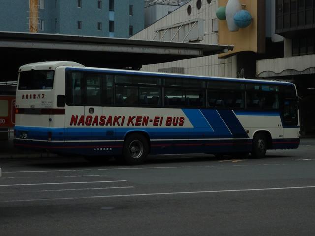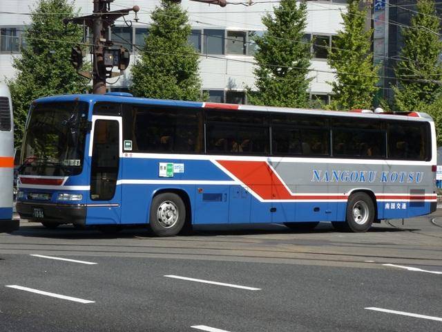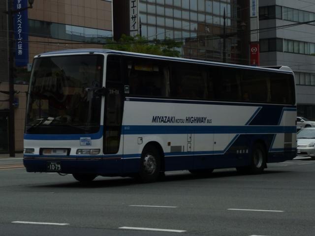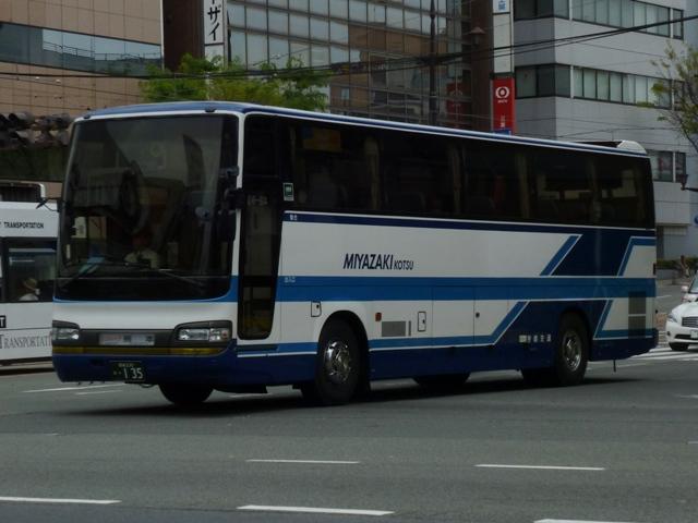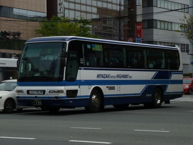 「熊本で見たバス2012」と題したバス画像のよせ集めシリーズ。前回に引き続き熊本 交通センターを発着する県外事業者の高速車を並べていきます。その2では2011年 の更新で並べていなかった事業者の車両となります。 <南国交通> 鹿児島200か917. 九州産交・南国交通・いわさきバスネットワークの3事業者が共同運行している熊本と 鹿児島を結ぶ「きりしま号」。南国交通は画像の三菱ふそうMSや2011年の鹿児島編 で並べた日野セレガなどの移籍車で運用していす。 <長崎県交通局> 車号:4A51.KL-RU4FSEA(02年車)※1。 車号:4A52.KL-RU4FSEA(02年車)※1。 九州産交と長崎県営バスこと長崎県交通局が共同運行している熊本と長崎を結ぶ「りん どう号」。まずは3台在籍するセレガRのFS高速車。現在のところ「りんどう号」専用車と なっており、小生的に記録できる車両はこればかりな感。上下で車両が異なり失礼します。 車号:5E51.KL-MS86MP(03年車)※1。 2012年4月23日より長崎県交通局受け持ち分のうち1往復が3列シート車運行に変更。 これにより3列シートの三菱ふそうMSが運用に入るようになりました。 <宮崎交通> 宮崎22か1079.KC-RU4FSCB(95年車)※1。 宮崎22か1080.KC-RU4FSCB(95年車)※1。 九州産交と宮崎交通が共同運行の熊本と宮崎を結ぶ「なんぷう号」。3列シート車での 運行となっていることから、グレードの高い車両も専用車となっている模様。まずはフロ ント1枚ガラスのスーパーハイデッカーとなるセレガGD。以前も書きましたが、ケチ王エ リア居住者にとって3列シート・スーパーハイデッカーの昼行便は豪華に映ります。 宮崎230あ135.KL-RU1FSEA(03年車)※2。 セレガRのGD。こちらも「なんぷう号」の運用に入るようです。宮崎交通では時おりナン バーを希望番号で登録しています。車両管理のためなのでしょうが詳細は分からず。 宮崎230あ138.KL-MS86MP(03年車)※2。 三菱ふそうエアロバスのハイデッカー高速車。セレガRと同時期の導入ということで、こち らもナンバーを希望番号で登録しています。 宮崎200か193.PJ-MS86JP(05年車)※2。 05年にまとまった台数が登場したPJ規制車のエアロバスハイデッカー。側面窓はこれ までの車両同様固定仕様です。 宮崎200か195.PJ-MS86JP(05年車)※2。 せっかくなのでもう1台。後面にも方向幕の行先表示があります。 宮崎22か904.P-LV719R(90年車)※2。 宮崎交通は「なんぷう号」だけでなく、熊本と延岡を結ぶ特急バスの「あそ号」・「たかちほ号」 も九州産交と共同運行しています。熊本行きが「あそ号」、延岡行きが「たかちほ号」と上下 便で愛称が異なります。高速道路を通行しないので高速車という括りからは外れるのですが、 せっかくの機会ですからあわせて並べます。画像の車両はI Kボディのスーパークルーザー で、貸切転用車です。「あそ号」・「たかちほ号」の運用車両は「なんぷう号」に比べぐっと古く なる印象。 型式・年式は下記の文献を参照しました。 ※1)「バス会社潜入レポート 長崎県交通局 所有車両全データ」『バスマガジン48号』 (2011),講談社ビーシー/講談社 ※2)「宮崎交通所有車両全データ」『バスマガジン16号』(2006),三推社/講談社 PR
