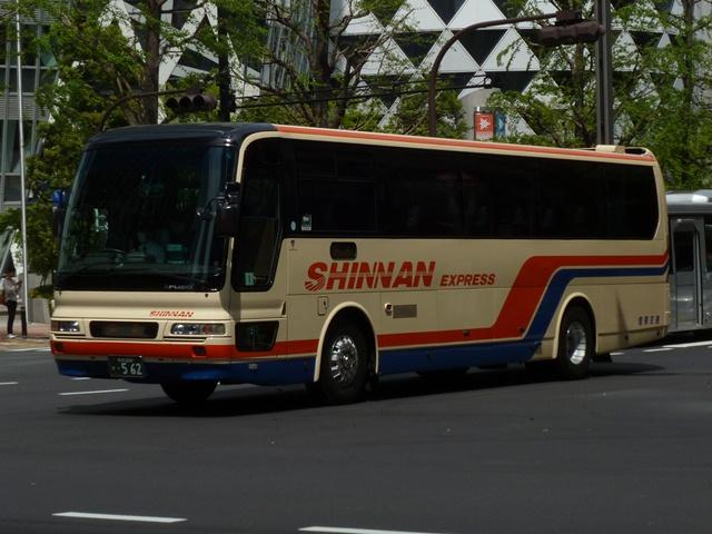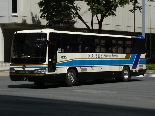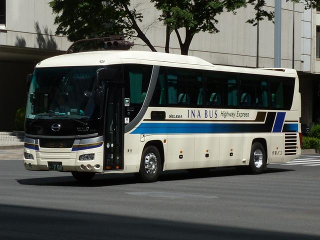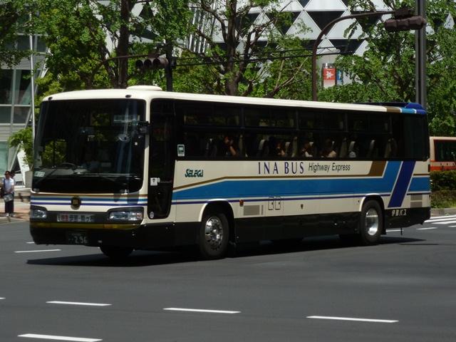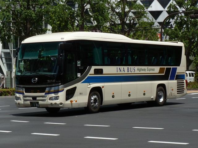 制となりました。登録番号は導入時の「松本200か763」からエアロバスと連番になるよう 変更した模様。 <信南交通> 松本200か359. 信南交通は飯田・駒ヶ根方面の路線に共同運行事業者として参加。高速専用車は側面 窓の一部しか開かない特徴的な仕様を採用しています。日野車も在籍しているのですが、 カメラ片手に新宿へ出かけると見かけるのは三菱ふそう車ばかりです。 松本200か485. このあたりの車両から行先表示がLED仕様となったようです。 松本200か562. PJ規制車のエアロバス。高速車はコンスタントに置き換えているようです。 松本200か737. エアロエースは直結冷房仕様を採用。側面窓はこれまで同様一部しか開閉出来ない仕 様となっています。 松本200か823. LKG規制車のエアロエースも導入しています。 松本22あ1697. 貸切車を使用した続行便の運行もさかんです。貸切車はスーパーハイデッカー中心とい う陣容でグレードの高さを売りにしている模様。松本22あナンバーのエアロクィーンⅡ。 松本200か139. 松本200か483. こちらは松本200かナンバーのエアロクィーンⅡ。公式HPの貸切在籍車両一覧によると、 エアロクィーンⅡは9台※在籍しています。(※2012年5月20日現在、補助席定員違い含) 松本200か797. モデルチェンジしたエアロクィーンも在籍。画像はLKG規制車。アレな画像で失礼。 <伊那バス> 社番:15166.KL-RU4FSEA(03年車)※1。 伊那バスは信南交通と同じく飯田・駒ヶ根路線を担当しています。在籍車両のほとんどが 日野車となっています。まずはセレガRのFS。高速車は一時期FSグレードを導入。 社番:17174.KL-RU4FSEA(05年車)※1。 セレガRの高速車はモデルチェンジ間際の05年まで導入。 社番:21180. 現行セレガボディの高速車は09年車より導入開始。側面窓まで延びたJピラー付きで 折戸仕様というのは、珍しいのではないかと。 社番:23184. 11年導入のLKG規制車。外観はPKG規制車と同じくJピラー+折戸仕様となっています。 登録番号は社番に合わせた希望番号で登録しています。 社番:24186. 12年導入車は窓まで延びていたJピラーをやめスイング扉仕様に変更。他事業者でも在 籍しているような、ごく普通の高速車仕様となりちょっと残念。 社番:14821.KL-RU1FSEA(02年車)※1。 ここから続行便のとして運用に入っていた貸切車を並べていきます。信南交通同様、大 型貸切車はスーパーハイデッカー中心の陣容になっています。まずはセレガRのGJ。 社番:17825.ADG-RU1ESAA(05年車)※1。 新型セレガは販売を開始した05年に導入しています。もちろんスーパーハイデッカーな のは言うまでも無く。なお、新型セレガから塗装デザインを変更し、裾部グレーの省略や 帯色にグラデーションを施すなどするなど従来塗装のイメージをもたせつつ現代風にア レンジしています。 社番:23834.LKG-RU1ESBA(11年車)※2。 LKG規制車のセレガスーパーハイデッカーも在籍。貸切料金単価の下落や需要の変化 によりスーパーハイデッカーの優位性が落ちている状況ですが、今も新車で導入している ところは立派。 <ジェイアールバス関東> 社番:H654-08403.BKG-MS96JP(08年車)※3。 長野県内事業者ではありませんが、中央高速バス諏訪・岡谷線で共同運行している ジェイアールバス関東諏訪支店の車両をここで一緒に並べておきます。新宿新南口 (代々木)に独自のターミナルを持つジェイアールバス関東ですが、運行開始までの経 緯から諏訪・岡谷線は新宿西口発着の中央高速バス陣営に名を連ねています。 主要な大都市間に複数の高速バス路線が運行している現在の状況からすると想像で きませんが、路線免許の取得にも様々な調整・規制が行われていた頃の名残ともいえ ます。 型式・年式は下記の文献を参照しました。 ※1))「伊那バス 在籍車両一覧」『バスラマインターナショナル108号』(2008), ぽると出版 ※2)「2011年度スーパーハイデッカー採用実績」『バスラマインターナショナル131号』 (2012),ぽると出版 ※3)『BJハンドブックシリーズR75 ジェイアールバス関東』(2011),BJエディターズ PR