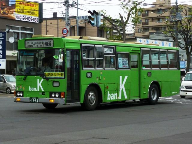 5月に苫小牧・札幌・函館へと出かけた際に記録したバス画像のよせ集め。 札幌ばんけいバス公式HPの新着情報を見ていたところ、真駒内~発寒南線で主に運 用中の日野リエッセの塗装が変わっていることを知りました。そこで新さっぽろへ行く前 に、札幌ばんけいのバスも見に行った次第。目的はリエッセですが、せっかくなので円 山公園からスタートしました。 なお、このエントリは2011年編もあわせてご覧いただくことを推奨致します。 札幌200か2768. まずは円山公園~盤渓線の主力として活躍する、三菱ふそうニューエアロスター長尺ツー ステップ車。2011年に見たときとの違いは、前後面に貼られた「ban.K」ロゴと「ばんけい 3兄弟」くらいでしょうか。 ちなみに「ばんけい3兄弟」とは札幌ばんけいのキャラクターで、名前は左から「きのッ ティ」「どんぐり隊長」「山田くるみ」とのこと。ひらがなカタカナ混じり名だったり、苗字? があったりという謎の兄弟です。※画像の電話番号部は修正しています。 札幌200か1784. 続いて、神奈川中央交通から移籍したエアロスター。屋根色が神奈中のままですが、 それは御愛嬌ということで。ボディは相変わらずサビだらけですが、2011年時と比べる と補修したことが分かります。融雪剤の塩加減が厳しすぎます。なお、「ban.K」ロゴと 「ばんけい3兄弟」は前後面だけでなく側面にも貼られています。 あとはリエッセを見るだけ。ということで移動しましたが・・・ 札幌200か1727. この日の真駒内~発寒南線の運用はもう1台の神奈中移籍車でした。やはり思うようには なりません。ちなみにこの車両は他サイト様の画像を見ると、以前は側面の雨どいから上 が神奈中塗装のままという珍妙な姿で運用していたようです。ボディの補修とあわせて再 塗装が行われたようで、現在はご覧のような屋根色のみ神奈中塗装となっています。 札幌200か876. 貸切車の画像も記録できたので並べておきます。U規制車のニューエアロバスハイデッ カー。2011年に見た車両と同じというのが残念。 PR