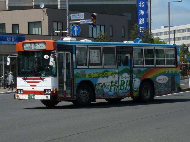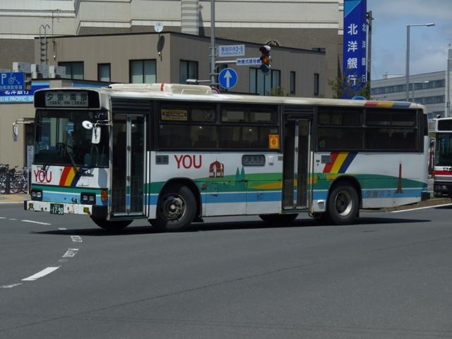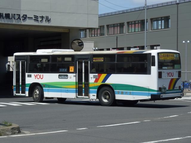 BJエディターズ刊行ハンドブックシリーズの次号が「ジェイ・アール北海道バス」という ことで、画像確保もかねて5月に新さっぽろへ出かけました。 新さっぽろ駅は市内有数のバスターミナルで、ジェイ・アール北海道バスのほか、北海 道中央バスや夕鉄バスも乗り入れています。新さっぽろへは昨年も出かけバスの画像 を何枚か記録しましたが、更新ネタにするには少々枚数不足。バスマガジンの感想め いたもので使用したもの以外はお蔵(HDDの意)入りしていました。今年は不審者扱い 寸前まで粘ったおかげでまとまった枚数の画像を記録出来ました。そこで今回は夕鉄 バスこと夕張鉄道の車両画像を並べていきます。その1は、記録出来た札幌22かナン バーの車両編です。 札幌22か783. 社名の鉄道部門は既に廃止し、旅客事業はバス専業となっている夕張鉄道(以下夕鉄 バスと表記)。社名の通り夕張を中心としたエリアに路線網を展開し、夕張・江別からの 路線が新さっぽろのターミナルを発着しています。 在籍車両は日野車中心で、まずは赤基調の旧塗装車。P規制の大型短尺車。当時の 道内では珍しくない非冷房車です。おそらく最古参格の車両だと思いますが、パーラー ハビンというパチンコ店のラッピング広告車となっていることから、広告契約期間中の廃 車は無いと推測。ちなみに、この車両が記録出来たので更新ネタにしたといっても過言 ではありません。 札幌22か1228. U規制車からカントリーテイスト溢れる現行塗装に変更。仕様も冷房付となり、上部引 違式の逆T字側面窓に角型ヘッドライトと一気にゴージャスな感じになりました。 札幌22か1231.2011年に記録。 同年式車ですが、リヤ側を記録出来たので並べておきます。テールライトはこれまで同 様、観光型ブルーリボン標準の田の字タイプを装備。 札幌22か1790.2011年に記録。 融雪剤の影響からボディはだいぶサビも出ており、年式以上にくたびれて見えます。 札幌22か2400.2011年に記録。 こちらの車両もボディ程度はほぼ同様。このくらいのサビは道内基準からすれば問題ない のかもしれません。 札幌22か2715.2011年に記録。 現行塗装の大型短尺車も在籍。側面窓は上下開閉のサッシ仕様となっています。 PR