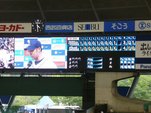 猫屋敷こと西武ドームで埼玉西武ライオンズ対オリックスバファローズ戦を観戦。 シーズン開幕前の下馬評は高かった両チーム。交流戦終わった今、5位と6位の対戦 となっているとは。西武はおかわり中村の不振が誤算、中継ぎと抑えの崩壊は前年同 様なんですが。オリックスはオーナーのどんでん采配批判で空中分解した感。 この日は「らき☆すた」デーということで、声優の方が始球式や3・4回裏のウグイス嬢を していました。このほか限定グッズの販売なども行われ、普段の西武対オリックス戦では 見かけないような方々もちらほらと。アニメファンおそるべしです。 西武先発は牧田。そういえば、神宮のデーゲームも先発していましたね。ローテーショ ンの関係で今のところ日曜日の先発が多い模様。オリックスの球数を投げさせる作戦も あったのかもしれませんが、勝負球が決まらず苦しい内容。それでも6回2失点なんだか らローテーションピッチャーの役割は果たしました。 オリックスの先発は寺原。こちらも点をもっと取られてもおかしくない出来でしたが、 打撃陣が決めきれず。栗山の調子が上がらないことにはどうにも。オーティズはどう なんでしょうか。 そんな試合でしたが、8回裏に大崎の走者一掃となる3点タイムリー2塁打で西武が 逆転。9回抑えの涌井が1点を失いなおピンチの状況でしたが、中島の好守でなんと か逃げ切り勝ち。勝利投手は2番手の十亀で、プロ初勝利をあげました。 大崎のヒーローインタビューを見ていて、キングオブコメディの今野に似ていると思った のは秘密です。 どうでもいいことですが、5回裏か6回裏の攻撃前に行われる謎の応援タイム。 スコアボードでは大声を出そうぜ的に呼びかけ、チアも出てきて盛り上げます。 が、とくに音を出して応援をしている人がいないような・・・。正直もう見てられません。 SAMタイムに続く黒歴史確定です。 PR