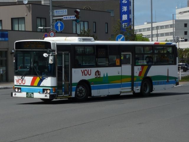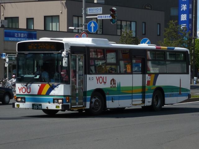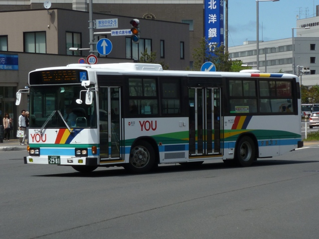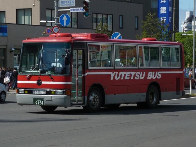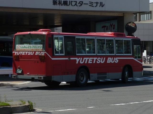 ティも在籍していますが、タイミングが合わず記録できませんでした。 札幌200か1768. 札幌200か1770. 移籍車導入による車両代替も進めており、様々な出自の車両が在籍しています。まず は京浜急行バスグループからの日野ワンステップ移籍車。上の車両は前面行先表示 横の「運賃後払い整理券方式」表記をそのまま活用しています。 札幌200か2035. こちらは川崎鶴見臨港バスからのワンステップ移籍車。京浜急行バス移籍車に比べると 車長が短いL尺車となっています。リヤ側の画像は札幌大通で記録したもの。 札幌200か2981. 道内各社で大人気の横浜市交通局エアサスワンステップ移籍車。夕鉄バスでも導入 しています。 <札幌急行線車両> 札幌200か2197. 続いては夕張と新さっぽろを一般路線とは別ルートで結ぶ札幌急行線の運用車両を並べ ていきます。塗装は貸切車と同様のデザインを採用しています。記録出来た車両は全て 移籍車で、生え抜きの貸切転用車は見られず。観光マスクの大型短尺車という非常に珍 しい仕様の移籍車。このサイズで足りてしまうというのは寂しい限り。 札幌200か2478. リヤ側のみですが、観光マスクの路線シャーシ車。大谷地駅周辺で記録。新さっぽろで 見たバスと題しながら、その他の場所で記録したものもしれっと混ぜるのが拙ブログ。 札幌200か2690.