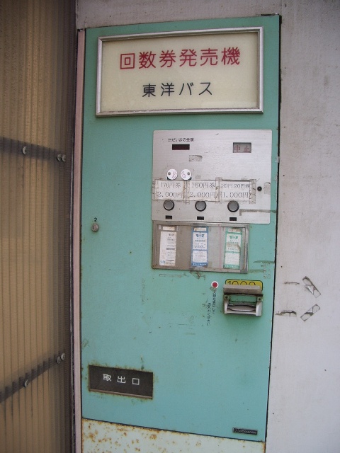 久しぶりの東洋バスネタ。今回は高津団地です。2006年の画像ですのでもしかす ると変わっている可能性があります。その際はご容赦ください。 高津団地バス停は、降車停留所と乗車停留所があります。降車停留所前には休日 営業の定期券発売所も併設した乗務員休憩所があります。 乗車停留所は、販売所の反対側になります。数台の停車スペースのある専用乗場 で、八千代台駅・八千代中央駅とも同じところからの発車になります。 販売所の裏手には、わりと台数の停められるバス駐機場があります。 駐機場はフェンスなどないため、ヘボい腕しかない小生でもバッチリ型式写真を 撮影することが出来ました。 東洋バスは勝田台駅、八千代台駅と主要なターミナル停留所に定期券販売所が あり、紹介した高津団地のほかに米本団地に休日営業の販売所があります。こう いった販売所がほとんど無いバス会社が多いなかで、東洋バスはしっかりした販 売所網を維持していることは特筆すべきことだといえます。あとはバス共通カード が使用できれば・・・と思いますが、それは望みすぎでしょう。 販売所前にある路線図。大和田営業所発の路線が多数存在するので相当前の ものでしょうか。マニアには堪りません。 販売所脇には怪しい回数券販売機が。見ての通り使用中止のようですが。 右側の1000円のセット回数券がものすごい欲しいのですが・・・。 PR