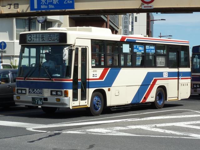 バスに関する書籍を買ったらブログに書くシリーズ、今回は5月に刊行された『BJハン ドブックシリーズR77 茨城交通』です。今さらの更新となったは、夏休みにようやく水戸 へ出かけたというだけの理由です。 水戸200か1102.PKG-LV234N2(10年車)。 さて、本書の内容はこれまで同様、紀行編・歴史編・車両編の3部構成。終点の風景は 「蛇穴(じゃけつ)」です。趣味誌で茨城交通が取り上げられたのは2012年1月刊行のバ スマガジン51号以来となります。かなり短いインターバルでの刊行ですから、掲載車両に 12年導入車とその代替廃車が少々あったくらいで大きな変化はありません。しかし、茨城 交通のみで丸々1冊ですから、ページの都合上やや物足りない内容だったバスマガジンと 比べ、バス黄金時代から経営危機といった波乱万丈な歴史編や車両紹介ではバリエーシ ョン豊かな移籍車をそれぞれ掲載しており読み応えがあります。 画像は茨城交通で久々の自社発注大型車となった、いすゞLVノンステップ車です。 感想はこのくらいにして、以降はいつものように水戸や都内で記録した画像を自己満足的 に並べていきます。今回はいつもにも増してボリュームのある、画像よせ集めとなっており ます。なお、型式・年式は掲載の車両リストを参照しました。 <一般乗合車> 水戸22か1383.P-RM81G(90年車)。 茨城交通の自社発注一般乗合車は大型・中型とも長らく前後扉仕様を採用。まずは富 士6EボディのRM。 水戸22か1471.U-UA440LSN(91年車)。 富士7EボディのUA自社発注車。画像の車両は茨城新聞と地元感あふれるラッピング 広告車となっています。ちなみにフロントの「うしろのり」表示が光りそうな感じですが、 どうなんでしょう。 水戸22か1989.KC-MK219J(96年車)。 茨城交通は4メーカー在籍していますが、台数にバラツキがあります。三菱ふそう車は 他メーカーに比べると少数派。一般乗合車は、96年導入の中型2台・大型2台を最後に 新車導入が行われていません。画像の車両はそのうちの1台。 水戸22か2108.P-U33L(89年車)。 92年から移籍車導入を開始した茨城交通。当時早い年数で代替を行っていた西武バス からの移籍車が導入の中心となりました。一般乗合車の代替は移籍車のみという時期 がしばらく続いたことから、数年前の茨城交通と言えば西武バス移籍車ばかりという印象。 西武バスからの移籍車で一大勢力を誇った富士5EボディのU32グループの代替は完了 し、現在在籍する大型車は富士7EボディのU33以降となっています。 水戸200か36.P-LV314K(88年車)。 茨城交通では残り2台となった富士5Eボディですが、そのうちの1台を記録することが 出来ました。東京都交通局移籍車のいすゞLV。東京都交通局移籍車も西武バス移籍 車につぐ勢力となっていましたが、移籍車としての売却が行われていないことから減る 一方という状況。 水戸200か267.P-RJ172BA(88年車)。 1つ目ヘッドライトの日野レインボーは、茨城交通最古参となる84年車をはじめ、茨城オ ート引継車など複数台が在籍しています。画像の車両は東京都交通局からの移籍車。 水戸200か786.U-LR332J(92年車)。 中型移籍車は弾不足ということもあり、前中扉・前後扉どちらも導入しています。画像の いすゞLRは立川バスからの移籍車。現在全国各地で移籍事例が見られる立川バス移 籍車ですが、当時は大型車・中型車とも前後扉仕様の廃車だったことから、まだ珍しい 存在でした。 水戸200か1017.KC-LV380N(97年車)。 東急バスからN尺キュービック移籍車。近年グループ外への売却事例が見られる東急 バスですが、まさか茨城交通にもやってくるとは思いもよらず。 水戸200か1182.KC-LR333J(98年車)。 茨城交通では近年京成グループからの移籍車も多く、画像のいすゞLRは千葉中央バス からの移籍車。 水戸200か1215.KC-UA460LSN(98年車)。 西武バスからの移籍車導入は現在も続いており、KC規制の3扉車も登場。ちなみにこ の車両は西武バス→西武総合企画の特定車を経て茨城交通入り。 水戸200か1259. 掲載の車両リストは2012年4月1日現在。刊行後しばらく経っていることもあり、既に新 たな移籍車が登場しています。 三菱ふそうのMPノンステップ車が茨城交通に初登場。後部に向かい合わせとなるシー ト配置の初期型モデルで銀サッシ+デンソーエアコン装備という仕様から出自は絞れる かと。 <高速車> 水戸22か1931.KC-LV781R(96年車)。 なんともいえない迫力のあるデザインの旧高速車塗装。まずは、いすゞ純正ボディのスー パークルーザー高速車。茨城交通の高速車は一時期立派なヘッドレストを装備していま した。 水戸200か80.JA530RAN(00年車)。 00年はユーロツアーを3台導入。シート仕様などは簡素化され、コストを抑えた導入と なっていきました。 水戸200か158.KL-RA552RBN(00年車)。 00年はさらに西工S型ボディの高速車も1台導入。コスト削減も、ここまで来ました。 水戸200か216.KL-RA552RBN(01年車)。 翌01年に登場した富士1Mボディの高速車。西工S型ボディ同様、こちらも高速車では 1台のみというレア車。笠間~秋葉原駅間の高