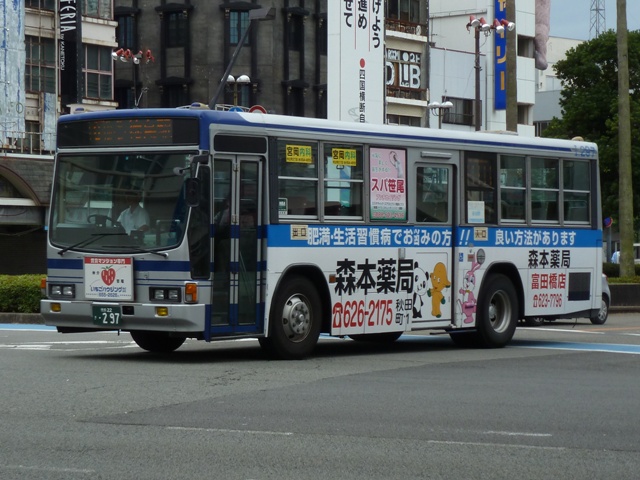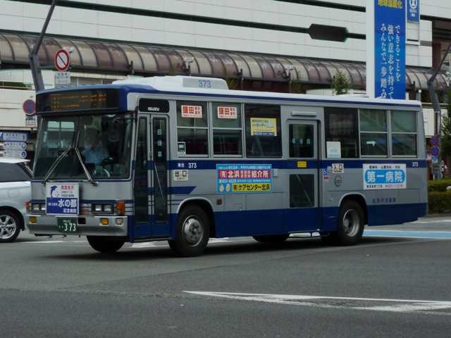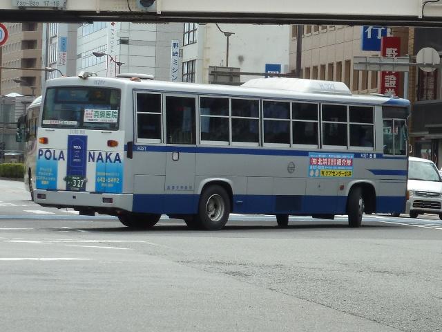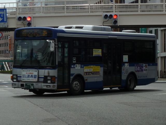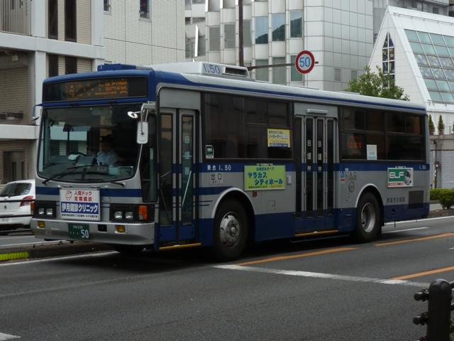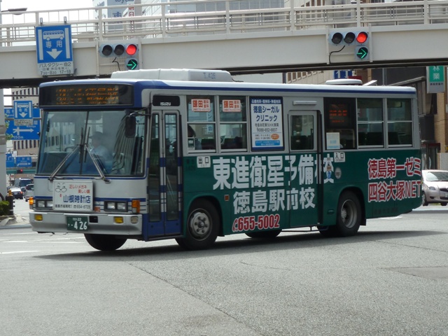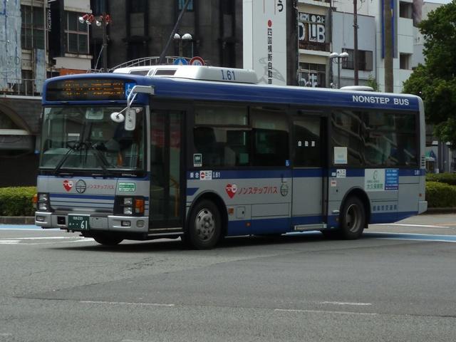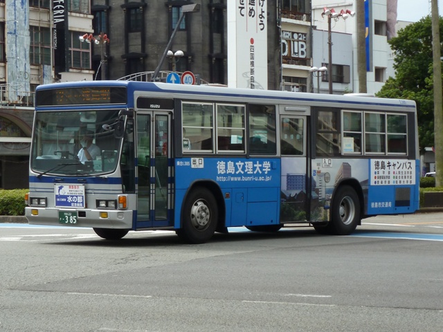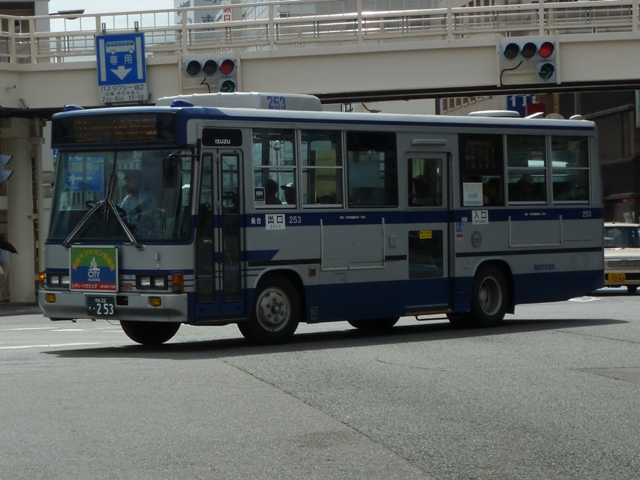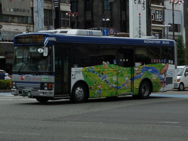 8月に徳島へ出かけた際に記録したバス画像のよせ集め「徳島で見たバス2012」。 今回の徳島市営バス編その2では、循環バス以外の記録出来た車両を並べていきます。 記録場所が徳島駅前ですから、徳島バス編同様に2011年に更新した車両とほぼ同じ ものとなっていることを、あらかじめ御了承願います。 なお、ノンステップバスの型式は『年鑑バスラマ』・『バスラマインターナショナル』各号掲載 の「ノンステップバス導入一覧表」を参照しています。また、年式は判明したものについて のみ記しています。 <UD車> 局番:N.55.KK-RM252GAN改(04年車)。 徳島市交通局の在籍車両はいすゞ車中心で、他メーカーは少数となっています。特に 少数だった三菱ふそう車は、昨年の路線再編で市原~文化の森間シャトルバスが廃 止にともなう専用車廃車で、おそらく在籍無しと推測。 まずはUD車。記録出来たUD車は西工ボディのRMのみで、富士5E・6Eボディの車両 は今回も見られませんでした。 <日野車> 局番:H.327. 記録出来た循環バス以外の日野車は2台のみで、しかも2011年編で並べた車両 と同じ。U規制車の中型車で、前面広告看板・扉側のラッピング・後側ラッピング・運 転席側広告看板と見事にバラバラ。 局番:H.505.KC-HU2PMCE(99年車)。 徳島県内初のノンステップバスとなったブルーリボンノンステップ。初期ATノンステップ車は 自動車NOx・PM法の対策地域外でも引退する事例も出てきていることから、在籍確認とい うことで並べておきます。 <いすゞ車> 局番:I.846. 純正ボディでジャーニーKとして販売していたモデルのいすゞLR。今回記録出来た徳島 市交通局の車両で最古参車だった「徳22か」ナンバーのP規制車。徳島市交通局では このあたりの車両から中扉下部に明り取り窓を装備した仕様に変更した模様。 局番:I.253. 続いてU規制車のいすゞLR。 2011年の訪問で、ジャーニーKはなぜかKC規制車しか記録できず。今回はP・U・KC それぞれを見ることが出来ました。 局番:I.373. マイナーチェンジでボディ側面にあったモールが無くなったKC規制車。 局番:I.426. 同じくKC規制車のLR。徳島にも「東進」系のラッピング広告車が在籍しているんですな。 なお、ワンステップ車のジャーニーKは見られず。気になる方は2011年編を参照のこと。 局番:I.36. ジャーニーKからモデルチェンジしたエルガミオ。徳島市交通局導入第一陣は中扉4枚折 戸仕様のワンステップ車。このあたりの車両もAT車で導入していたとは知りませんでした。 ちなみに、徳島市交通局では徳島200かナンバーとなってから、多くの車両を希望番号で 登録しています。年式判別は難しくなるは、欠番はあるはで、よく分かりません。 局番:I.61.PA-LR234J1。 PA規制車のエルガミオノンステップ車。 局番:I.68.PDG-LR234J2(10年車)。 エルガミオノンステップ車の導入がコンスタントに続いており、10年は7台を導入。 この車両は2012年7月30日より運行を開始した「心おどる水都バス(愛称:トクシィバス)」 となっています。ちなみにトクシィとは、後部に描かれている「魚の妖精」というキャラクター。 徳島市のHPによれば「乗車口や降車ボタン、天井などにトクシィのイラストをふんだんに配 した特別内装 」となっているようです。 局番:I.69.PDG-LR234J2(10年車)。 こちらは2011年10月に登場した「Fate/Zero」というアニメ作品をデザインした「アニメ ラッピングバス」。交通局のHPによれば、「交通局のイメージアップと、若年齢層へバスを アピールするため 」とのこと。昨今話題となっているアニメの舞台とタイアップした作品かと 思えば、どうやら徳島を舞台にした作品では無い模様。もっとも参照したのが、やたら細か く書かれたwikipediaだけなので、間違っているかもしれません。 局番:I.38. つづいて大型車。徳島市交通局生え抜きのキュービックをそれぞれ並べていきます。 徳島22きナンバーのP規制車。 局番:I.298. U規制車のキュービック。 局番:I.385. KC規制車のキュービック。 局番:I.508.PDG-LV234L2(09年車)。 現在中央循環バス専用車となっているBRCノンステップ以来となる大型ノンステップ車。 排ガス型式からAT車と分かります。 局番:I.9. 東京都交通局からキュービックボディいすゞLVのP規制車をまとまった台数導入。 昭和時代に登録された引戸仕様の車両はさすがに代替となったのか、記録できたのは 中扉4枚折戸仕様のみ。 局番:I.50. こちらは都市新バス仕様の東京都交通局移籍車。 さて、徳島市交通局では2012年10月に天の原西線など3路線を徳島バスへ移管する 予定となっています。移管路線は黄緑帯塗装の専用車で運行することも発表され、徳島 駅前にやってくるバスの塗装バリエーションがさらに増えそうです。 一方で徳島市営バスは路線移管により、P規制車の大多数が姿を消すのかもしれません。 PR
