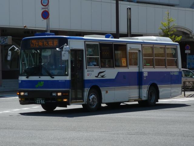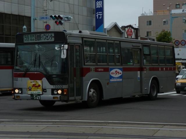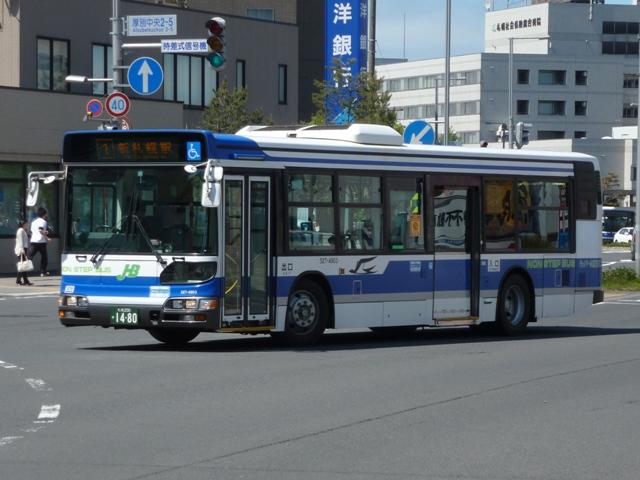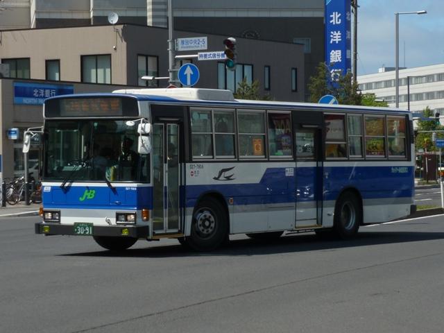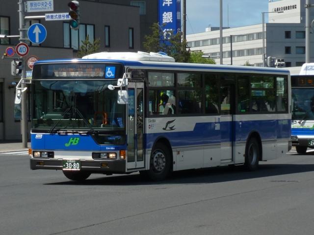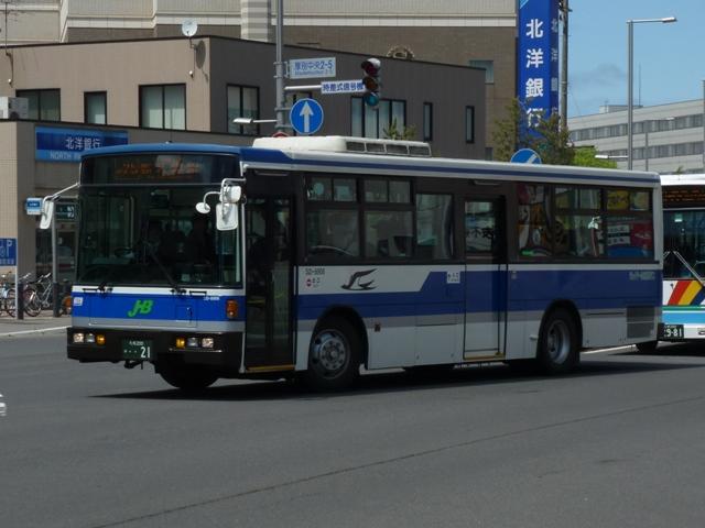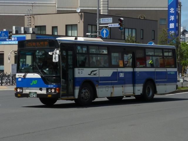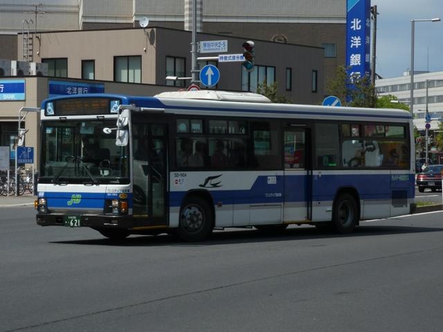 月末にバス雑誌の感想めいたものを書くのが恒例となっていますが、バスマガジンは 発売日の関係で月内に更新するのもなかなかシビア。暑さもようやくおさまり、なんと かなるかと思いましたが、今号もやはり月内更新は出来ませんでした。 ということで、今回はバスに関する書籍を買ったらブログに書くシリーズ、8月に刊行さ れた『BJハンドブックシリーズR78 ジェイ・アール北海道バス』についてです。 「ハンドブックR」シリーズでは初となる道内事業者を取り上げた本書の内容ですが、こ れまで同様、紀行編・歴史編・車両編の3部構成。終点の風景は「開拓の村」です。 社番:527-5323.U-HT2MMAA(95年車)。 ジェイ・アール北海道バスが趣味誌で取り上げられたのは2011年9月刊行のバスマガ ジン49号以来となります。バスマガジンの事業者特集では、移籍車の旧所有事業者を 「関東の私鉄系バス事業者」・「神奈川県内の公営交通事業者」といった具合にぼやかし ていましたが、BJハンドブックシリーズは事業者名を明らかにしているので非常に分かり やすくなっています。画像の車両はバスマガジンで「首都圏の大手私鉄系バス事業者」と 表現された京浜急行バスからの日野HTワンステップ移籍車。京浜急行移籍車は道内 でも大人気、同型車がジェイ・アール北海道バスのほか複数の事業者に移籍しています。 以降、ジェイ・アール北海道バスの小生手持ち画像を自己満足的に並べていきます。 今回並べたものは特記したものを除き、2012年5月に記録したものです。なお、型式・年 式は掲載の車両リストを参照しました。 社番:524-4965.U-MP618M(94年車)。 まずはJR北海道直営時代を含めた自社発注車から。三菱ふそう車は93年から導入を 開始し、画像の車両は増備車。側面逆T字窓仕様のMPで、融雪剤の影響でパネルに だいぶ腐食が見られます。 社番:527-5954.U-HU2MMAA(95年車)。 この頃の側面窓仕様は定まらず、95年度導入の日野車は黒の2段サッシ窓仕様。 社番:527-7908.KC-HU2MMCA(97年車)。 97年度導入車両は銀サッシの2段窓仕様とさらにチープな感じ。 社番:427-7906.KC-RU1JJCA(97年車)。 97年はダウンサイジングということで、9mサイズの大型車を試験的に導入。結局この 年導入した日野RU2台のみの在籍で、タイミングよく記録できました。 社番:521-8906.KC-LV280N(98年車)。 98年からワンステップ車の導入を開始。まだスロープ無しの仕様で、スロープを装備した 本格的なバリアフリー車の導入は00年からとなります。画像は富士ボディのいすゞLVワ ンステップ車。側面窓は逆T字仕様に落ち着きました。 社番:521-1904.KL-LV280N1(01年車)。 いすゞ車つながりで、エルガにモデルチェンジした01年度導入のLVスロープ付ワンステッ プ車。 社番:527-4903.KL-HU2PPEE(05年車)。 ノンステップ車は02年度に導入した三菱ふそうMPから。日野車は画像のフルフラットノ ンステップのBRCが04年度に登場。日野のノンステップ車は以後、OEMモデルのKV、 BRCハイブリッドと変化していきました。 社番:534-1964.LKG-MP35FP(11年車)。 だいぶ枚数も多くなってきたので途中年度の導入車両は省略し、11年度導入の三菱 ふそうMPワンステップ長尺車。掲載リスト時点での最新車になります。 社番:527-2805.U-HU2MLAA(92年車)。 続いて移籍車。東京都交通局から都市新バス仕様の日野HU移籍車。いよいよこのあたり の移籍車が古参格となったことに軽い驚き。 社番:528-4323.U-UA460LSN(94年車)。 京浜急行バスからUAワンステップ移籍車。 社番:424-5335.U-MK218J(95年車)。 神奈川中央交通が95年に大量導入した中型車の移籍車。長らく移籍車となりそうな中型 車が不足状態だったこともあり、全国各地の事業者で移籍事例が見られます。ジェイ・アー ル北海道バスも導入しましたが、当時札幌市と北海道バス中央バスが白石営業所の不採 算路線廃止をめぐって対立していたことも関係しているというのですから複雑な話です。 社番:534-8833.KC-MP717M(98年車)。 神奈川中央交通からは元スヌーピーバスだった貸切兼用仕様の車両も移籍しています。 社番:134-3351.KK-BE64DJ(03年車)。 「ぶらりサッポロ観光バス」専用車のローザボンネットも実は移籍車。元は夕張市石炭博 物館所有とのこと。 社番:527-6914.KC-HU2MPCA(96年車)。 ジェイ・アール北海道バスには自社発注車・移籍車のほか、札幌市交通局からの引継 車も在籍しています。画像の車両は日野HU長尺車。 社番:524-1977.U-MP618N(91年車)。 掲載の車両リストによれば、最古参車は92年車となっています。バスマガジン特集時点 で在籍していた札幌市交通局からのエアロスターK引継車は11年度の新車・移籍車導入 により代替となった模様。札幌市交通局のバス路線を引き継いだ3社とも、引継車両は徐 々に台数を減らしていっています。画像は2011年に記録したものの再掲。 さて、 次号の刊行予定事業者は「函館バス」と道内事業者が続きます。 社番:T3332. 函館バスの画像はジェイ・アール北海道バスとあわせて5月に確保済み。バッチ来いです。 とはいえ、函館訪問日の天気はかなり