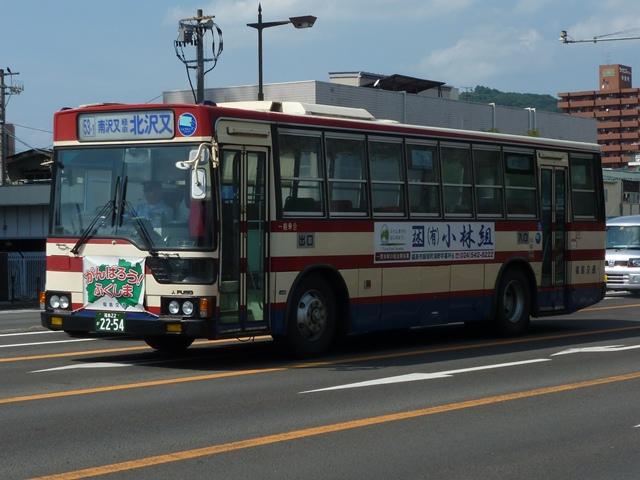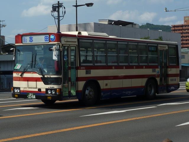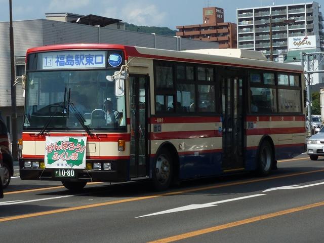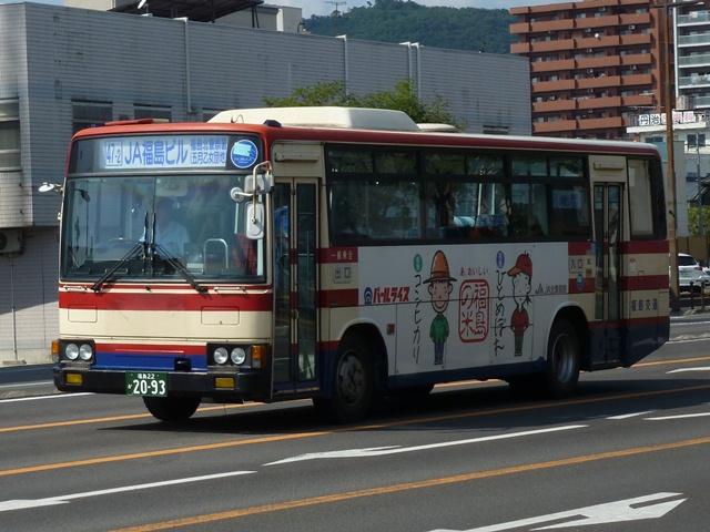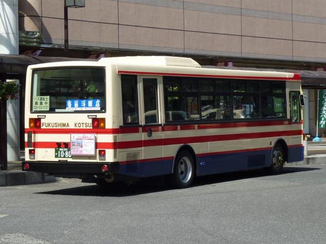 福島200か1080.KC-JP252NTN改(96年車)。 みちのりHD傘下となってからは三菱ふそう車にこだわらなくなったことから、これまで以 上に移籍車導入が行われ古参車の代替を進めています。まずはUDのJP富士ボディで、 関東バスからの移籍車。リヤ側は2010年に記録したものを参照願います。 福島200か1220. 一般乗合車の新車はいすゞ・日野中心。画像はいすゞLRノンステップ車。 福島200か1372. 創業100周年を記念し、2004年に一般公募によって一般乗合車と高速・貸切車の新塗 装が制定されたはずでしたが、みちのりHD傘下入りでどうやら無かったことになった模様。 ということで、エアロエース高速車は従来塗装での導入が続いています。 福島200か1428. 京王電鉄バスグループから、調布に在籍しただったいすゞLRワンステップ車が福島入り していたとは知りませんでした。それにしても福島交通のバスといえば、三菱ふそうオンリ ーだったのがここ数年で嘘のような状況となりました。 PR